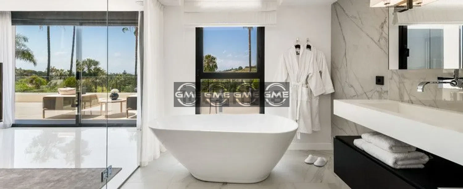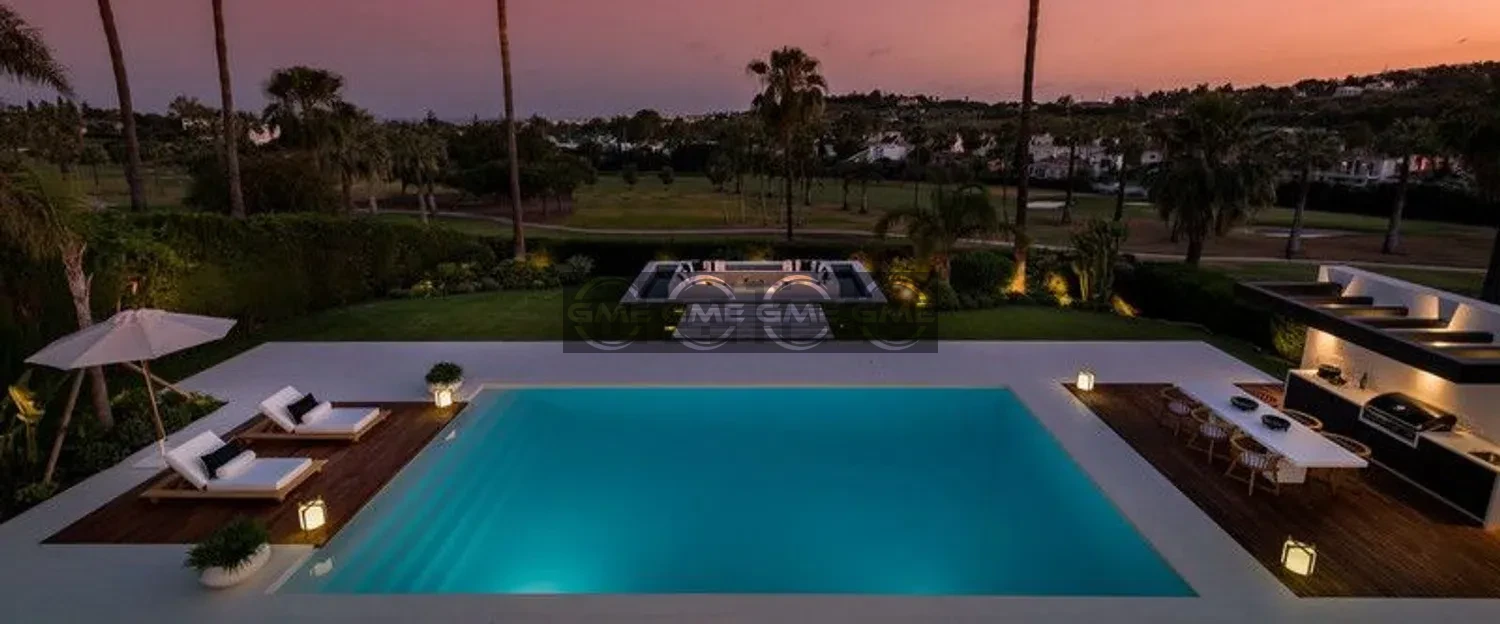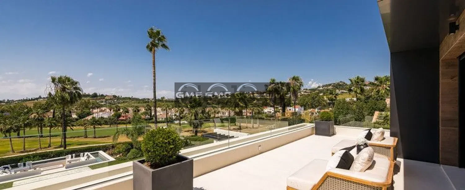 Modern frontline golf villa set on a 1,500 m² plot in Marbella’s Golf Valley, offering privacy and open views across the golf course.