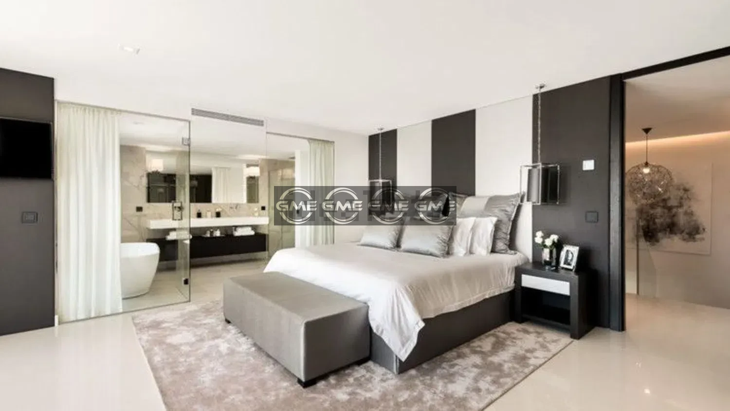 Upstairs includes the master suite with en-suite bathroom, dressing area, and access to a private terrace. There is an additional en-suite bedroom and two further bedrooms sharing a bathroom.