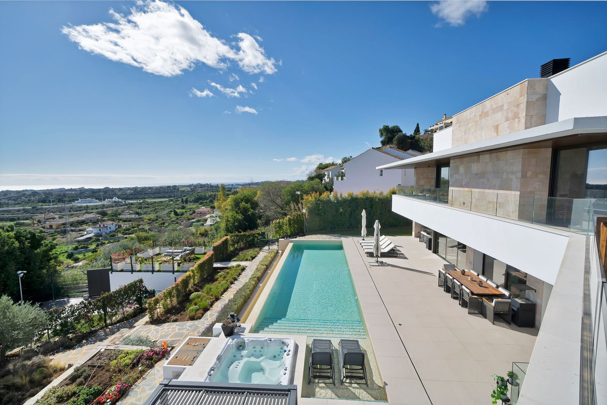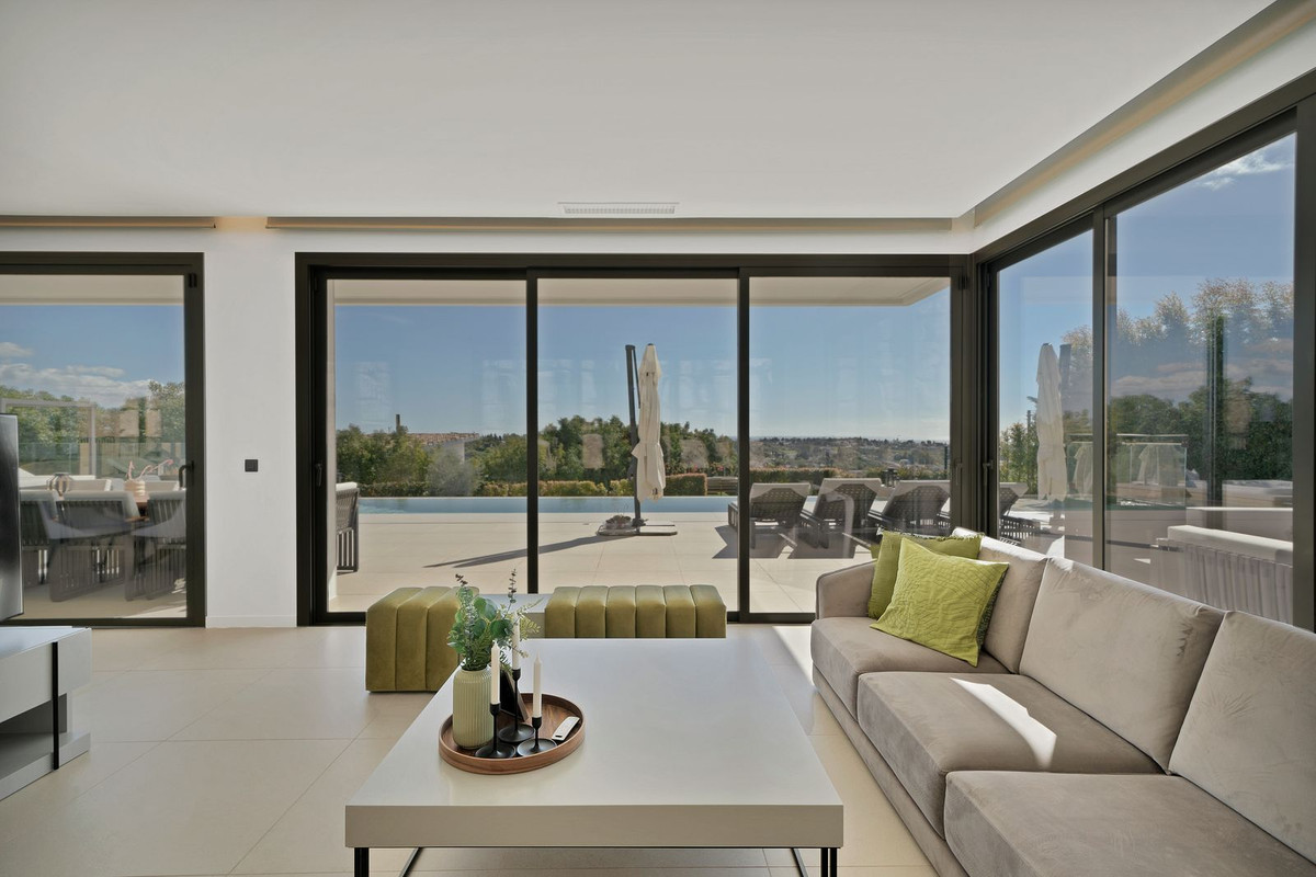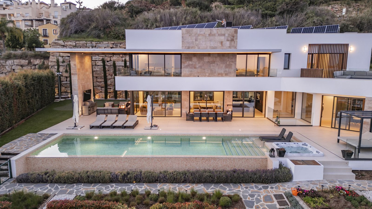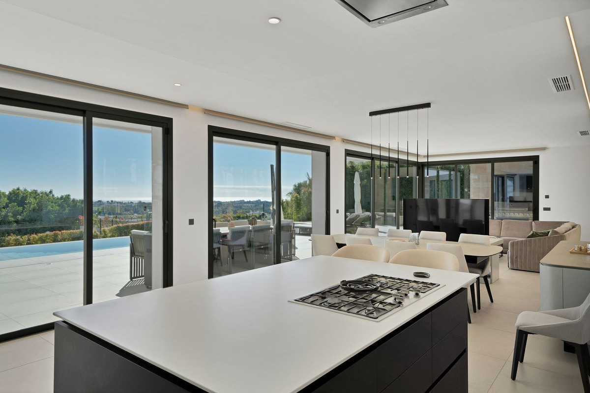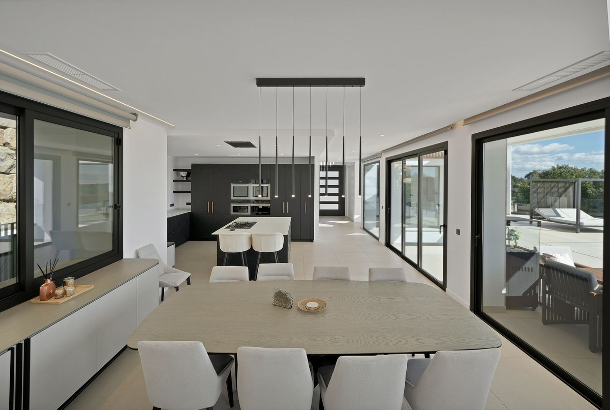 Dream Villa for Golfers with Panoramic Views in Puerto del Almendro, Benahavís Located in the exclusive and private gated community of La Resina, in Puerto del Almendro, this stunning luxury villa has been designed and decorated with an unparalleled level of detail and sophistication. With 930 m² of built space on a 1,036 m² plot, this property represents the perfect fusion of elegance, comfort, and cutting-edge technology.