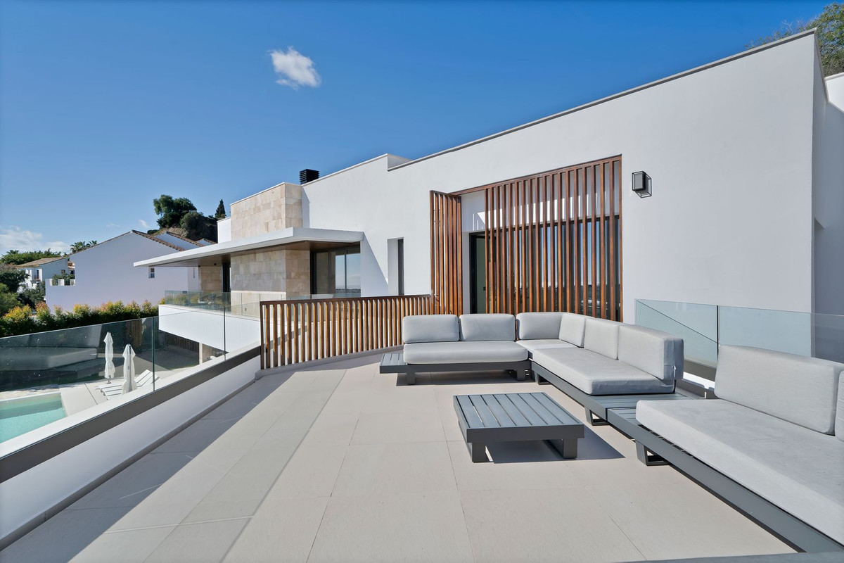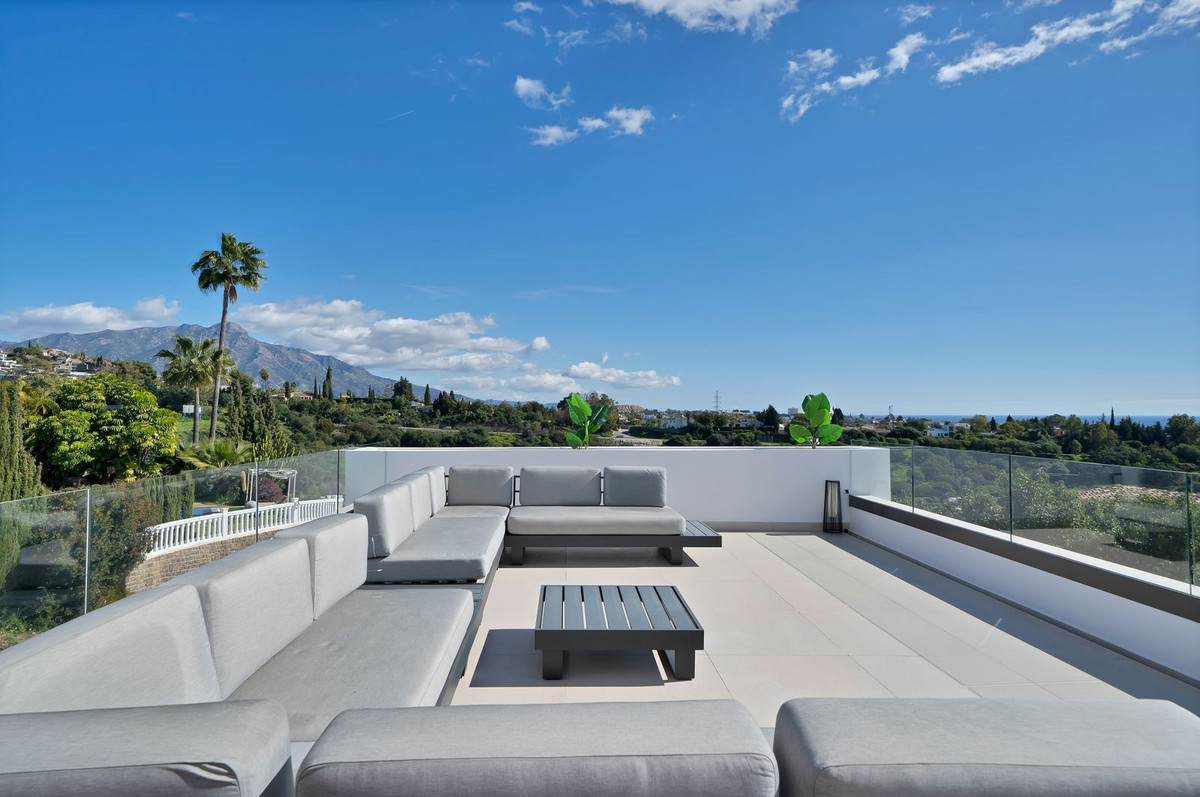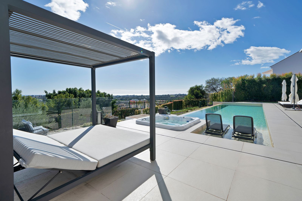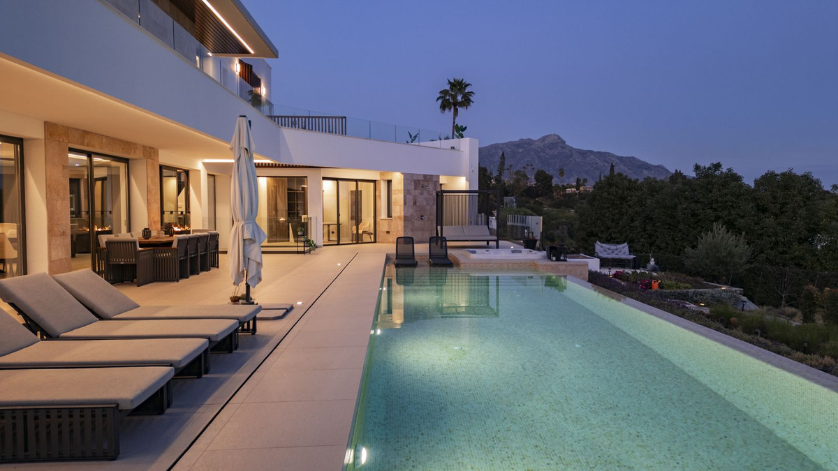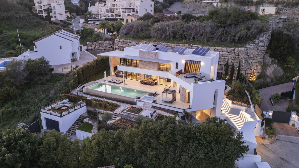 Dream Villa for Golfers with Panoramic Views in Puerto del Almendro, Benahavís Located in the exclusive and private gated community of La Resina, in Puerto del Almendro, this stunning luxury villa has been designed and decorated with an unparalleled level of detail and sophistication. With 930 m² of built space on a 1,036 m² plot, this property represents the perfect fusion of elegance, comfort, and cutting-edge technology.