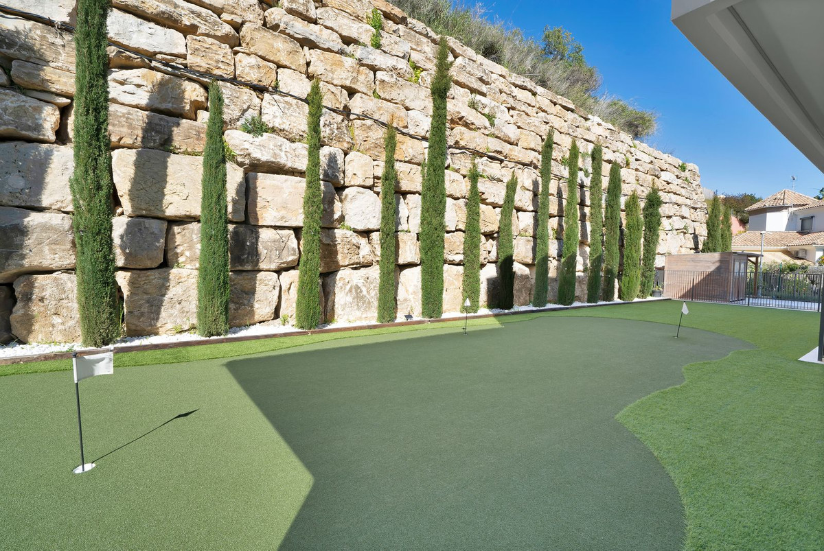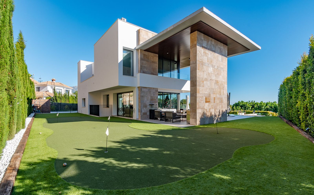 A Golfer’s Paradise Designed for golf enthusiasts, the villa features putting greens in the garden and a professional golf simulator, offering a premium experience without leaving home.