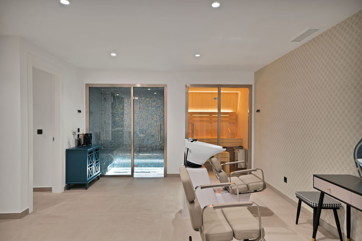 Wellness and Relaxation in Every Space Luxury is evident in every detail, from the private spa, which includes a Turkish sauna and Swedish sauna, to the fully equipped gym with state-of-the-art fitness technology.