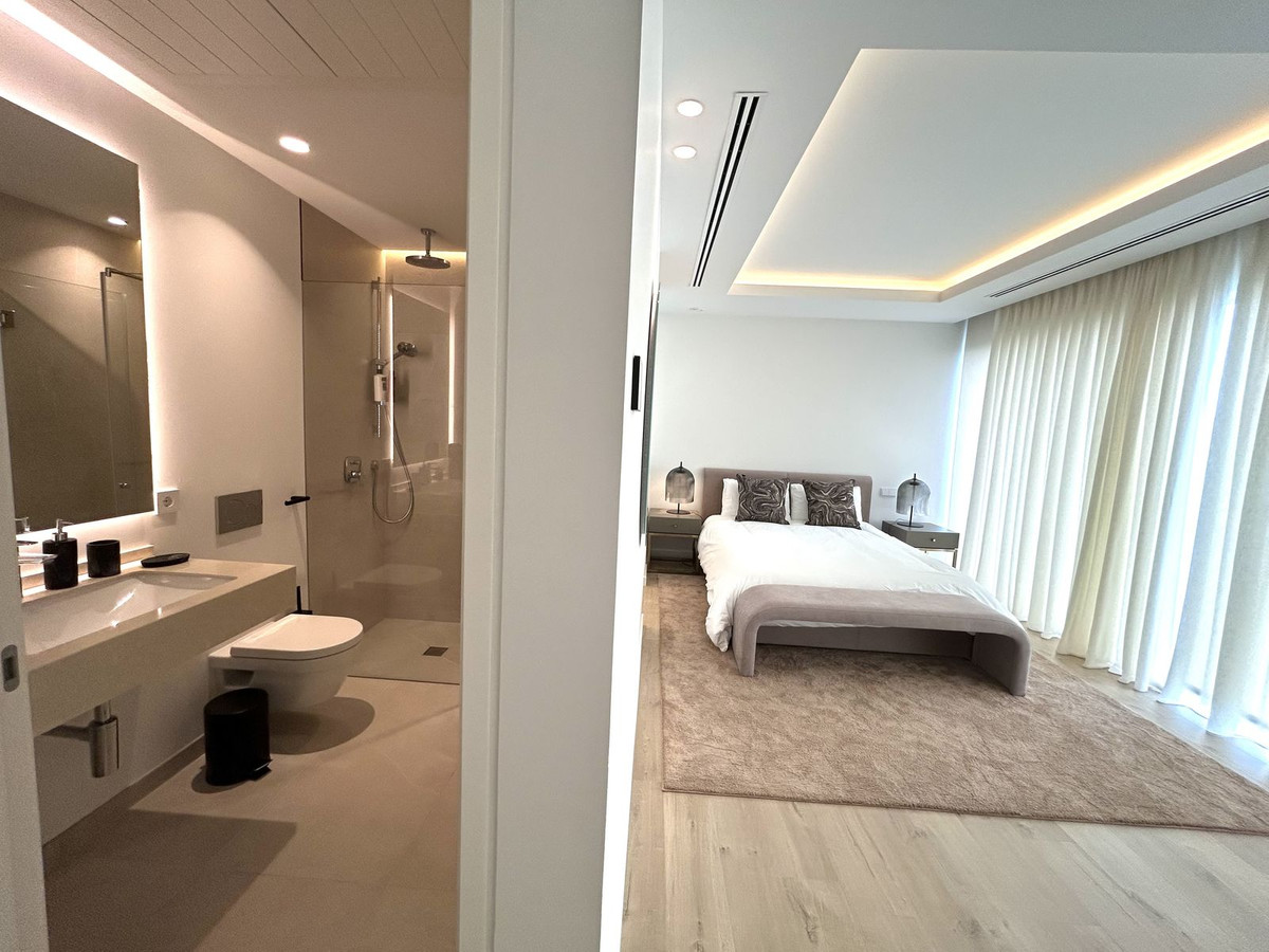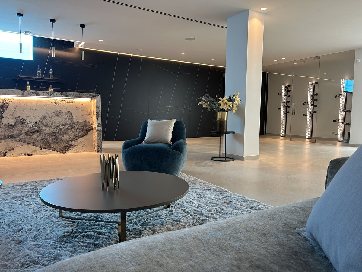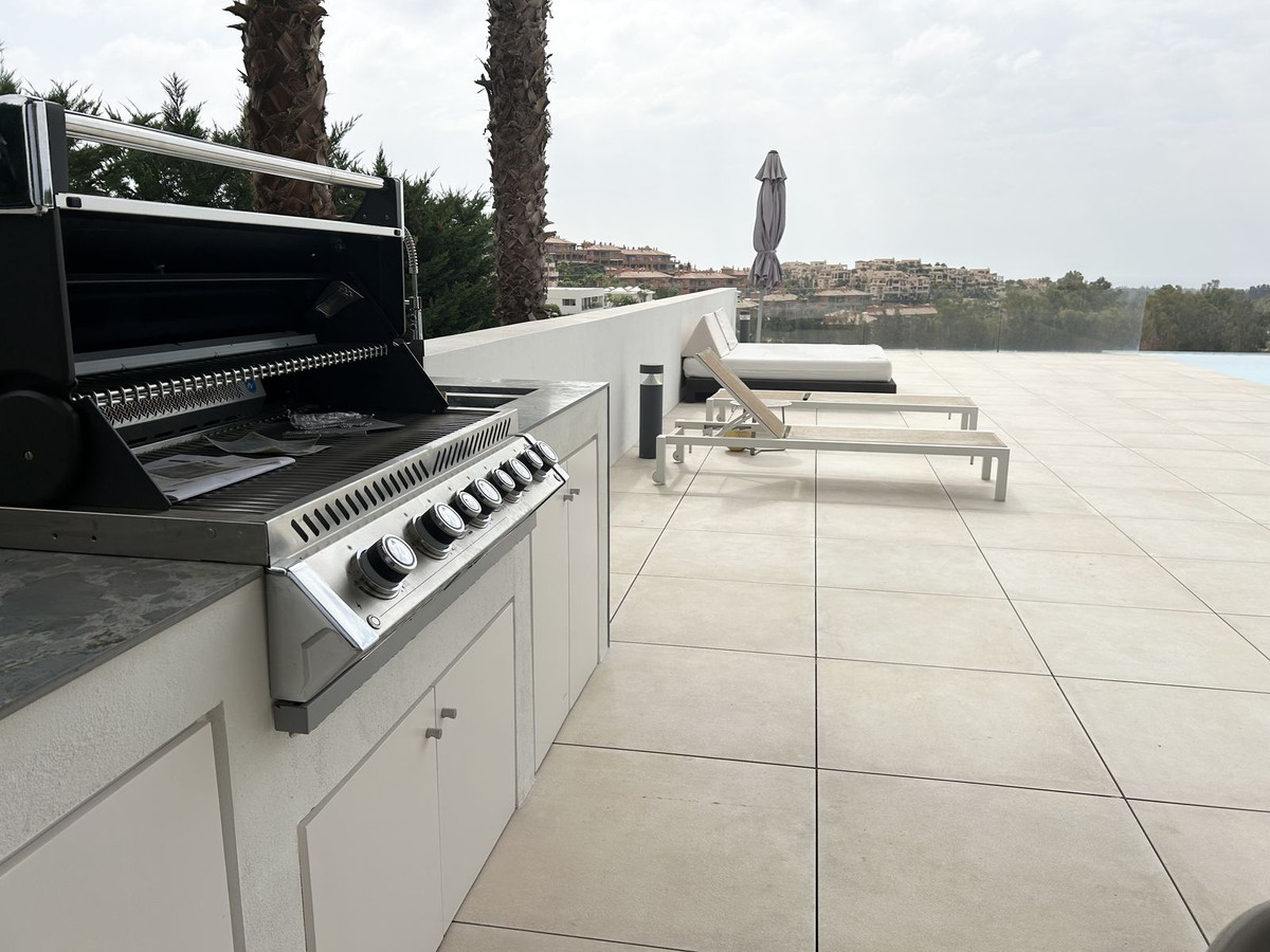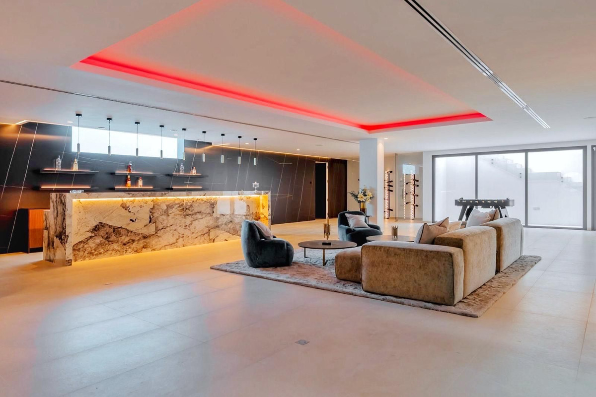 For leisure and relaxation, the property offers a professional gym, a custom-made cinema, and a full bar equipped with all the essentials, including an ice maker, dishwasher, oven, and sink. The outdoor spaces are equally impressive, with a full outdoor kitchen and island, an infinity pool that seems to merge with the sky and sea, and a 668 m² terrace where you can watch the famous Mediterranean sunset.