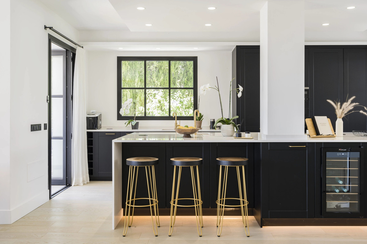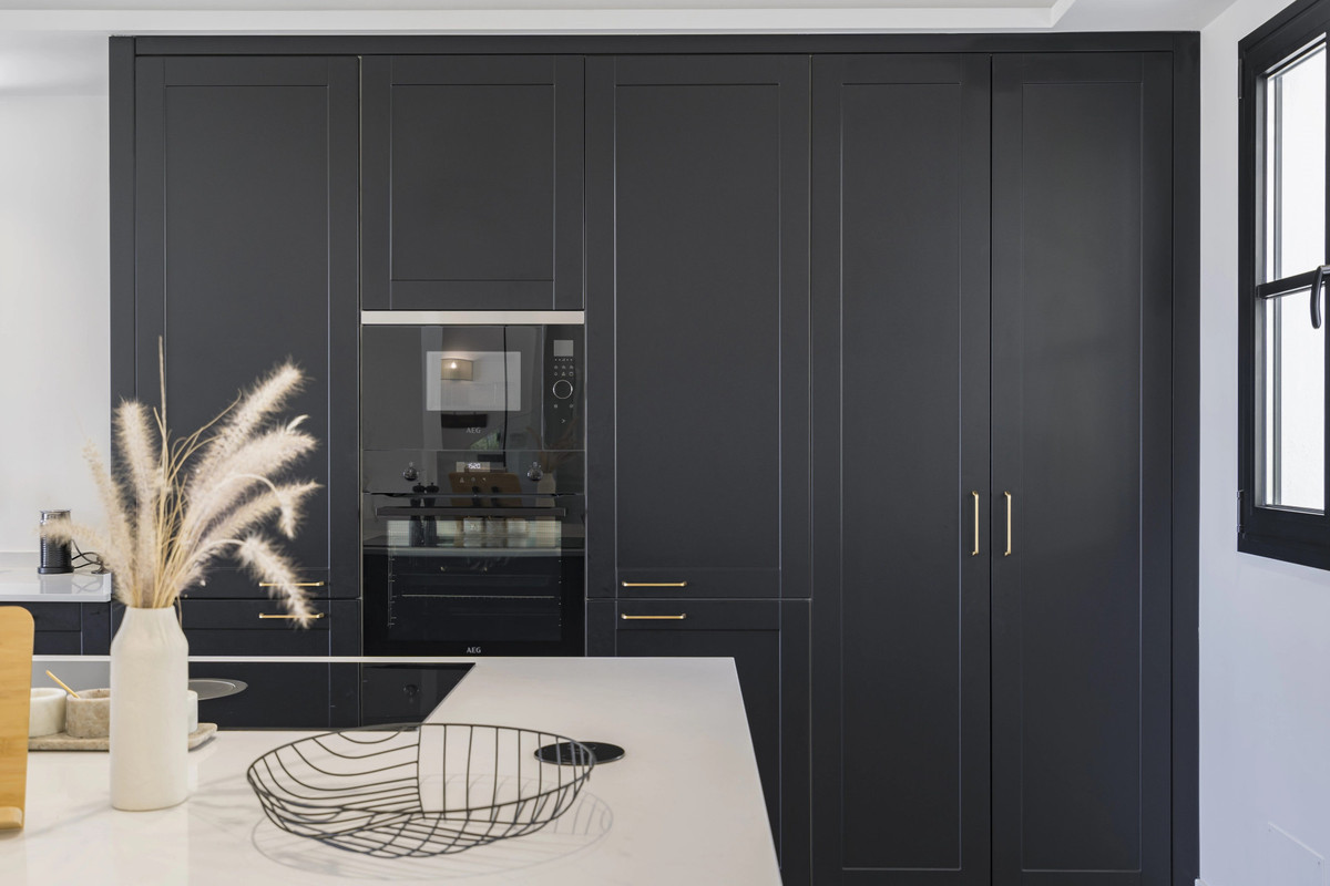 Step into the villa and experience a bright, open-plan space that radiates modern sophistication. Inspired by Scandinavian minimalism, the design flawlessly combines neutral tones, elegant glass accents, and thoughtfully curated lighting. On the main entrance floor, contemporary living takes center stage. A spacious living and dining area seamlessly transitions into a sleek black kitchen, complete with premium appliances, custom cabinetry, and exquisite finishes. Additionally, an ensuite guest bedroom awaits, featuring its own private terrace with stunning views of the pool and surrounding mountains.