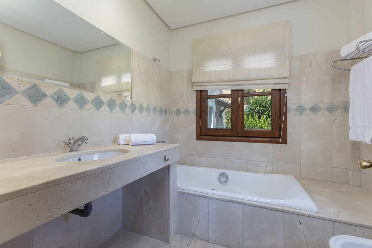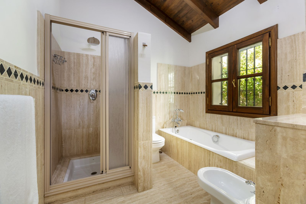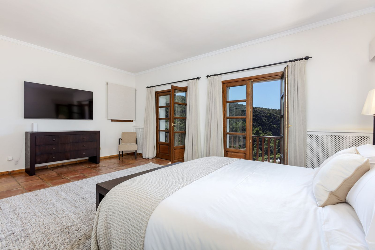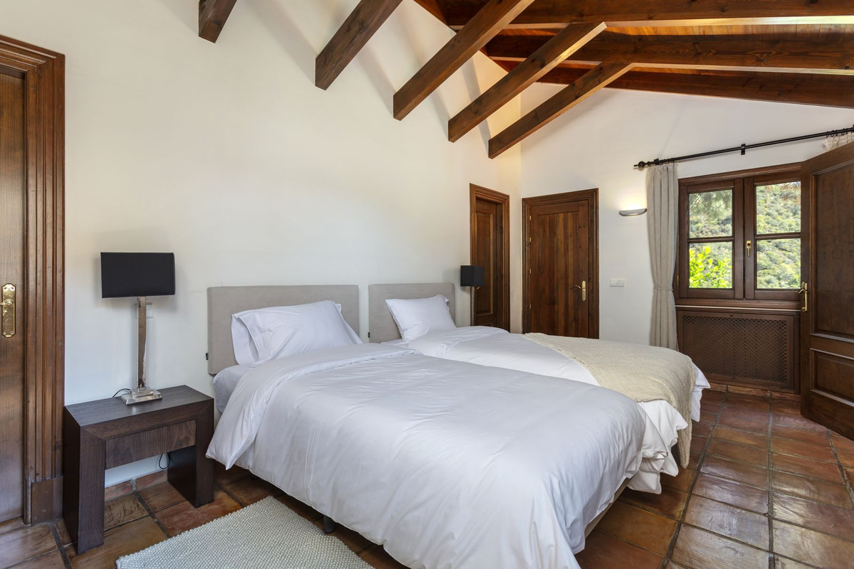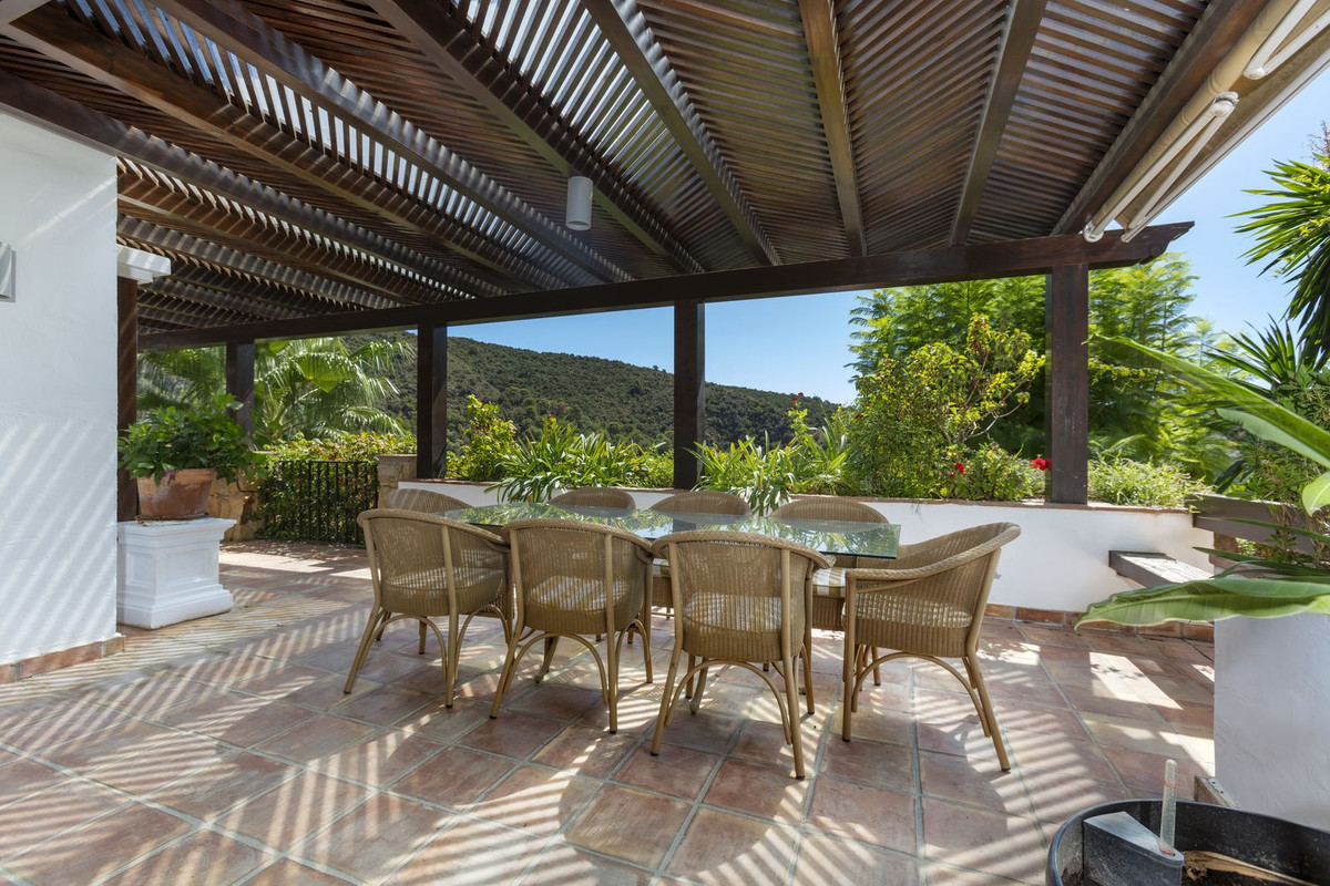 Electric gates lead you into the driveway which has parking for several cars and also a double garage. There is a utility room plus large kitchen that opens up into the breakfast room. huge dining room which leads into the impressive sitting room with high beamed ceilings and cosy fireplace - perfect for winter evenings. Opening up from the sitting room is a huge terrace and garden area with large pool which is heated - Ideal for all lovers of swimming on a winters day! The garden offers total privacy and total panoramic views accross the valley and village and to the protected forest areas and super exclusive La Zagaleta. Upstairs in the main house are 3 huge bedrooms plus 3 bathrooms and large walk in dressing rooms, and on the lower level is a separate guest apartment which is perfect for staff or teenager to stay in.