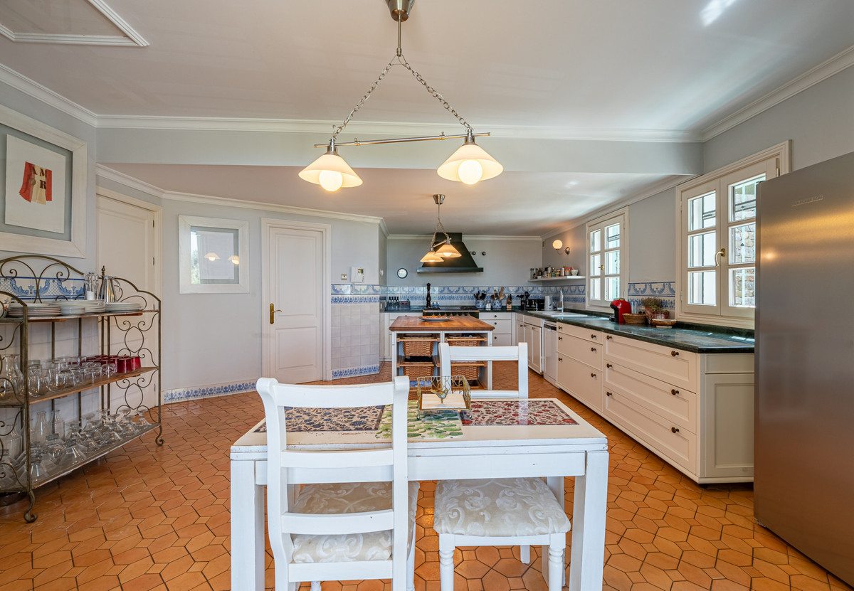 The kitchen is classic style with island and all modern appliances for a gourmet kitchen with its corresponding pantry. Guest toilet. All these rooms have direct access to the large colonial style terrace with panoramic views to the coast and the golf course.