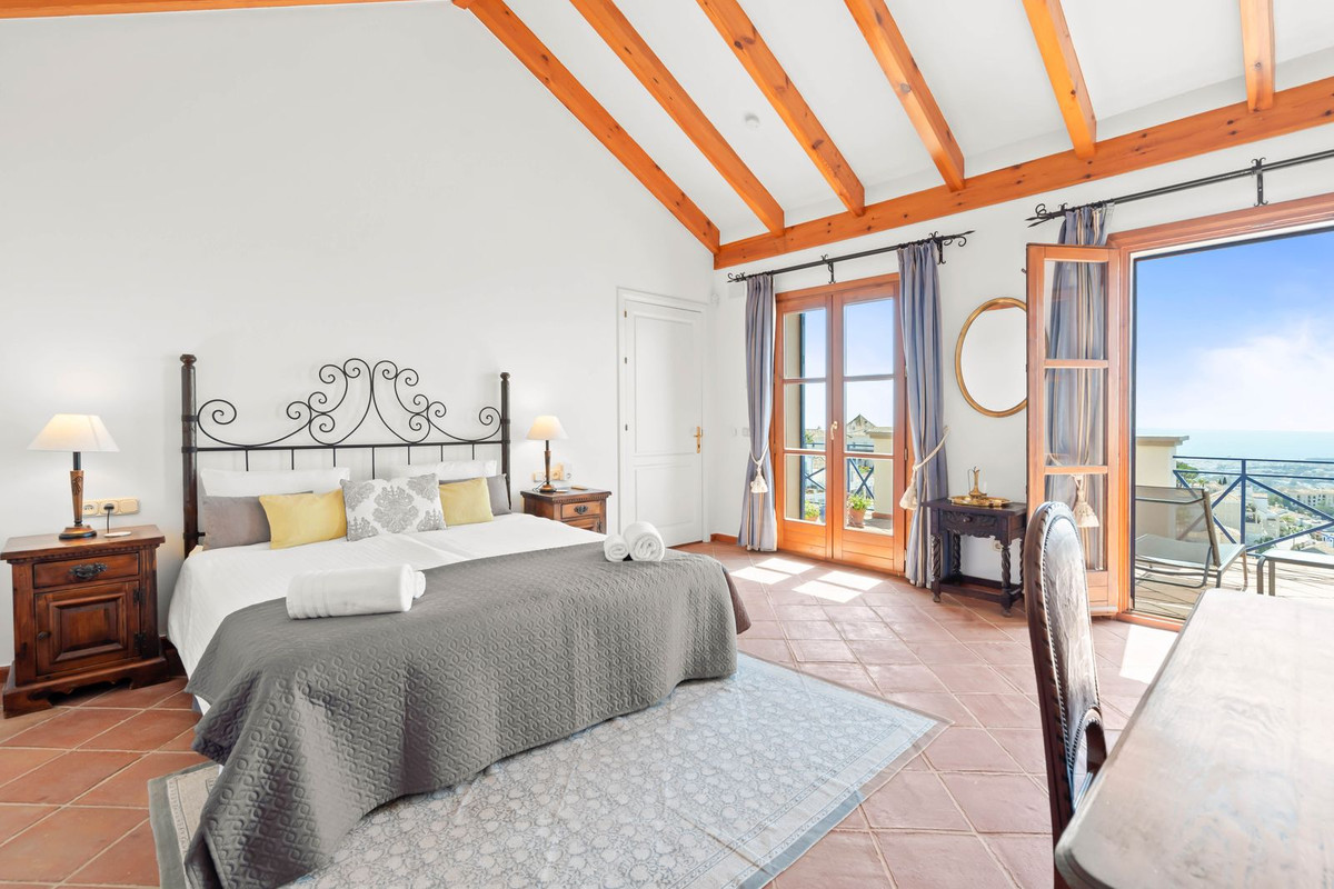 Exquisite Villa for Sale in El Madroñal, Benahavís - Ideal for Private Residence or Boutique Hotel This magnificent villa is situated on a south facing plot within a gated community of El Madroñal and its access through the first gate of community. La Heredia urbanization with all its restaurants and shops is within walking distance from the villa. El Madroñal’s appeal is found in its location, offering countryside living, tranquillity and peace, yet in close proximity to the vibrant lifestyle of Marbella’s coast. The villa positioned on an elevated plot, it offers breathtaking views of both the Mediterranean Sea and Panoramic views, a stunning backdrop to everyday life. Set on an expansive 1.665m² plot, the property boasts 1.050m² of 7 bedrooms, 8 bathrooms, a garage and a swimming pool. Thoughtfully designed living space across three levels, ground floor, upper floor and semi-basement, presenting an unparalleled opportunity for both a lavish private residence or a boutique hotel. As you enter the property, you are greeted by an impressive a double-height ceiling. On the ground floor you’ll find a beautiful hall which flows into the spacious living room on the right, also with its own fireplace and dining area. Going back to the hall and straight ahead you’ll enter to the fully equipped kitchen with a dining area for casual meals and pantry. Additionally, with two bedroom and two bathroom. From this level you can enter to the expansive terrace that provides ample space for relaxation and entertainment, with views extending across the lush gardens and out towards the sea. Going up the staircase on the upper floor you’ll find the sleeping area. Two separate bedrooms with their own en-suite bathrooms and remarkable views to the sea. On the semi-basement level there are three separate bedrooms with their own en-suite bathrooms with the views to the sea and garden. Outside, the expansive grounds beckon with enchanting outdoor living spaces. A covered terrace offers alfresco dining opportunities, while a sparkling swimming pool invites you to bask in the Mediterranean sunshine. A peaceful oasis where you can unwind and rejuvenate. With its unrivalled blend of luxurious amenities and natural beauty, this Spanish-style estate in El Madroñal offers an extraordinary opportunity to experience the epitome of coastal living.