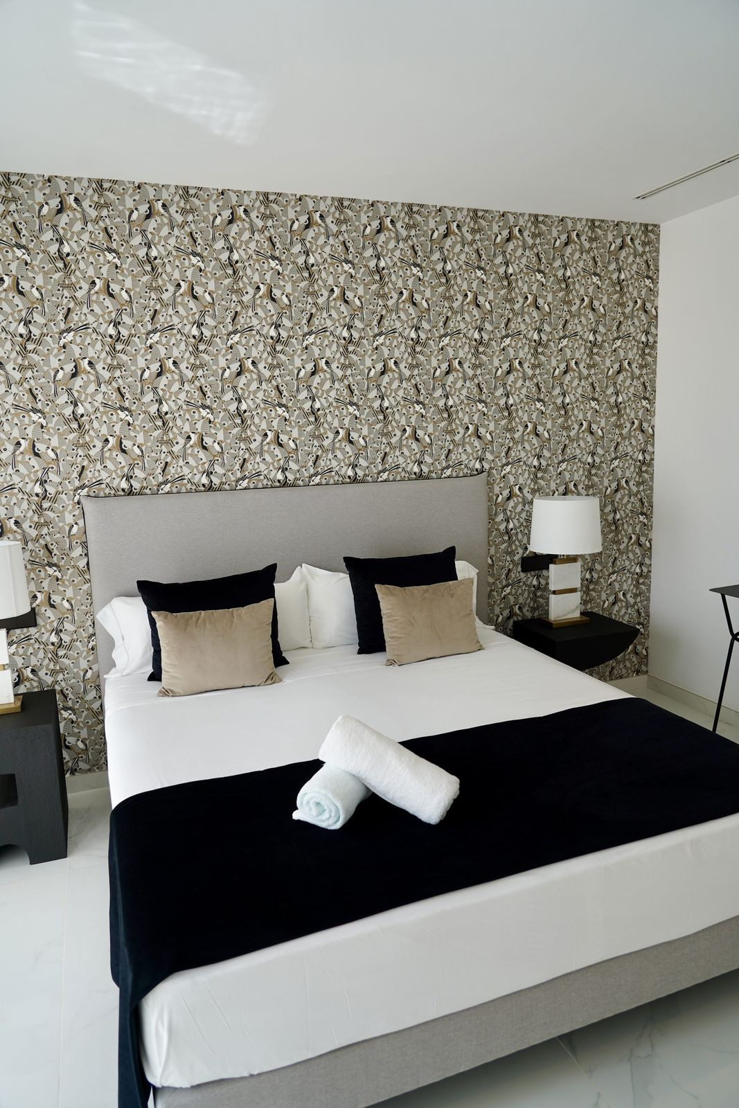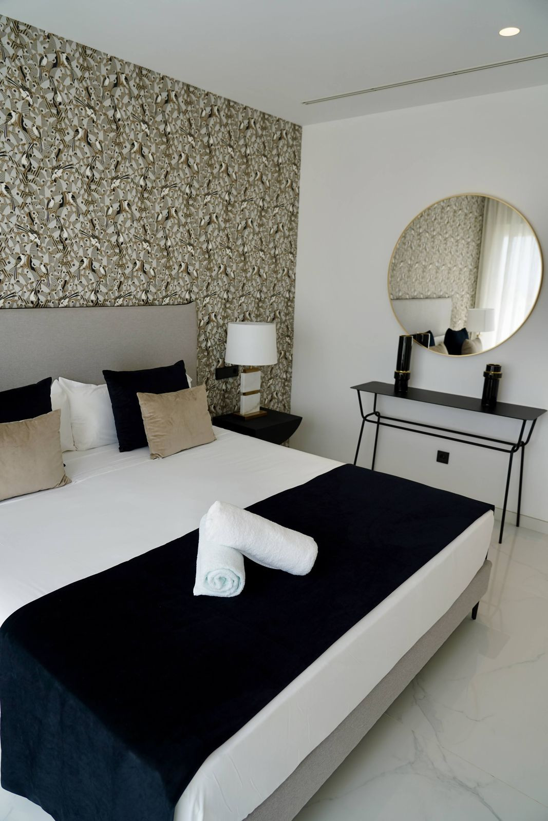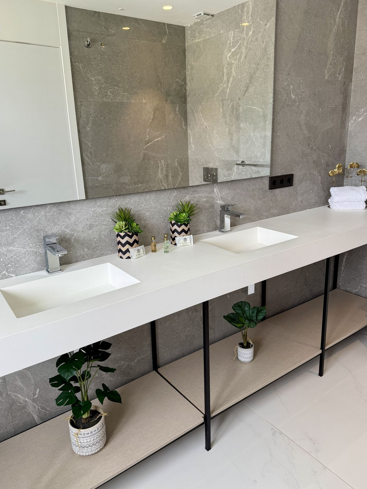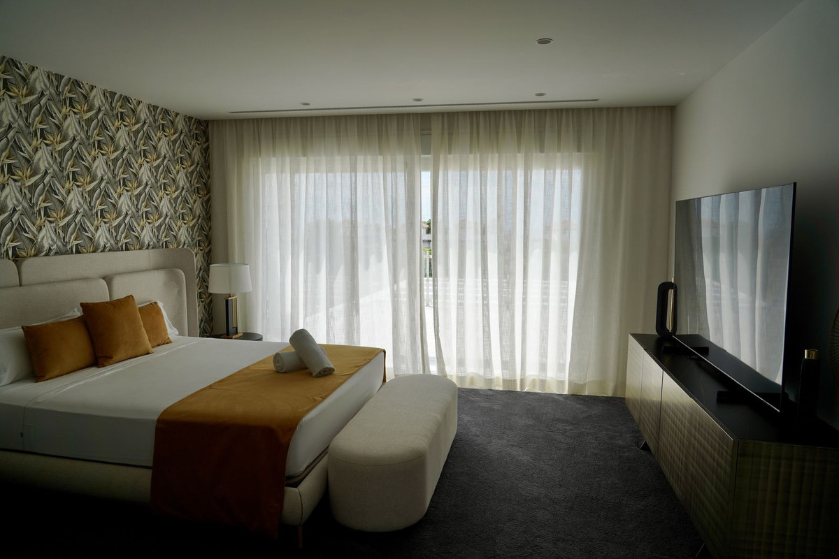 Luxury Villa in Cancelada – Costa del Sol Exclusive detached villa, newly built, located in one of the most sought-after areas of the Costa del Sol. With a contemporary design and top-quality finishes, this property offers the perfect balance of elegance, comfort, and technology. The villa boasts 5 spacious bedrooms and 6 en-suite bathrooms, distributed over 400 m² of built area, with a spectacular 150 m² terrace and a 900 m² private plot with landscaped gardens. Its south-facing orientation ensures exceptional brightness throughout the day, with panoramic views of the sea, mountains, and surrounding nature. Outdoors, you will find a heated private pool, barbecue area, and solarium – perfect for enjoying the Mediterranean lifestyle. Indoors, the villa features bright, open spaces equipped with home automation, air conditioning, marble floors, jacuzzi, gym, games room, wine cellar, staff accommodation, and a fully fitted kitchen. The property is sold fully furnished with carefully selected high-end pieces. Additional highlights include an elevator, covered and uncovered terraces, storage room, utility room, and basement. Security is guaranteed with an alarm system, safe, and double glazing. The parking facilities are excellent, offering underground garage, covered parking, and space for several vehicles. The house is also equipped with photovoltaic solar panels for energy efficiency and sustainability. Prime location: just minutes from golf courses, shops, the beach, schools, and town center. In short, this is a luxury property, exclusive and move-in ready, combining comfort, style, and a privileged setting.