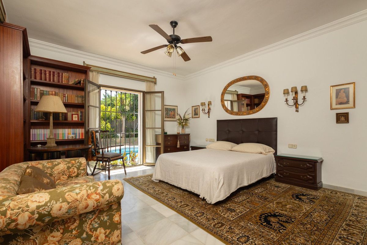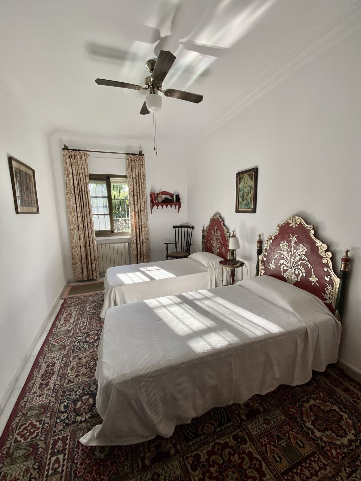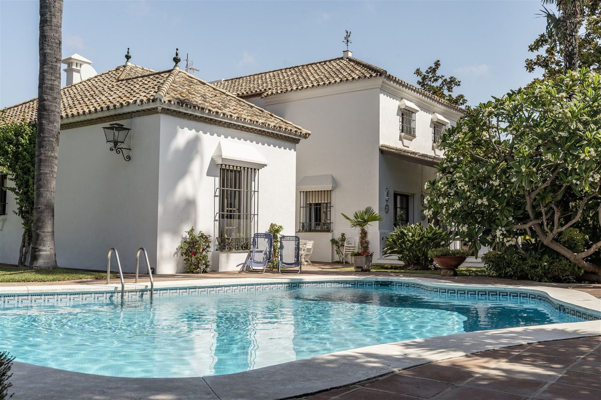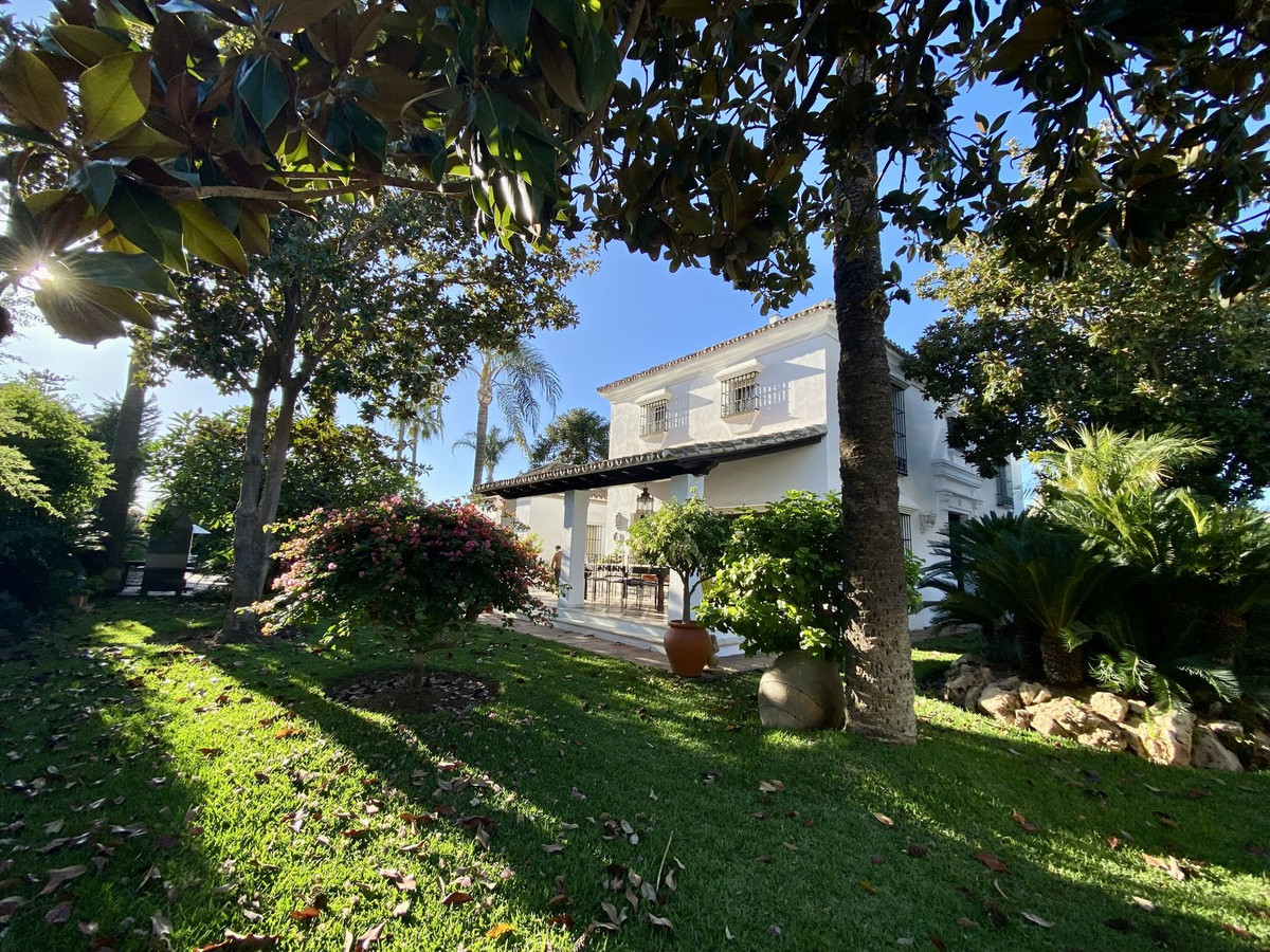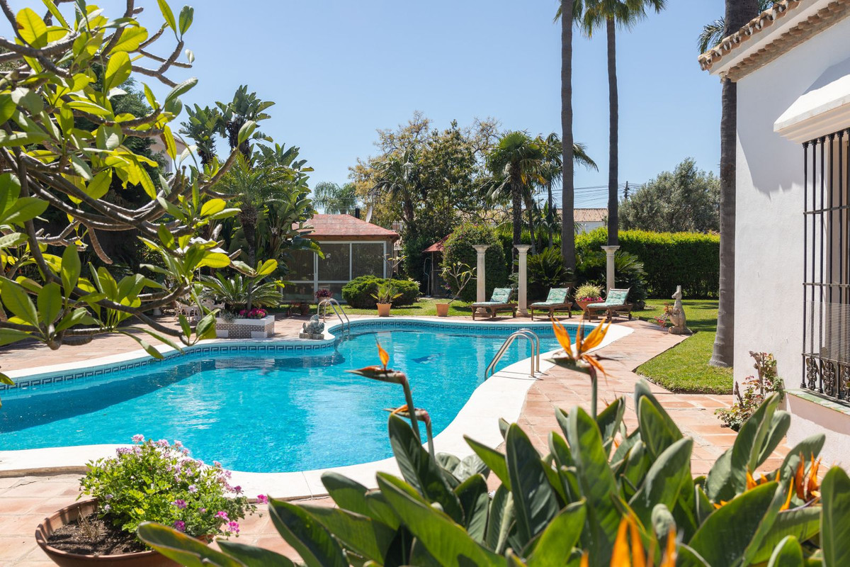 Villa on a large plot located between San Pedro de Alcantara and Puerto Banus. Plot of 2000m2 with a large mature garden and a swimming pool with BBQ area. The plot is located between two streets and only 500 metres from the beach. Walking distance to San Pedro de Alcantara and Puerto Banus. An unbeatable location, in an area of great potential. On the plot there is currently built a very well maintained Andalusian style house. Entrance hall with typical Andalusian tiles, large living room with double height ceiling with marble fireplace, a second family room, 5 bedrooms, 4 bathrooms and 1 guest toilet. Low density area with easy access to the beach, motorway and Puerto Banus. Close to shops, restaurants and international schools. This same plot has the possibility to be divided into two independent plots to build two houses.