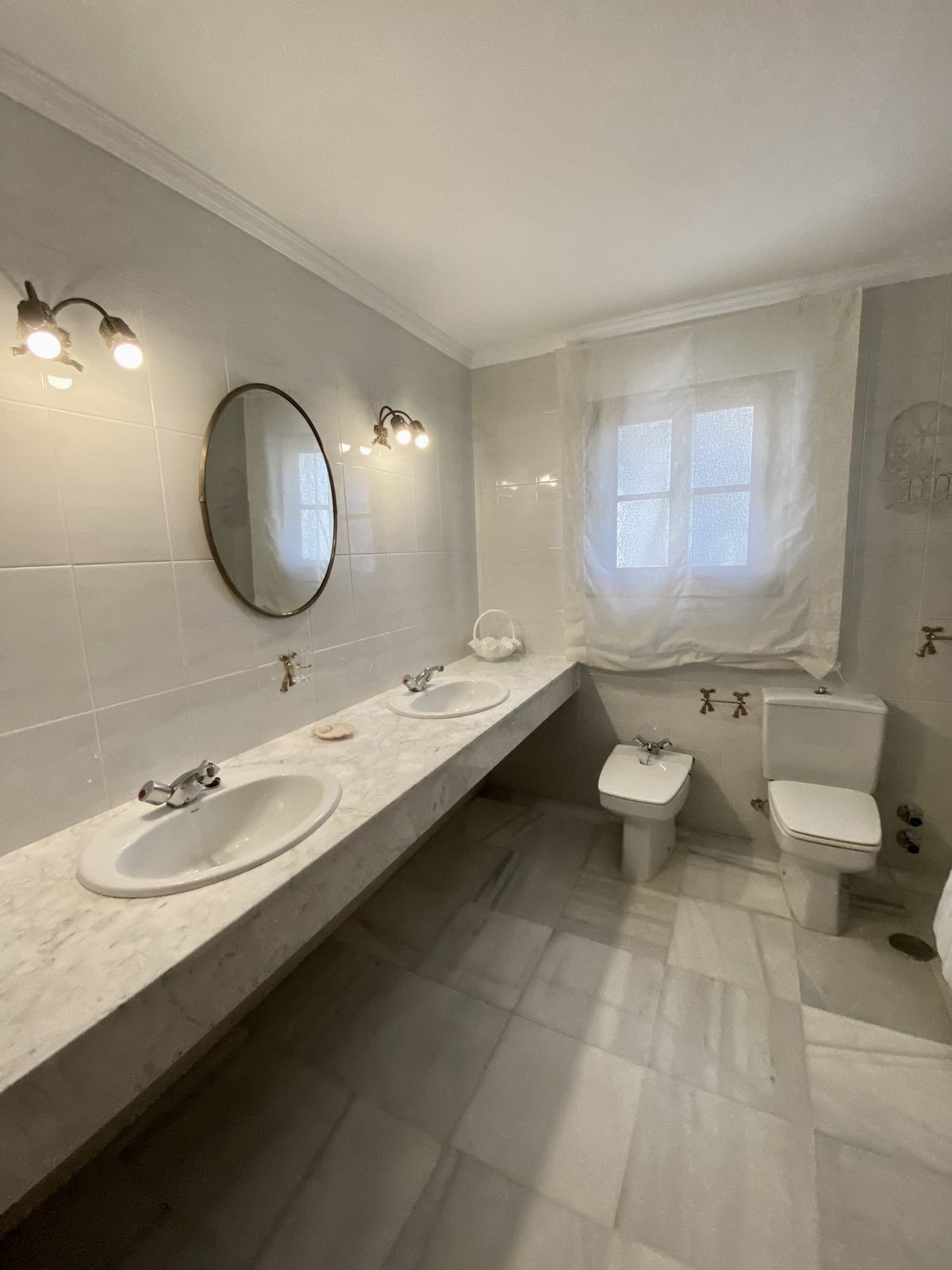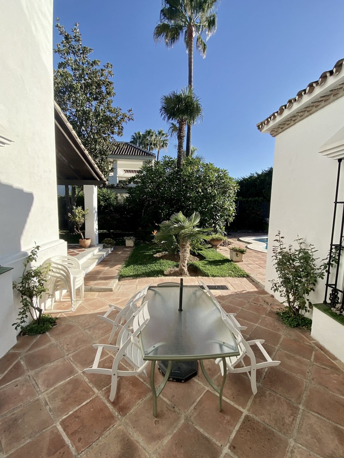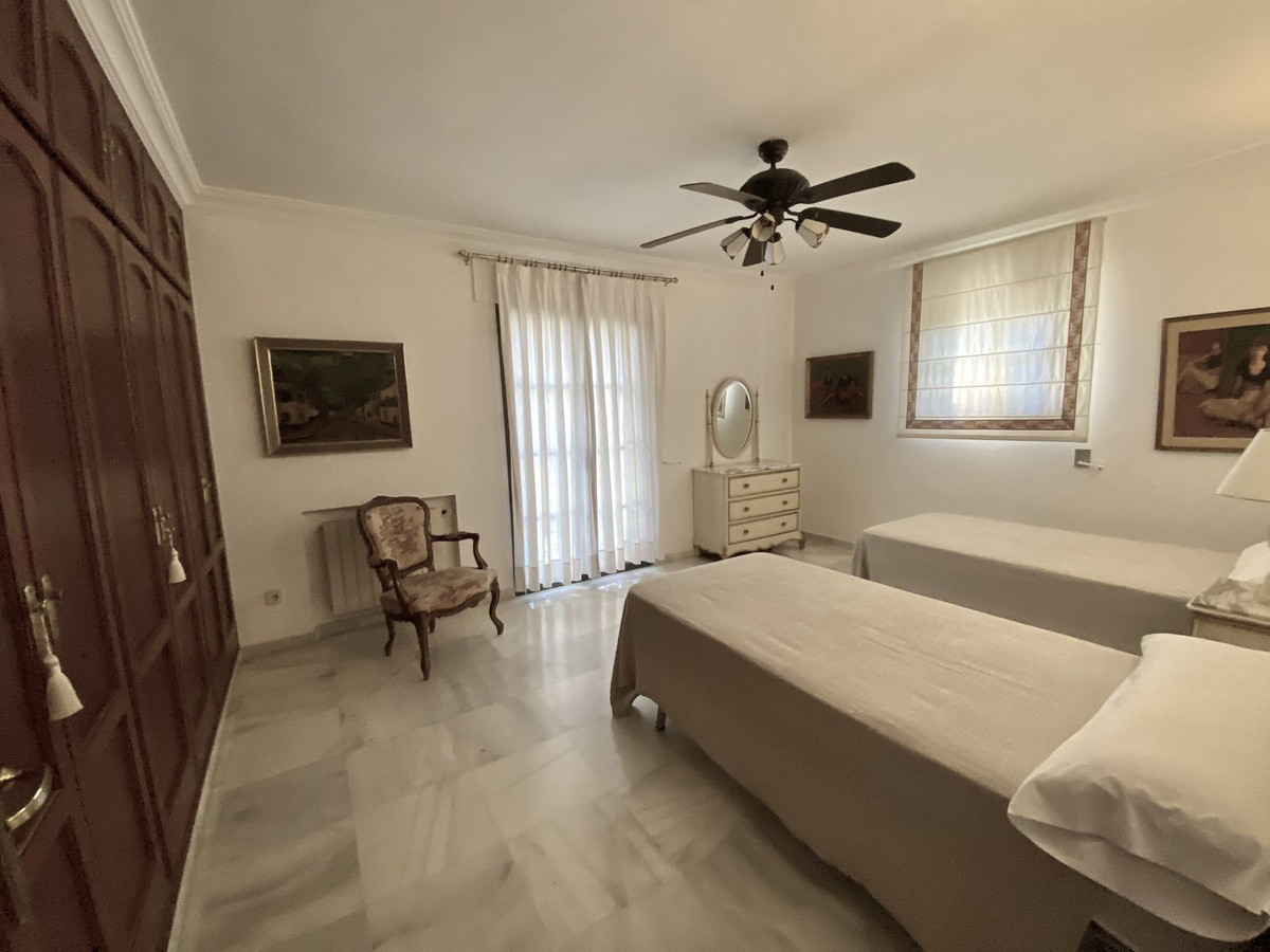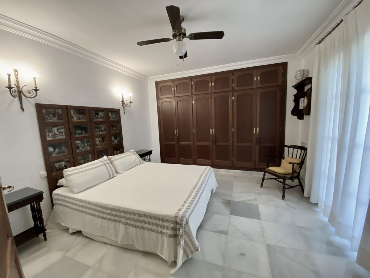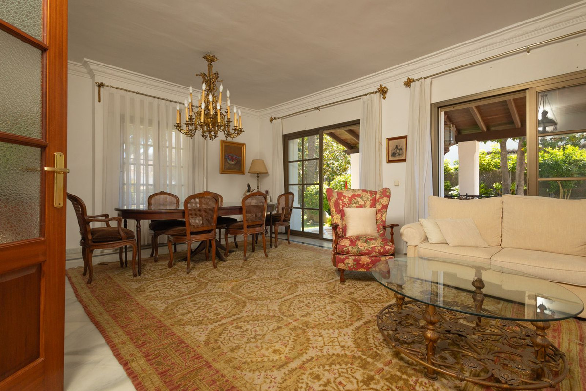 Villa on a large plot located between San Pedro de Alcantara and Puerto Banus. Plot of 2000m2 with a large mature garden and a swimming pool with BBQ area. The plot is located between two streets and only 500 metres from the beach. Walking distance to San Pedro de Alcantara and Puerto Banus. An unbeatable location, in an area of great potential. On the plot there is currently built a very well maintained Andalusian style house. Entrance hall with typical Andalusian tiles, large living room with double height ceiling with marble fireplace, a second family room, 5 bedrooms, 4 bathrooms and 1 guest toilet. Low density area with easy access to the beach, motorway and Puerto Banus. Close to shops, restaurants and international schools. This same plot has the possibility to be divided into two independent plots to build two houses.
