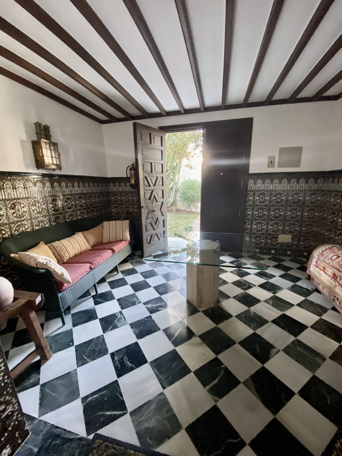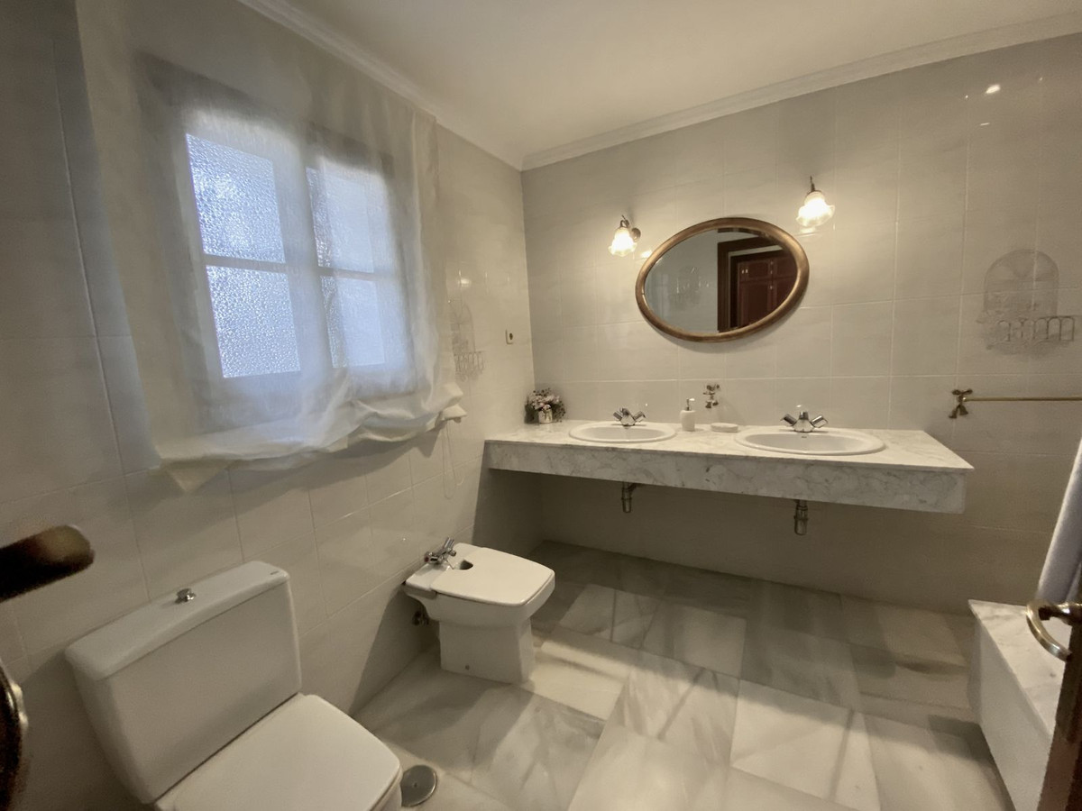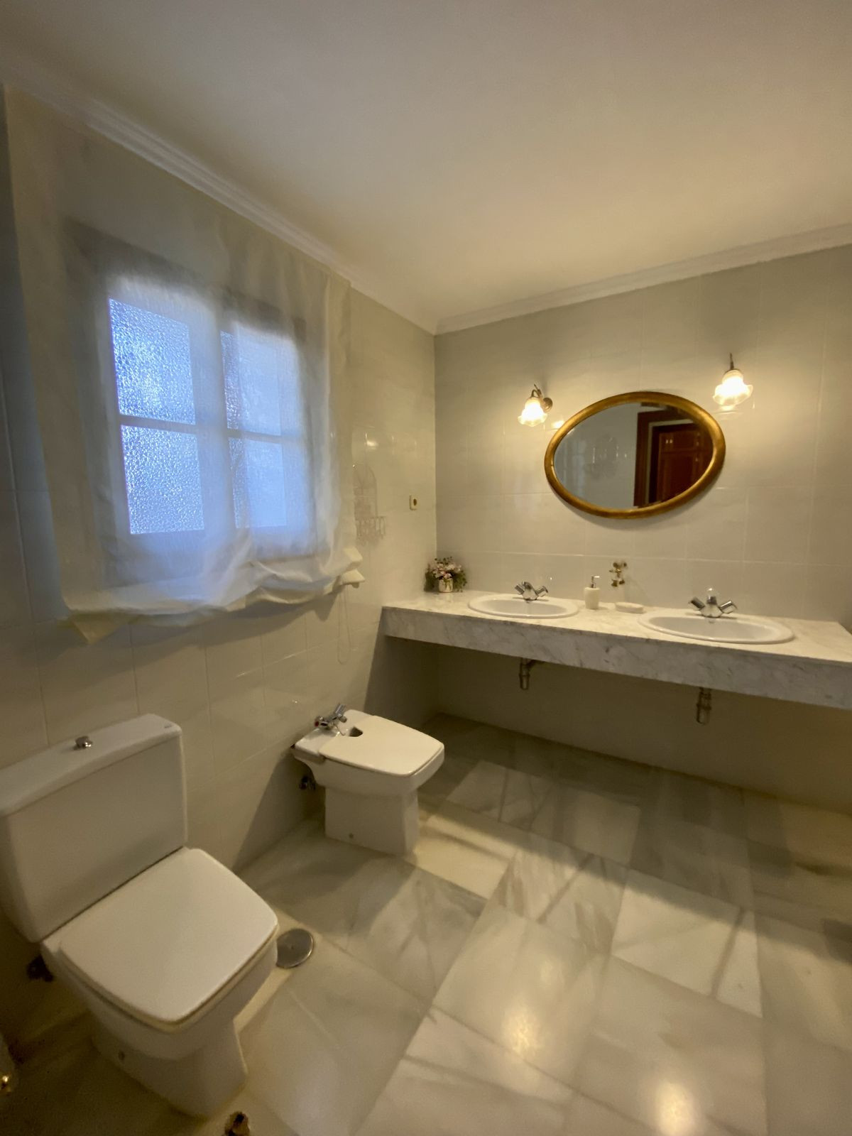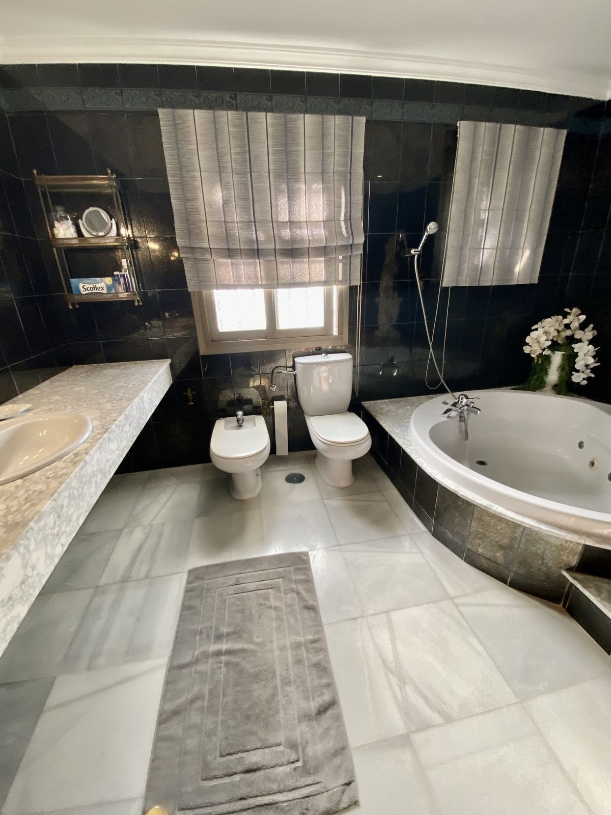 Villa on a large plot located between San Pedro de Alcantara and Puerto Banus. Plot of 2000m2 with a large mature garden and a swimming pool with BBQ area. The plot is located between two streets and only 500 metres from the beach. Walking distance to San Pedro de Alcantara and Puerto Banus. An unbeatable location, in an area of great potential. On the plot there is currently built a very well maintained Andalusian style house. Entrance hall with typical Andalusian tiles, large living room with double height ceiling with marble fireplace, a second family room, 5 bedrooms, 4 bathrooms and 1 guest toilet. Low density area with easy access to the beach, motorway and Puerto Banus. Close to shops, restaurants and international schools. This same plot has the possibility to be divided into two independent plots to build two houses.