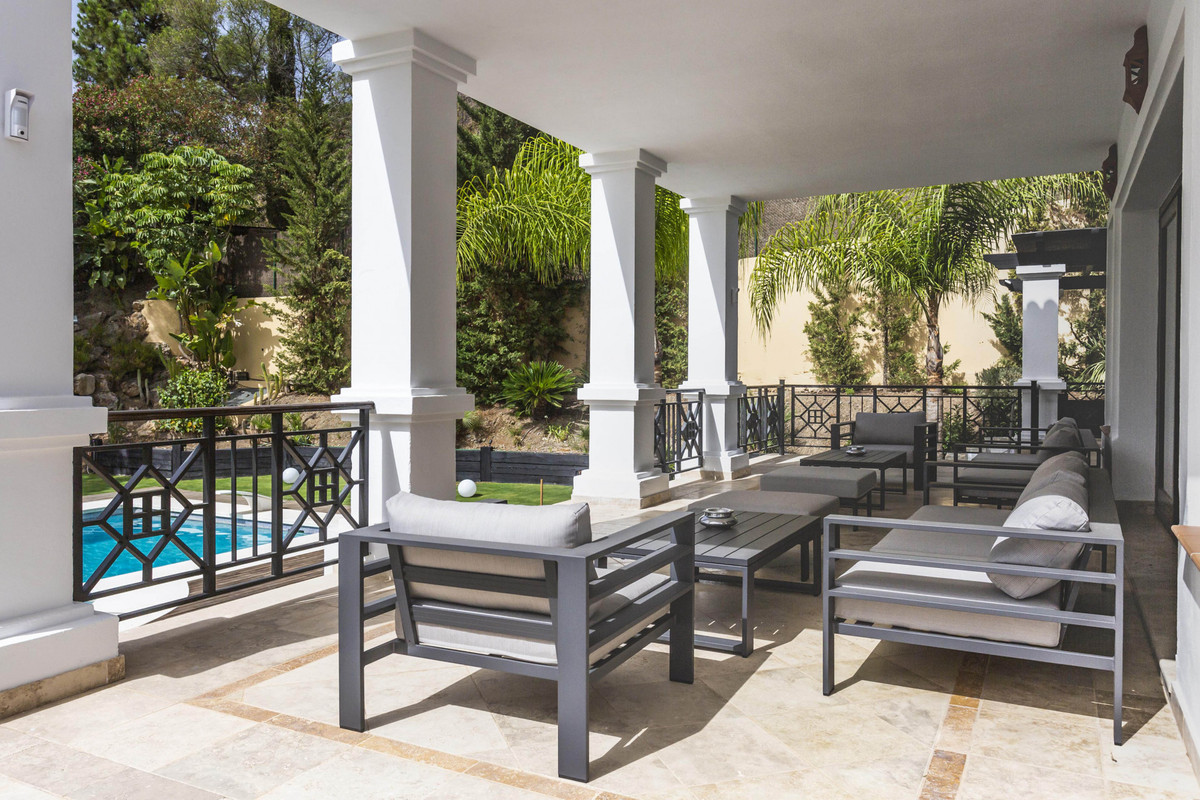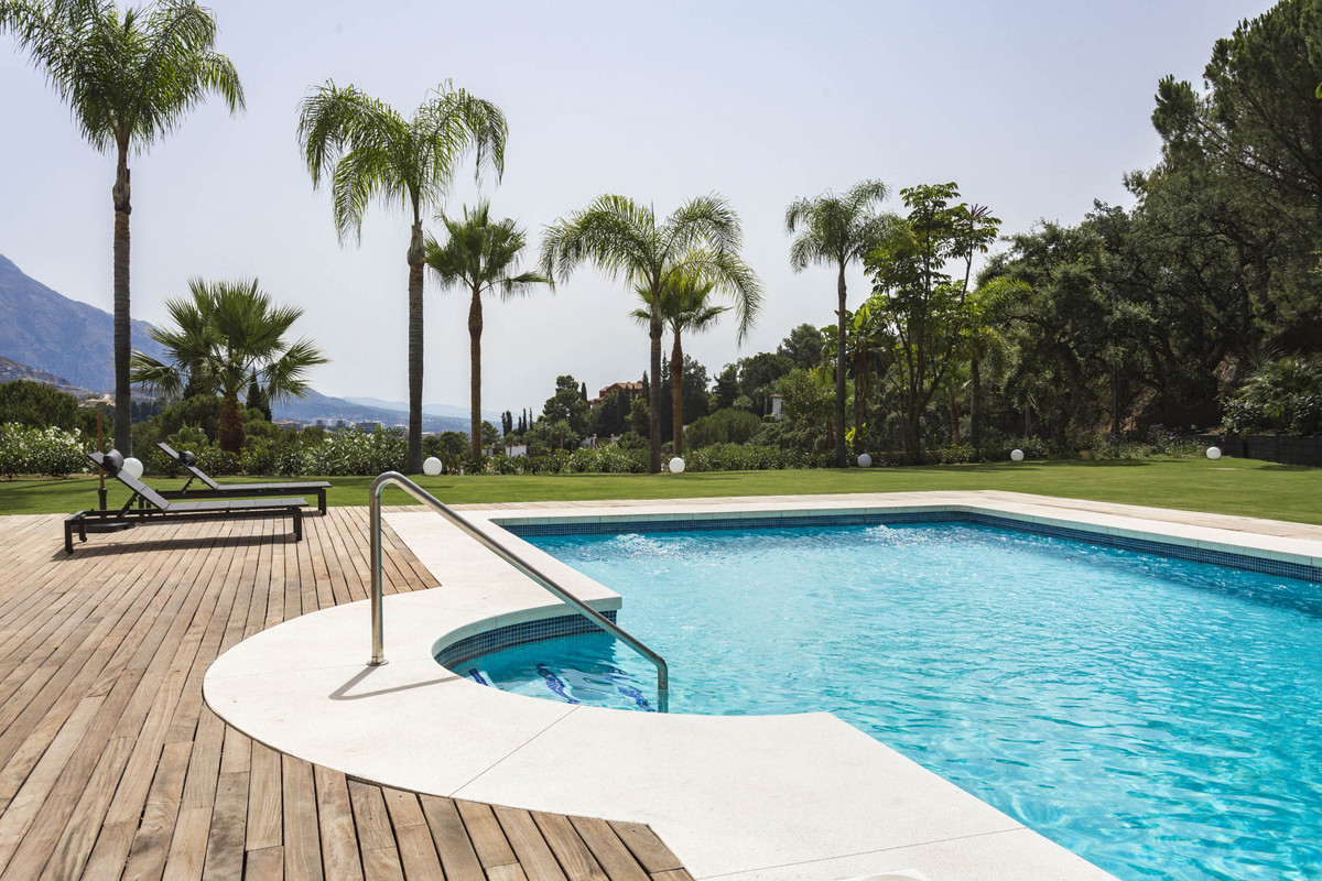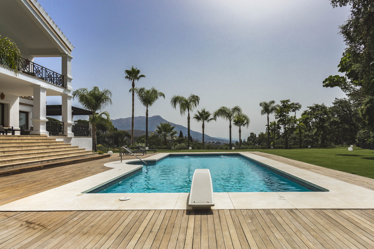 Villa for sale in El Madroñal, Benahavis with 7 bedrooms, 7 bathrooms, 6 en suite bathrooms, 2 toilets and with orientation south/west, with private swimming pool, private garage (5 parking spaces) and private garden. Regarding property dimensions, it has 1,165 m² built and 3,062 m² plot. Has the following facilities mountainside, air conditioning, fully fitted kitchen, utility room, fireplace, marble floors, jacuzzi, sauna, satellite tv, basement, guest room, storage room, gym, alarm, security entrance, double glazing, video entrance, dining room, barbeque, security service 24h, guest toilet, private terrace, living room, study room, separate apartment, country view, mountain view, indoor pool, heated pool, underfloor heating (throughout), automatic irrigation system, security shutters, dolby stereo surround system, laundry room, internet - wi-fi, covered terrace, electric blinds, fitted wardrobes, gated community, garden view, pool view, panoramic view, cinema room, wine cellar, close to golf, uncovered terrace, games room, separate dining room, balcony, spa, excellent condition, recently renovated / refurbished, ceiling heating system, underfloor cooling system, surveillance cameras, guest apartment, office room, individual a/c units, armored door, kitchenette, aerothermics and internet - fibre optic.