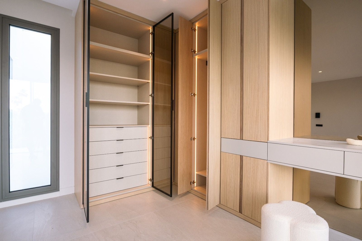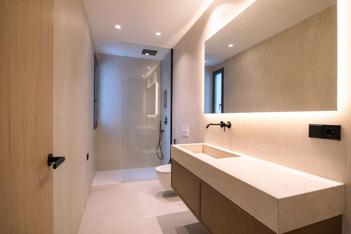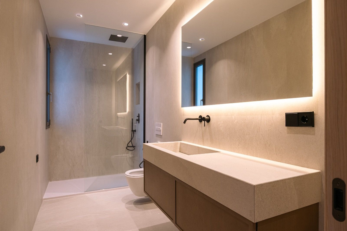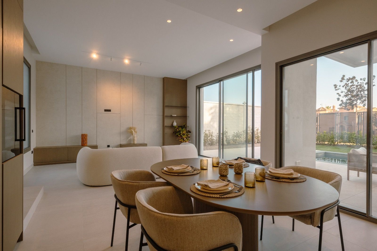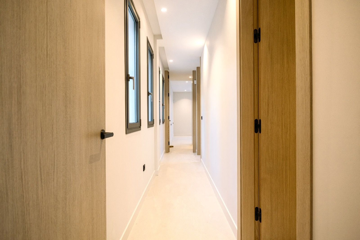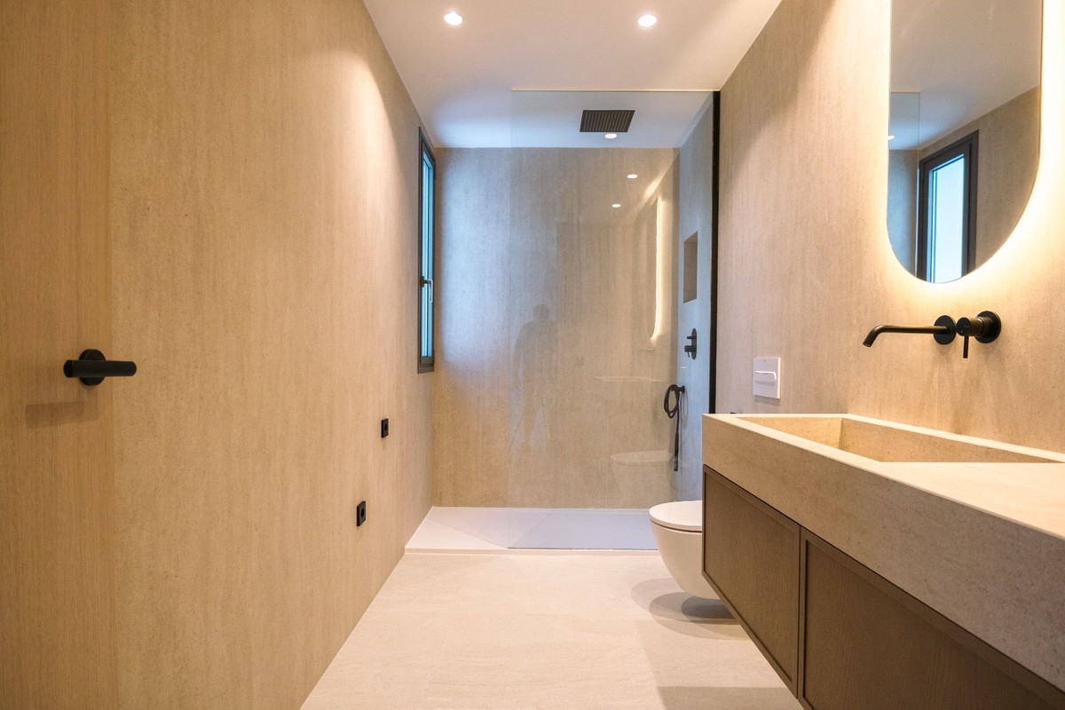 This Brand new exclusive contemporary villa on Arena Beach offers a modern, light-filled living experience. The spacious layout includes four bedrooms, each featuring state-of-the-art en suite bathrooms and handmade wardrobes with integrated lighting. The fantastic living area boasts large windows and direct access to the pool and beautiful private garden, while the high-quality American kitchen is equipped with Siemens appliances. Practical luxury is ensured by separately adjustable underfloor heating and air conditioning throughout the house. Adding to its appeal, the basement presents versatile rooms perfect for a games room, spa, or home cinema. Only 5 minutes walk to the beach and only some minutes to the Estepona harbour.