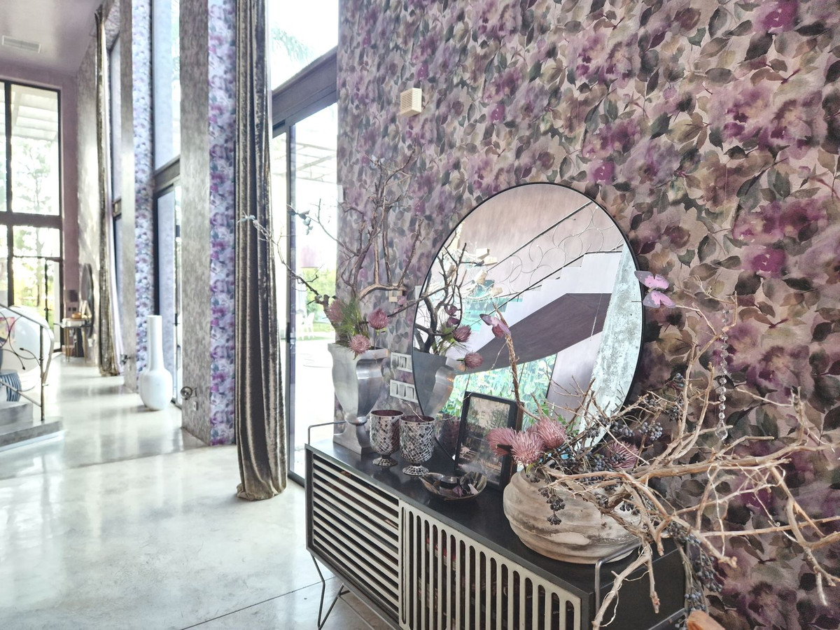 On the middle of the living there is a majestic staircase to top floor you will find a room before reaching the main room, it is a reading room with television and access to a good-sized terrace. The master bedroom with walk in closet and en-suite bathroom, has a nice views.