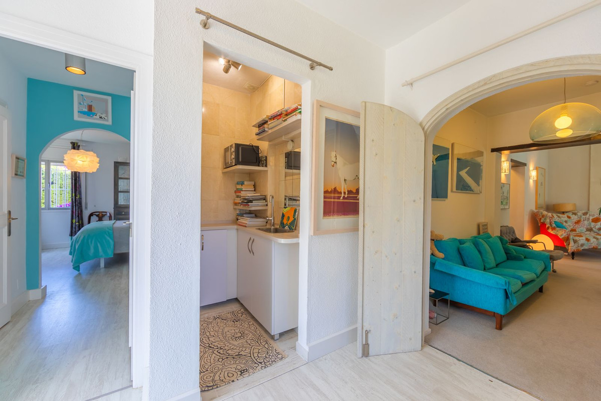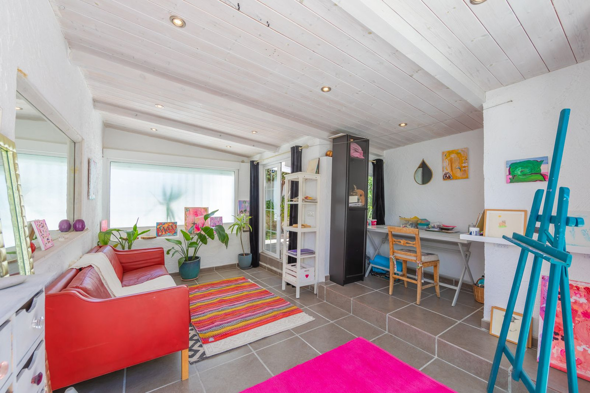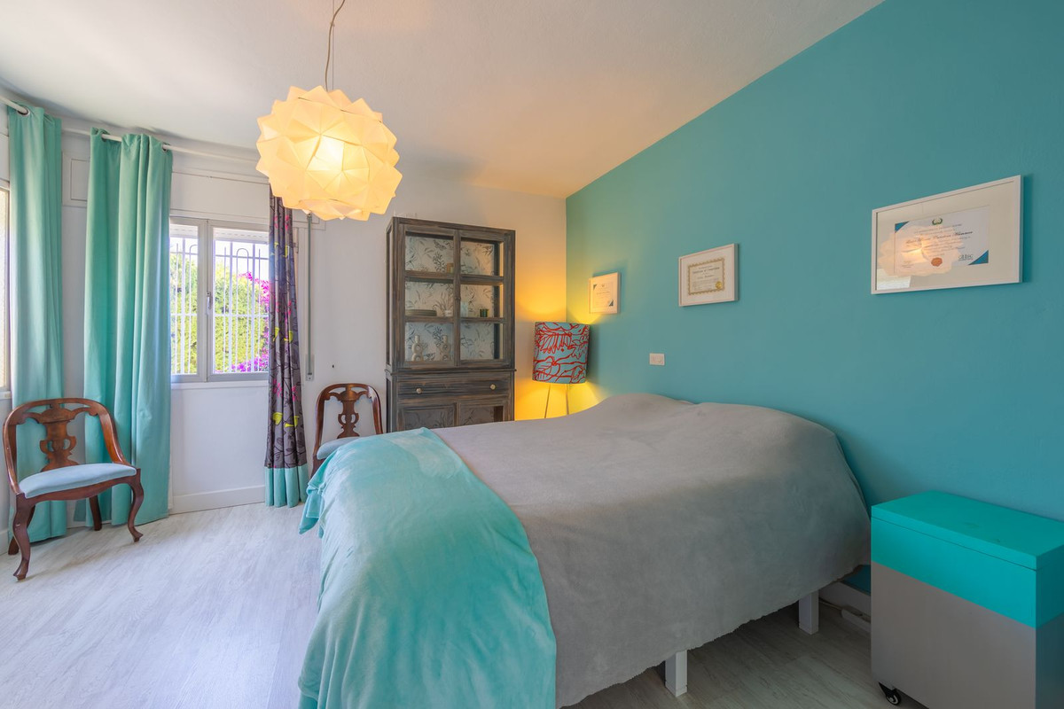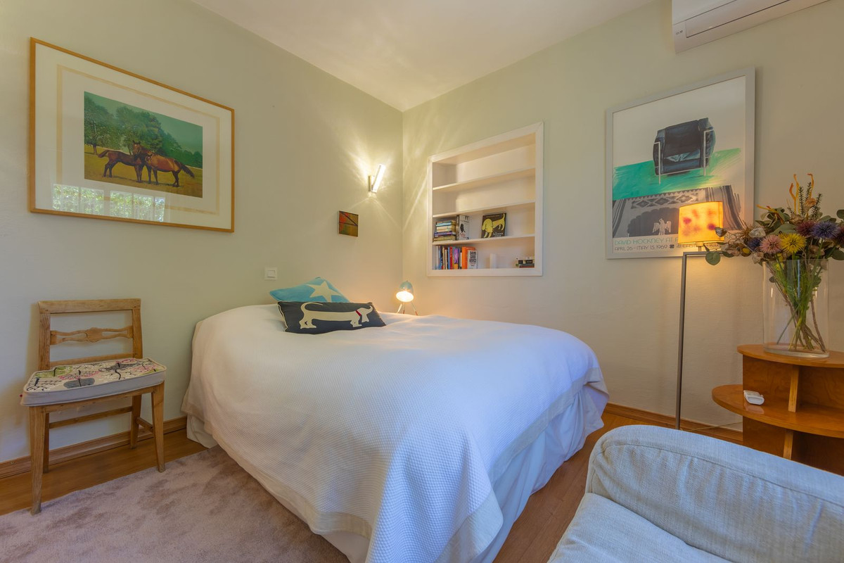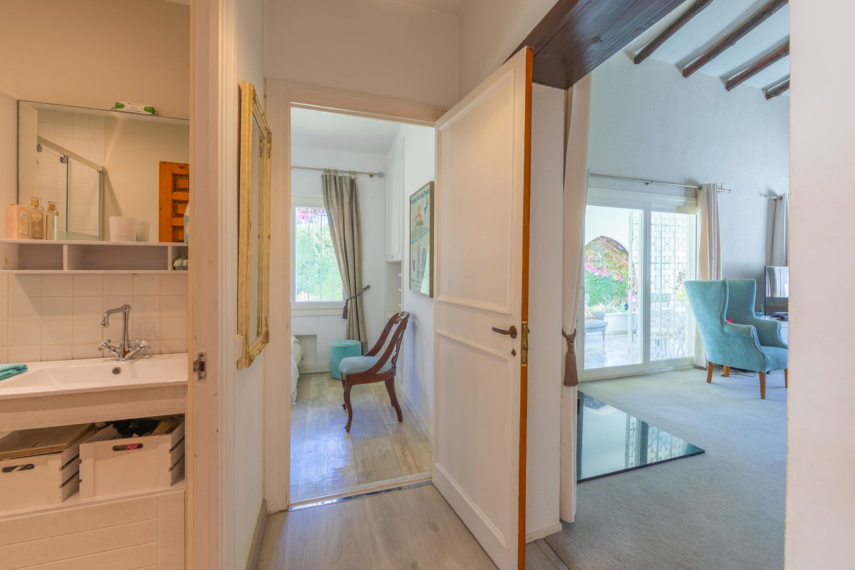 VILLA WITH ATTRACTIVE AND BEAUTIFUL MEDITERRANEAN CHARACTER, DISTRIBUTED ON A COMFORTABLE GROUND FLOOR AND LOCATED ON THE FIRST LINE OF GOLF, OF THE PRETIGIOUS REAL CLUB DE GOLF DE GUADALMINA. Located in a corner, in a cul de sac, located by the 18th Tee of the south . Enjoy a beautiful mature garden, very well maintained, with a multitude of trees and plants. LOCATED, 2 km from San Pedro de Alcántara and 6 km from Puerto Banús. Estepona and Marbella 15 min. Restaurants, Shops, and Leisure Areas just a 10-minute walk away and the beach a 5-minute drive away. Completely surrounded by Golf Courses and just a 3-minute walk from the golf clubhouse. (Golf share optional). Enjoy complete tranquility and privacy. South facing with great light and relaxing views of its excellently maintained mature garden and pool. It has a parking area for 2 cars at the entrance of the house plus a closed garage. In good condition and magnificently built, this property is distributed on a very comfortable single level. With a living room with high ceilings with wooden beams and direct access to the porch, garden and the kidney-shaped pool. The master bedroom en-suite with dressing room and direct access to the garden. A large and very bright kitchen with also high beamed ceilings and a dining area located next to the access to the parking area. The other good size bedrooms share 2 full bathrooms. The home has the option of separating an apartment by a door. From the cozy solarium enjoy relaxing views of the garden, golf courses and mountains. It also features a semi-basement with access from outside the house that could be used as a gym, games room, etc. It has great possibilities to change its distribution. We highly recommend visiting this fantastic property.