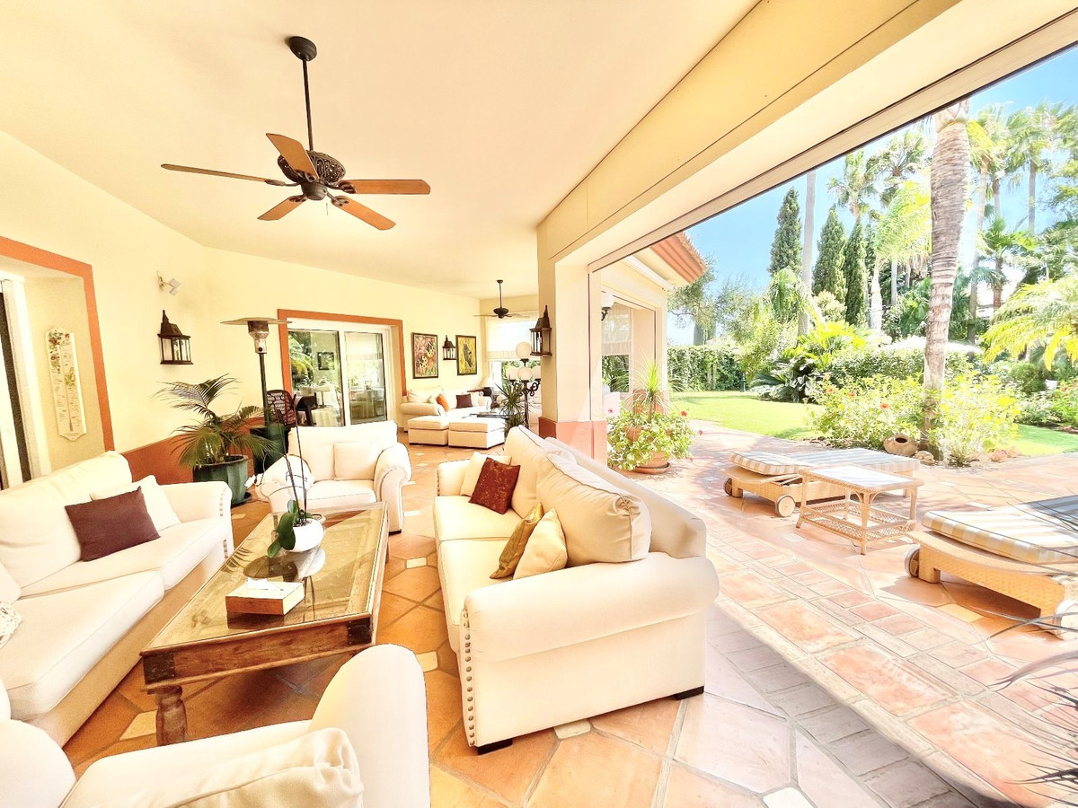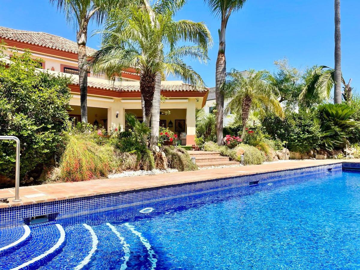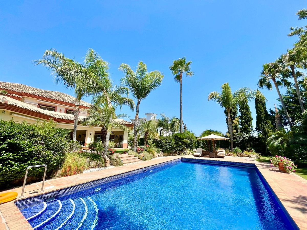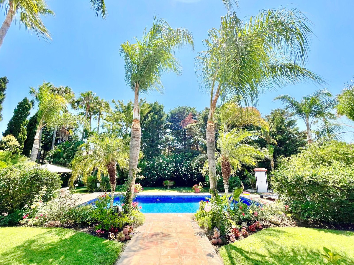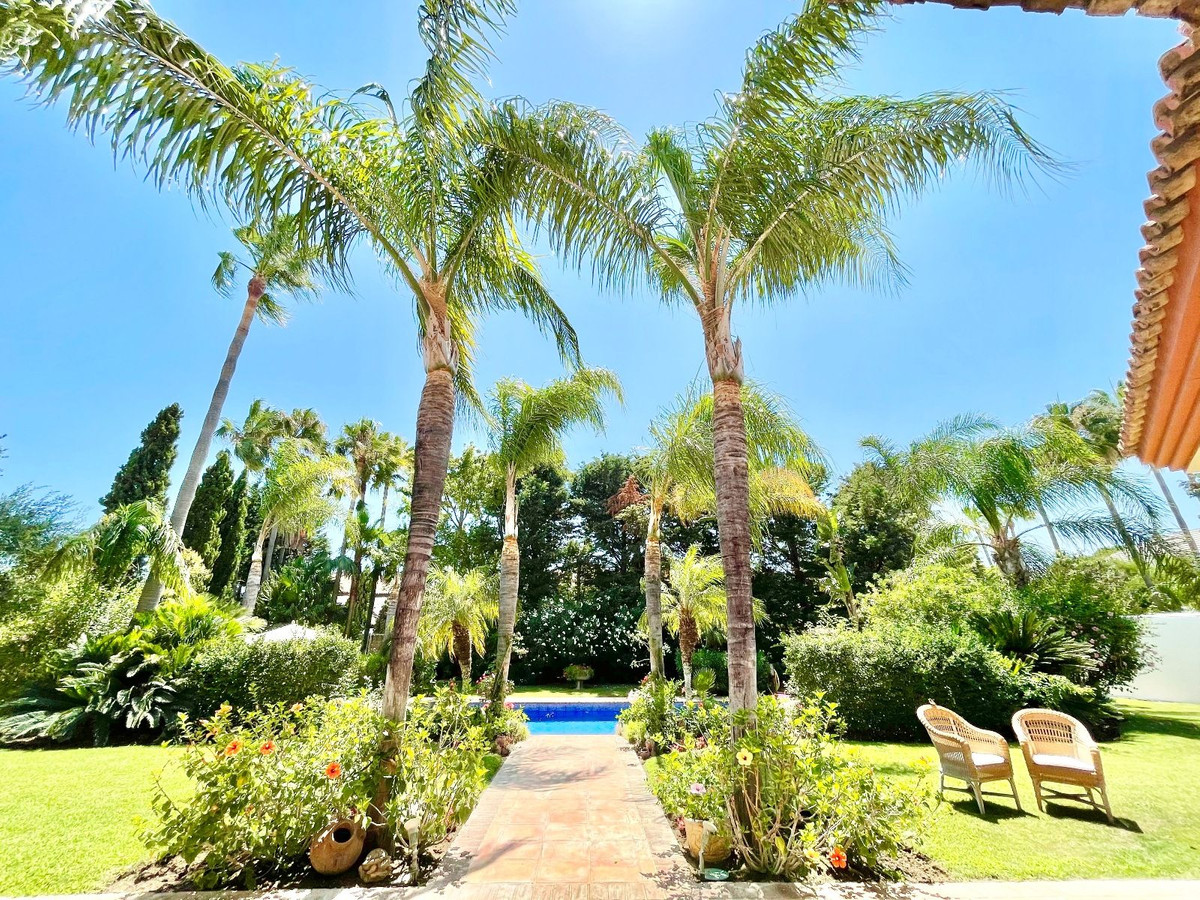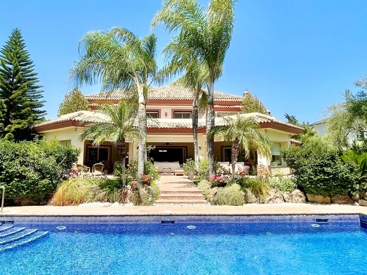 Spacious and bright villa in Guadalmina Baja, Marbella, a few steps from the luxurious beaches, restaurants and promenade. Very large bedrooms with bathrooms, two living rooms and a dining room, fully equipped modern kitchen, underground garage for several cars. Wine cellar, in the lower room equipped apartment for staff. Pool 108 m2, well-kept garden.