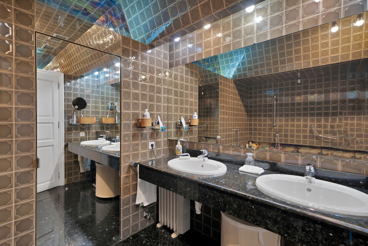 With a total built area of 700 m² (as per the Cadaster or land registry), the villa offers generous living spaces, ideal for family life. The ground floor features a spacious living room of over 40 m², a separate dining area, a large study, guest WC, and a fully equipped kitchen with a service area including a good-sized bedroom and bathroom. The inviting covered terrace opens directly onto the beautifully maintained mature garden and private pool – the perfect setting to enjoy Marbella’s enviable climate.