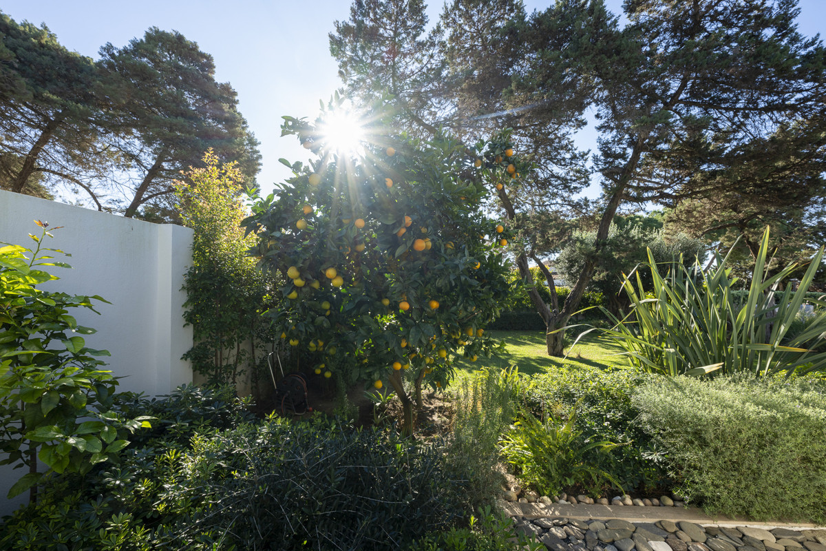 EXTERIOR The villa is designed to take full advantage of the Mediterranean climate. Its carefully maintained, private garden and charming terrace provide the perfect setting to enjoy peaceful moments in good company. The south-facing orientation guarantees an abundance of natural light throughout the day and offers spectacular sunset views. To ensure effortless garden maintenance, the property is equipped with an automatic irrigation system. Additionally, the villa features solar panels, significantly reducing energy costs while promoting sustainability. A spacious carport with room for two vehicles completes the exterior, offering practicality and convenience.