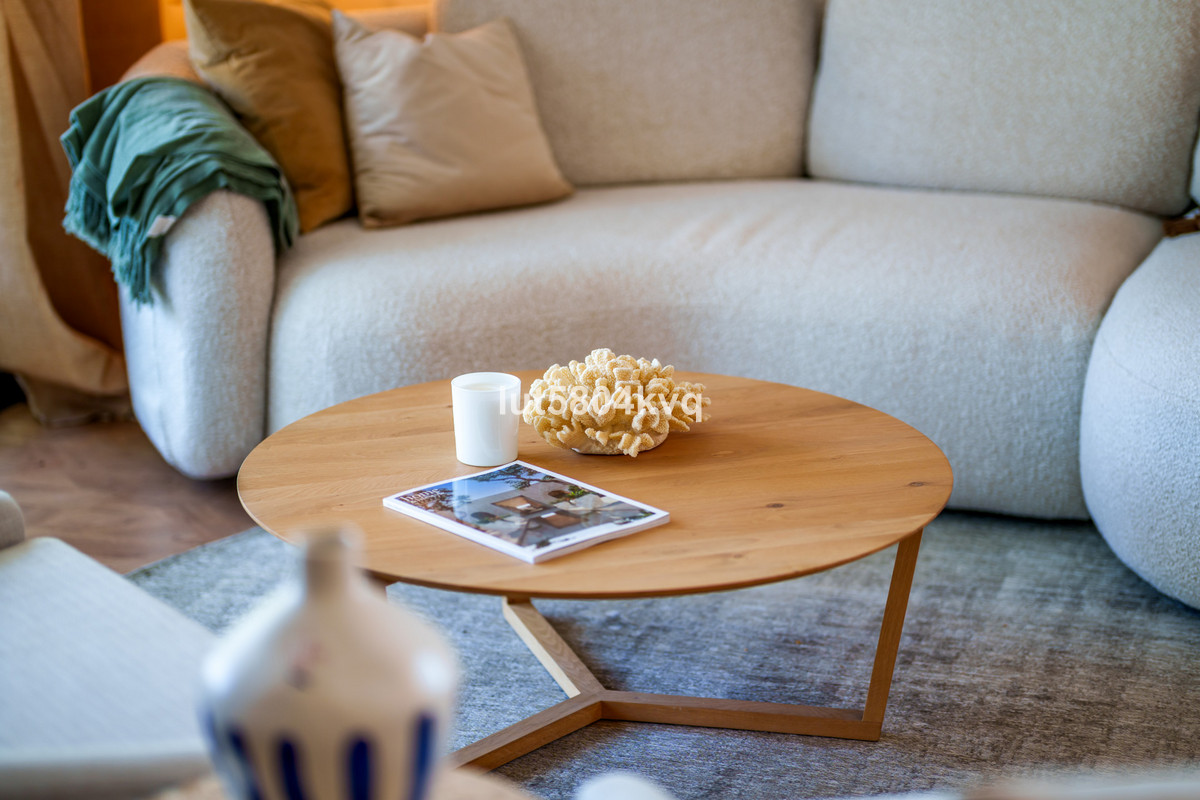 Inside, the design is contemporary and modern, reflecting its recent renovation. A modern boho-chic aesthetic defines the interiors, with light tones and natural textures creating an open, airy atmosphere. The double-height ceiling in the living room enhances the sense of space and openness.