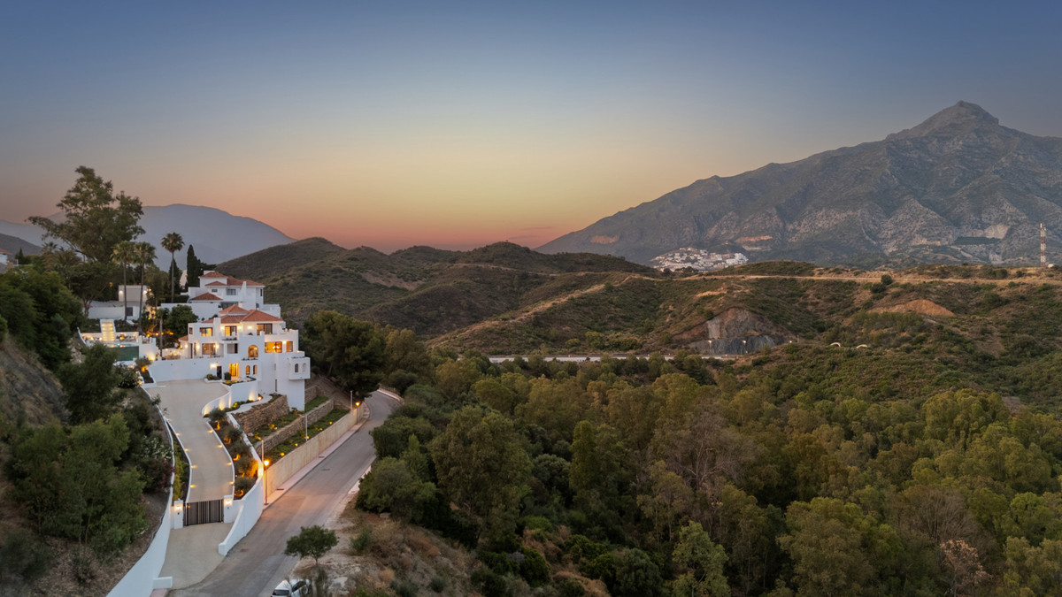 Property Highlights •Panoramic frontal views of the Mediterranean Sea, La Concha mountain, and Puerto Banús •1,950 m² plot with 444 m² of interior living space and 300 m² of terraces •Five bedrooms, each with en-suite bathrooms •Large windows throughout providing natural light and visual connection to the surroundings •Open-plan living and dining areas with direct access to outdoor spaces •Infinity-edge pool oriented for unobstructed southern views •Multi-level terraces for outdoor dining, lounging, and entertaining •Natural stone and refined exterior finishes •Located minutes from international schools, golf clubs, and the Puerto Banús marina