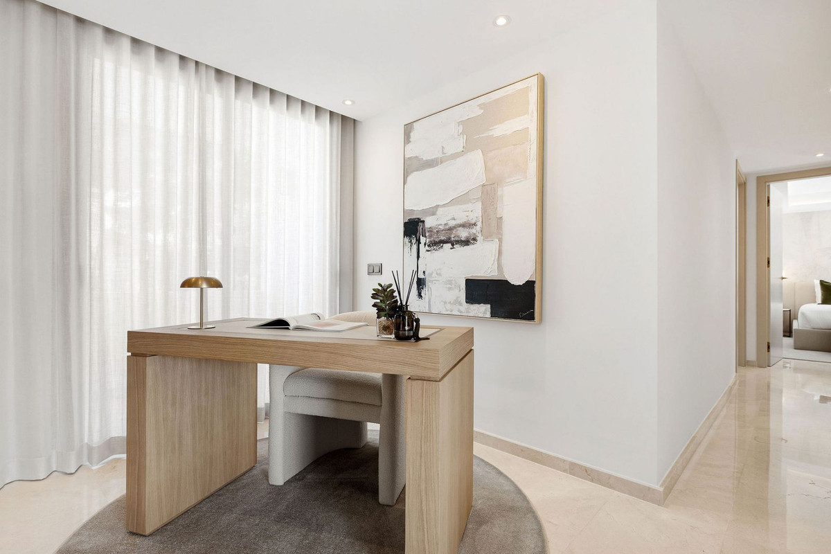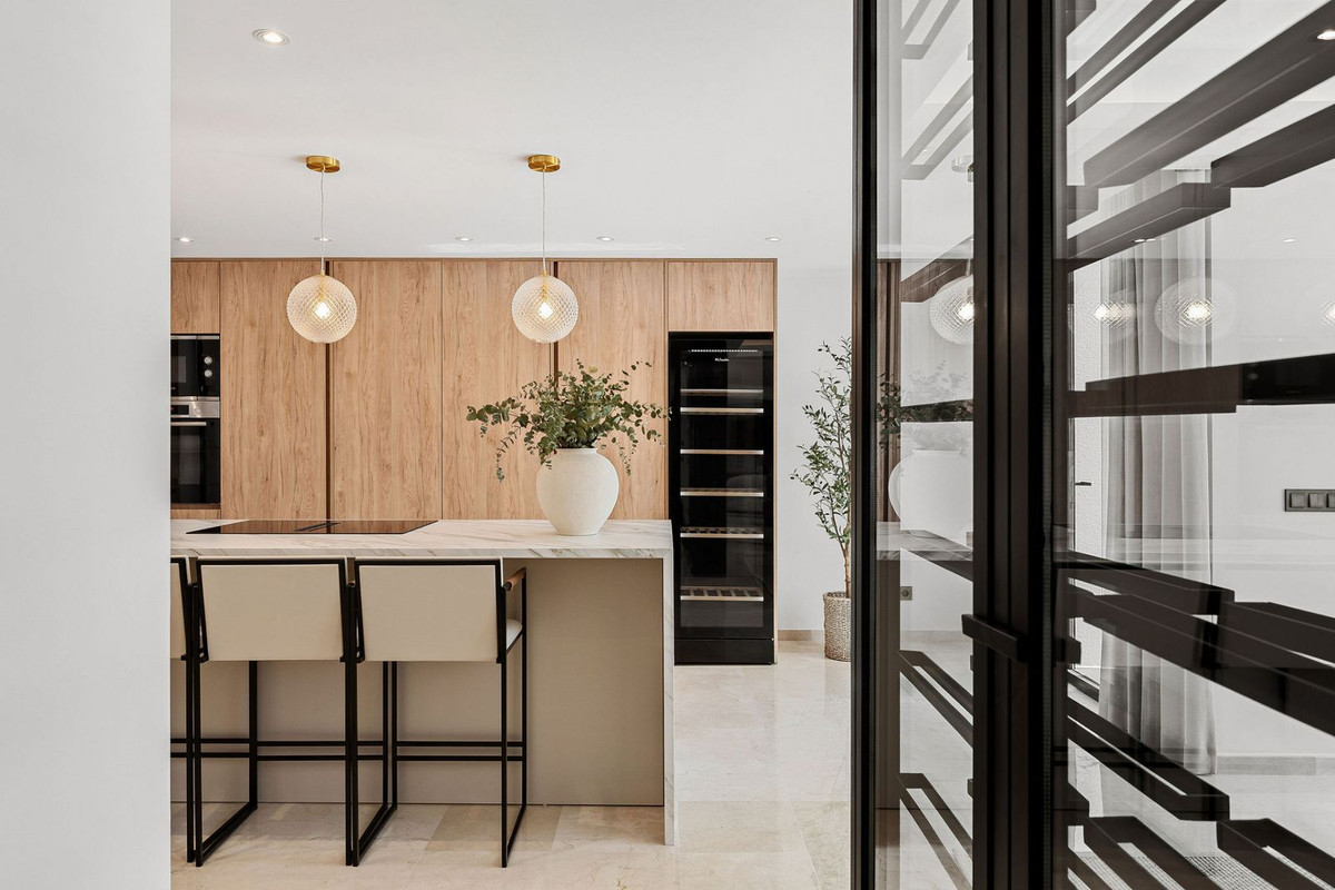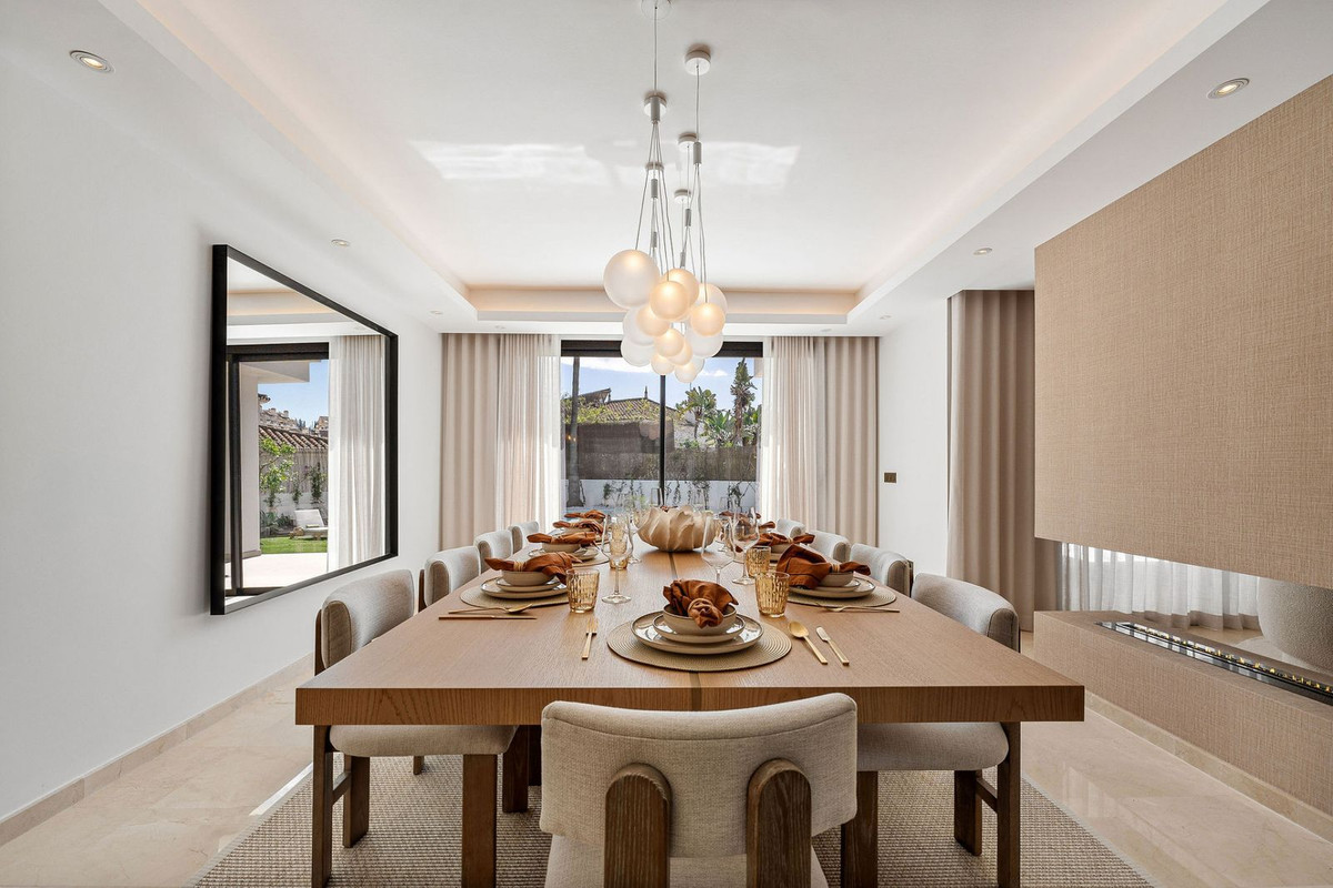 Nestled in the prestigious Atalaya de Río Verde community, this property is an exquisite luxury villa designed for those who seek comfort, privacy, and a prime location. Just minutes from Marbella’s city center and Puerto Banús, this property offers a sophisticated lifestyle in an exclusive setting. With 290 m² of elegance, the villa features five en-suite bedrooms and a guest toilet, complemented by spacious terraces that invite you to soak up the sun and enjoy stunning pool views. Its interior seamlessly blends luxury and functionality, boasting a grand living room with a fireplace, a TV lounge, a refined dining area with a wine cellar, an office, and a fully equipped Bosch kitchen.