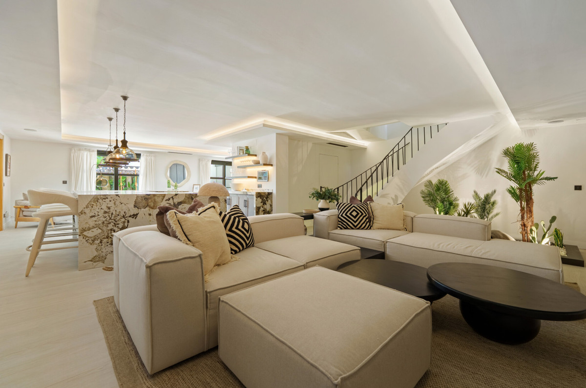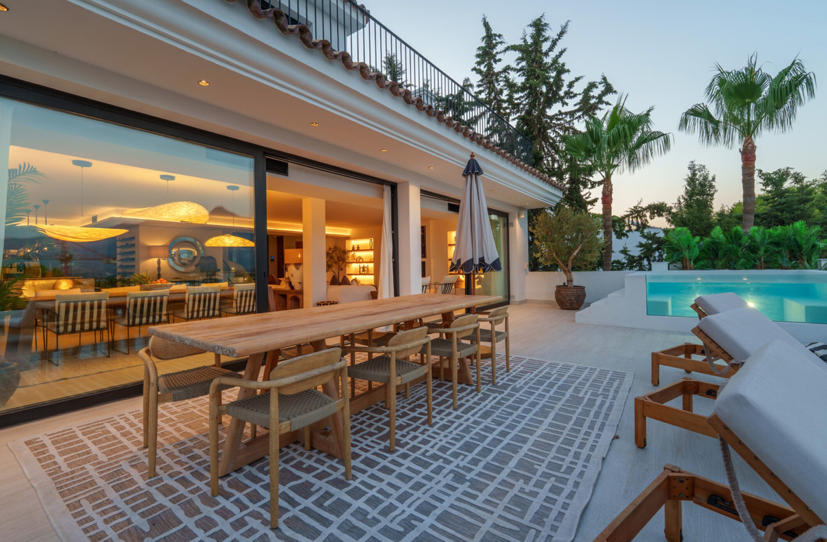 In the heart of prestigious Nueva Andalucía, just minutes from Puerto Banús, this extraordinary five-level 965 m² villa sits on a 1,474 m² plot oriented towards panoramic views of the Mediterranean Sea, La Concha mountain, and the surrounding landscape.
