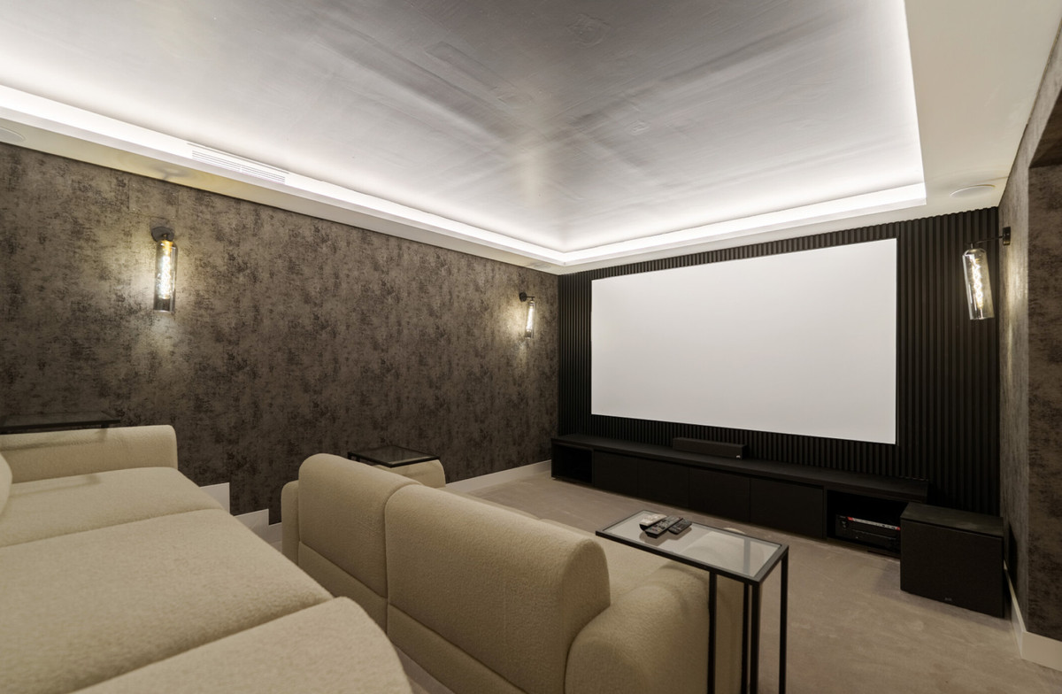 But its unique layout is what sets it apart: a living space spanning four floors, all connected via stairs and a lift. Entry is through the second floor, the master suite occupies the top floor, and the children’s area with three bedrooms is on the first floor. Entertainment and leisure take centre stage on the ground floor with a private cinema, games room, wine bodega, gym, sauna, steam room, and Jacuzzi, all opening onto landscaped gardens, a private pool, sunken lounge, barbecue area, and multiple terraces for al fresco dining. A six-car garage, ample storage space, and a separate apartment add to the convenience.