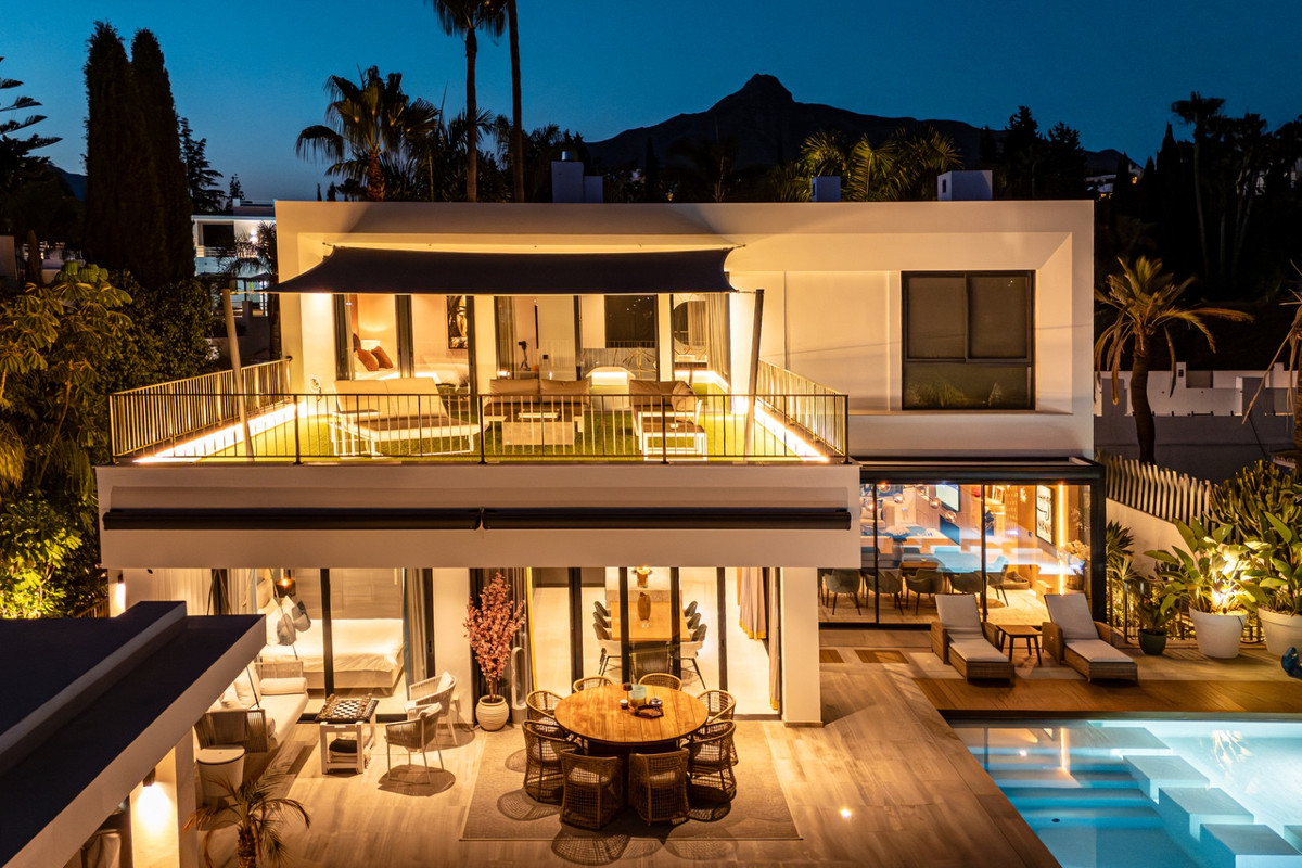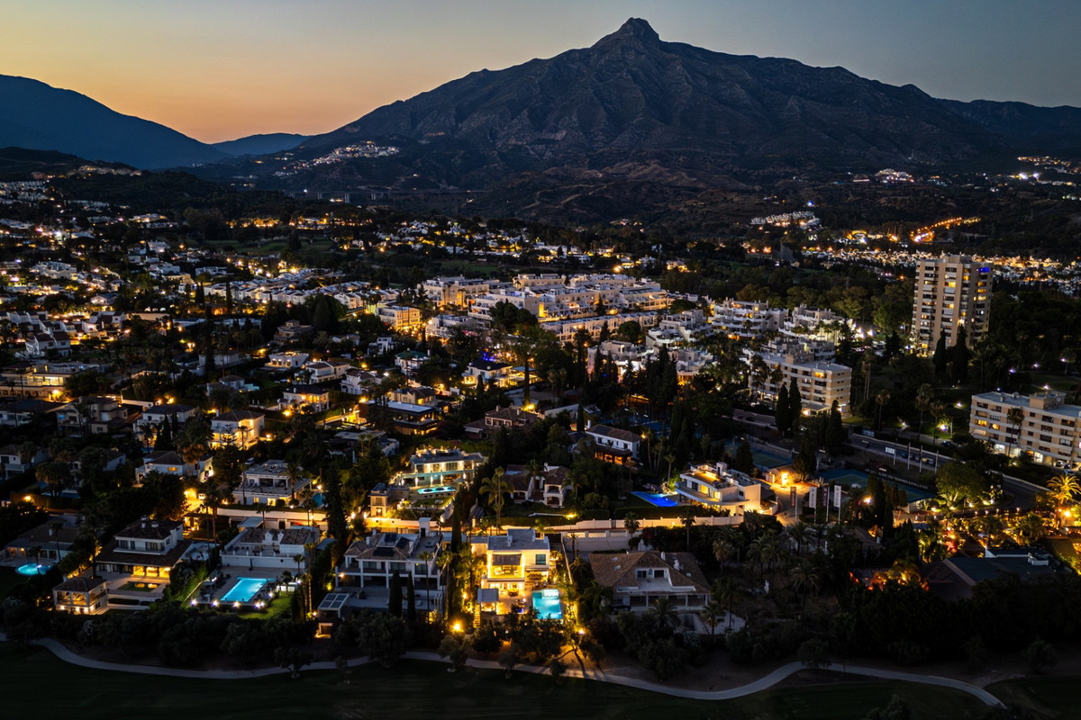 This is a luxury home in Marbella’s most exclusive gated community. The villa is spread over three levels and combines modern design with Mediterranean charm. It offers panoramic views of the golf course and mountains, with a south-facing position that ensures natural light throughout the day. Inside, the home features spacious open-plan living, a contemporary kitchen, and seamless access to the terrace with pool, jacuzzi, and outdoor kitchen.