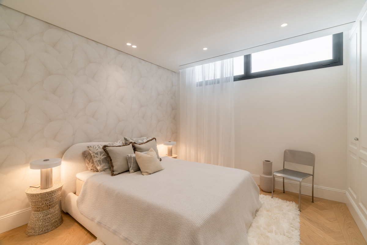 At the heart of the home lies a bespoke interior design concept that celebrates simplicity, comfort, and craftsmanship—where oak floors, linen fabrics, stone detailing, and curated furnishings create a harmonious and inviting environment.