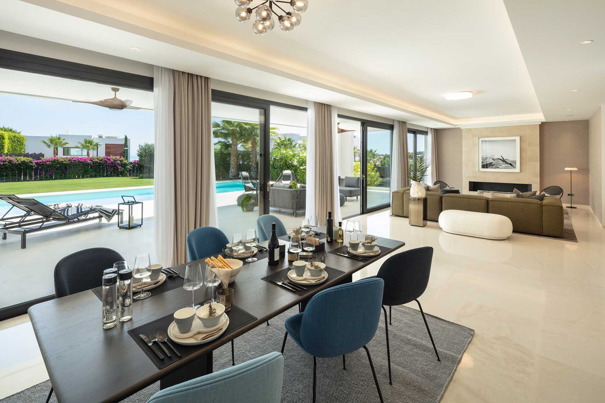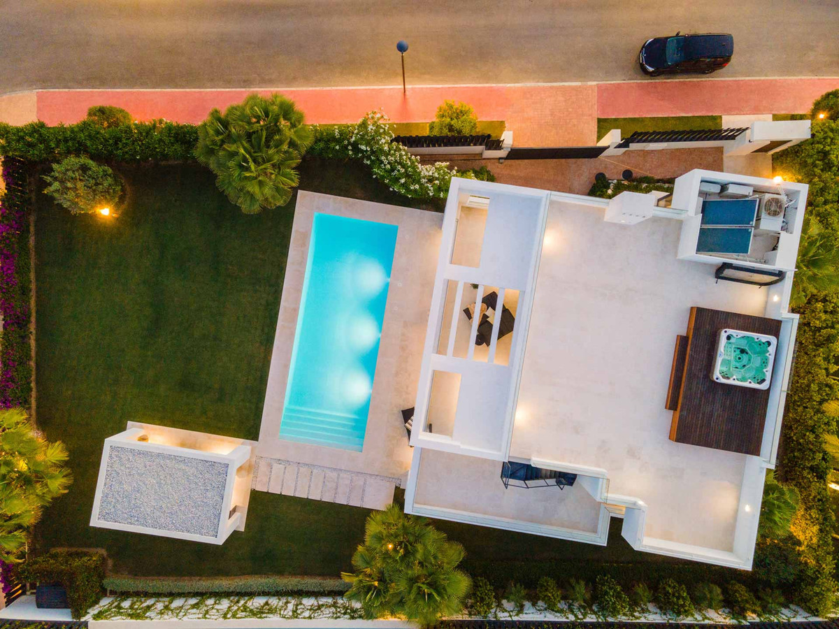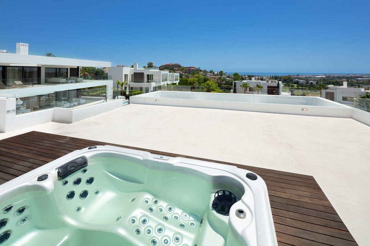 Embrace the epitome of luxury living in this stunning villa located in the prestigious Los Olivos, Nueva Andalucia, Marbella. This exquisite property boasts 5 spacious bedrooms, each with its own en suite bathroom, along with an additional guest toilet, ensuring ample space and comfort for family and guests alike. Set on a generous plot of 1,010 m2, the villa offers a built area of 486 m2, complemented by a remarkable 297 m2 terrace that invites outdoor indulgence. With a desirable south orientation, enjoy abundant sunshine throughout the day and picturesque views of the surrounding mountains and glimpses of the sea. The villa features a private swimming pool and a beautifully landscaped garden, perfect for relaxation and entertaining. Enjoy the convenience of a private garage with space for two vehicles. The ground floor seamlessly integrates indoor and outdoor living with expansive glass doors that lead to your private terrace, while the open-plan kitchen is fully fitted and perfect for culinary enthusiasts. Indulge in an array of amenities including air conditioning, underfloor heating, a cozy fireplace, and a luxurious jacuzzi. Stay active in the fully-equipped gym, unwind in the cinema room, or enjoy al fresco dining with the built-in barbecue. With 24-hour security service and a doorman, peace of mind is assured. The villa is ideally located within close proximity to various amenities, including children’s playgrounds, beautiful beaches, world-classgolf courses, shops, restaurants, and schools. Whether you seek a serene family retreat or a vibrant social lifestyle, this property perfectly balances convenience and luxury. Don’t miss the opportunity to make this exquisite villa your new home in Marbella. Experience the exceptional lifestyle that awaits!