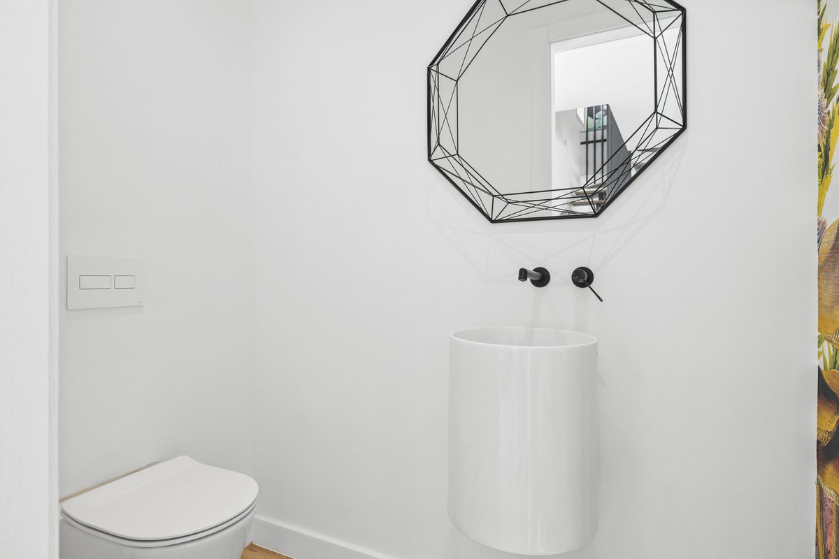 On the main floor, discover a cozy entrance leading to a spacious living and dining area perfectly connected to a fully open kitchen equipped with Bosch appliances. The main floor also features a guest toilet and a guest bedroom with an en-suite bathroom. Accessible from every corner are covered and open terraces, providing a charming space overlooking the private pool.