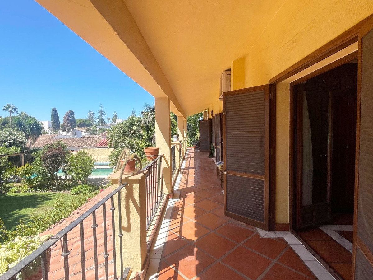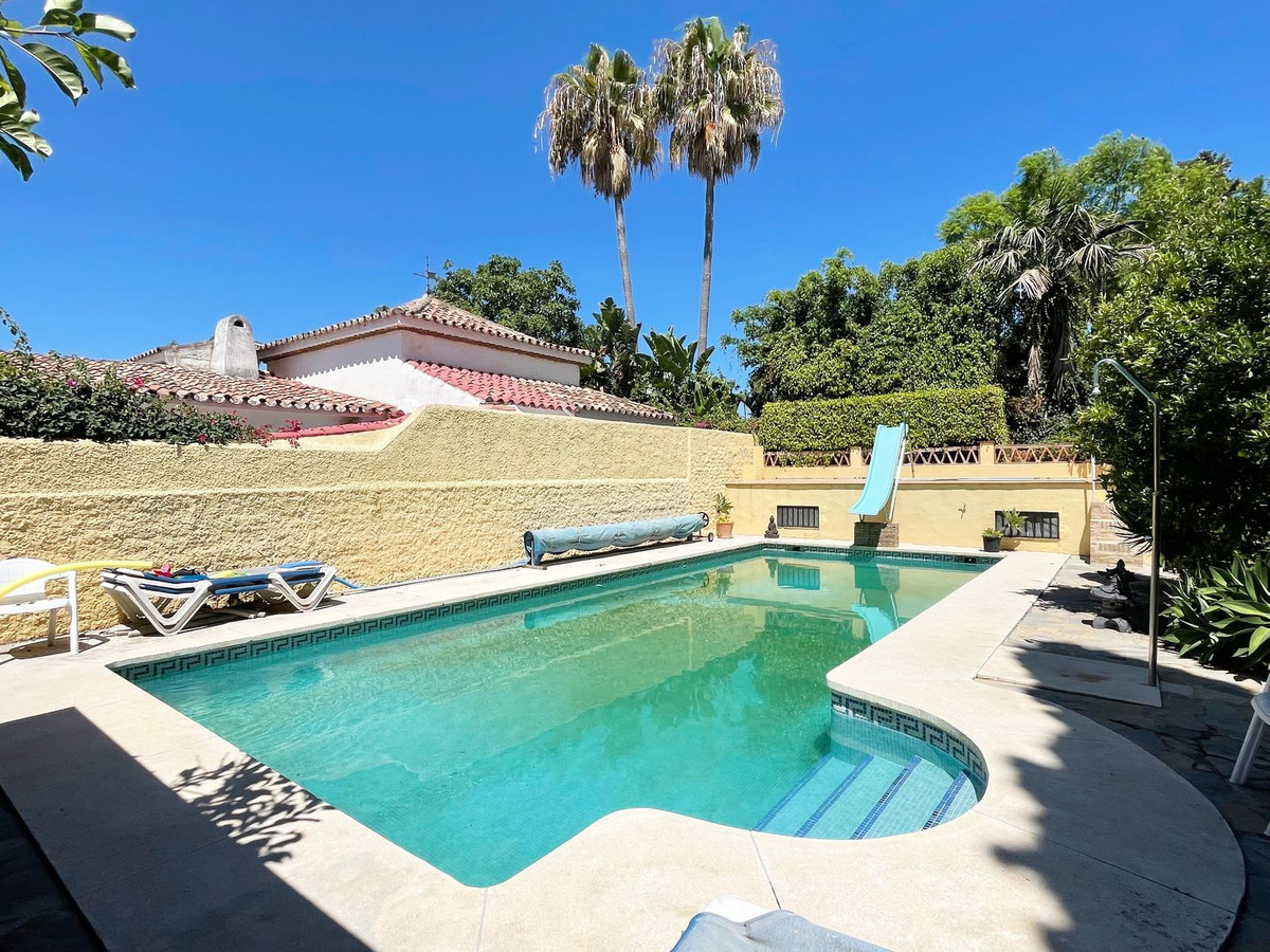 Your seaside retreat in San Pedro de Alcántara Just 200 meters from the beach lies a villa full of charm and character, where every corner invites you to linger a little longer. This house isn't just a home; it's a place where the sea breeze filters through the windows, the sun bathes every space, and tranquility becomes part of your daily routine. On the ground floor, you're greeted by a spacious living room with a fireplace, perfect for reading afternoons or gatherings with friends. The warm and inviting dining room opens onto a separate kitchen that retains its authentic flavor. There's also a TV room, ideal for unwinding, two comfortable bedrooms, a full bathroom, a powder room, and practical spaces like the laundry room and storage room. Up the stairs, the house opens up even further: four bright bedrooms and three bathrooms offer privacy and comfort. From here, you access a long balcony that connects everything, and two terraces from which to contemplate the blue sky or enjoy a coffee at dawn. But perhaps the most special feature is outside: the lovingly maintained garden, with an orchard full of fruit trees that bring life and flavor. The private pool awaits you on summer days, and the barbecue area is perfect for outdoor gatherings. There's room for three cars, although you'll most likely want to get around on foot, feeling the proximity of the sea. The house boasts details that make life more comfortable: air conditioning, underfloor heating in the living and dining room, solar panels, and renovated plumbing and electrical systems that guarantee tranquility. Everything is designed for leisurely living, with quality and in harmony with the surroundings. A villa with soul, where every day can feel like a vacation.