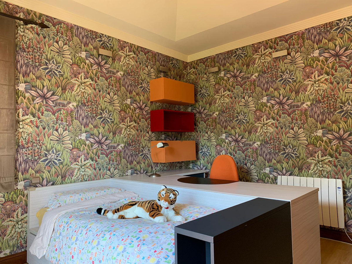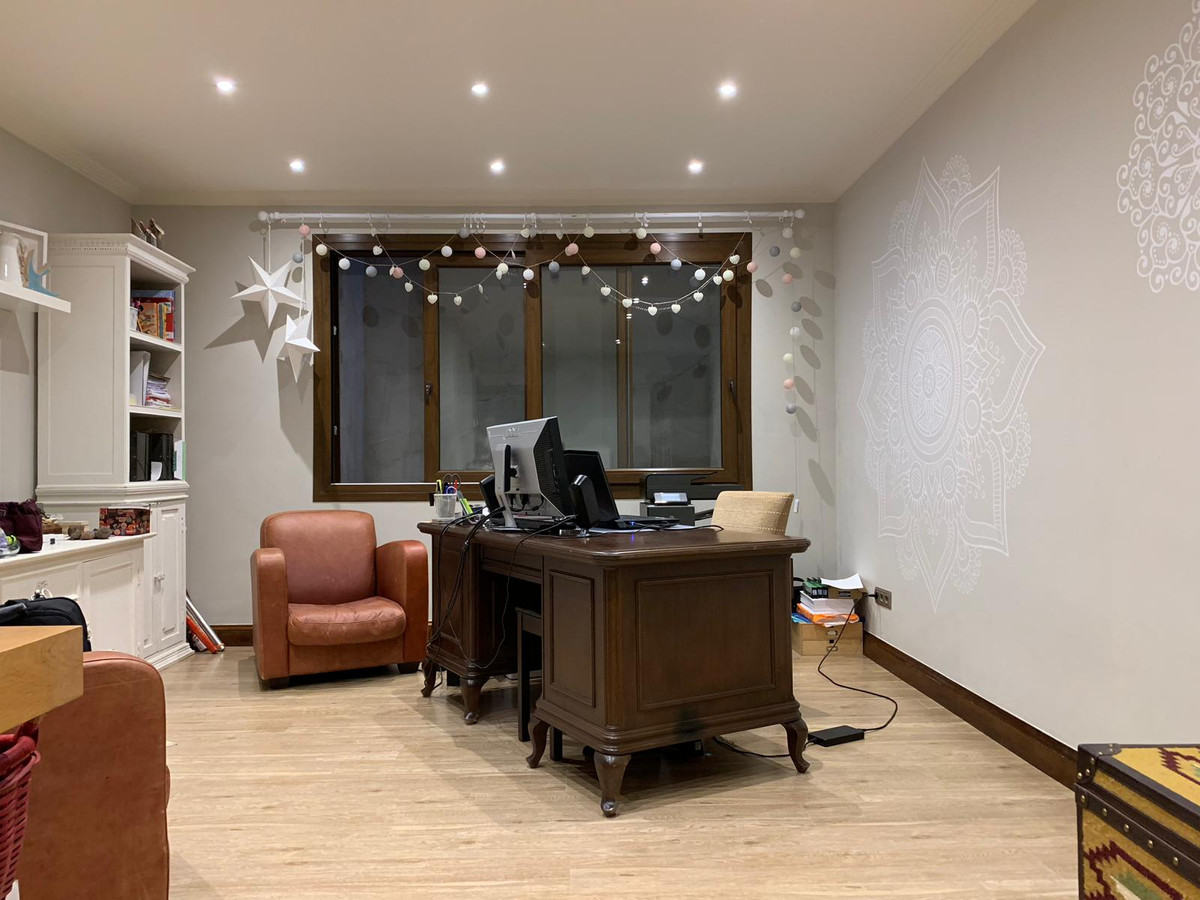 This marvellous five bedroom family villa sits in the most prestigious resident hills of Marbella, in a quiet and private area, in Cascada de Camojan. Its design and decoration, in a mixture of Andalusian and English style, is a statement of unpretentious elegance. Marbella town and the nearest beach is at 5 min. drive. Puerto Banus is at a 10 min. drive. The beautiful entrance hall with its marvellous high oak covered ceiling is a pleasure to the senses. The living room that has been ingeniously designed to provide a feeling of cosy spaciousness with its fireplace and through the use of warm terracotas, oak wood, soft furnishings and colours. This room leads to another nice area of the villa and to the dining room and kitchen and of course, to the gorgeous outdoor covered terrace with outside kitchen the garden and pool beyond. There are 5 bedrooms and 4 have en-suite bathrooms. The huge master bedroom leads out directly to a nice terrace with sea view. The whole house has under-floor heating. The kitchen is fully equipped.