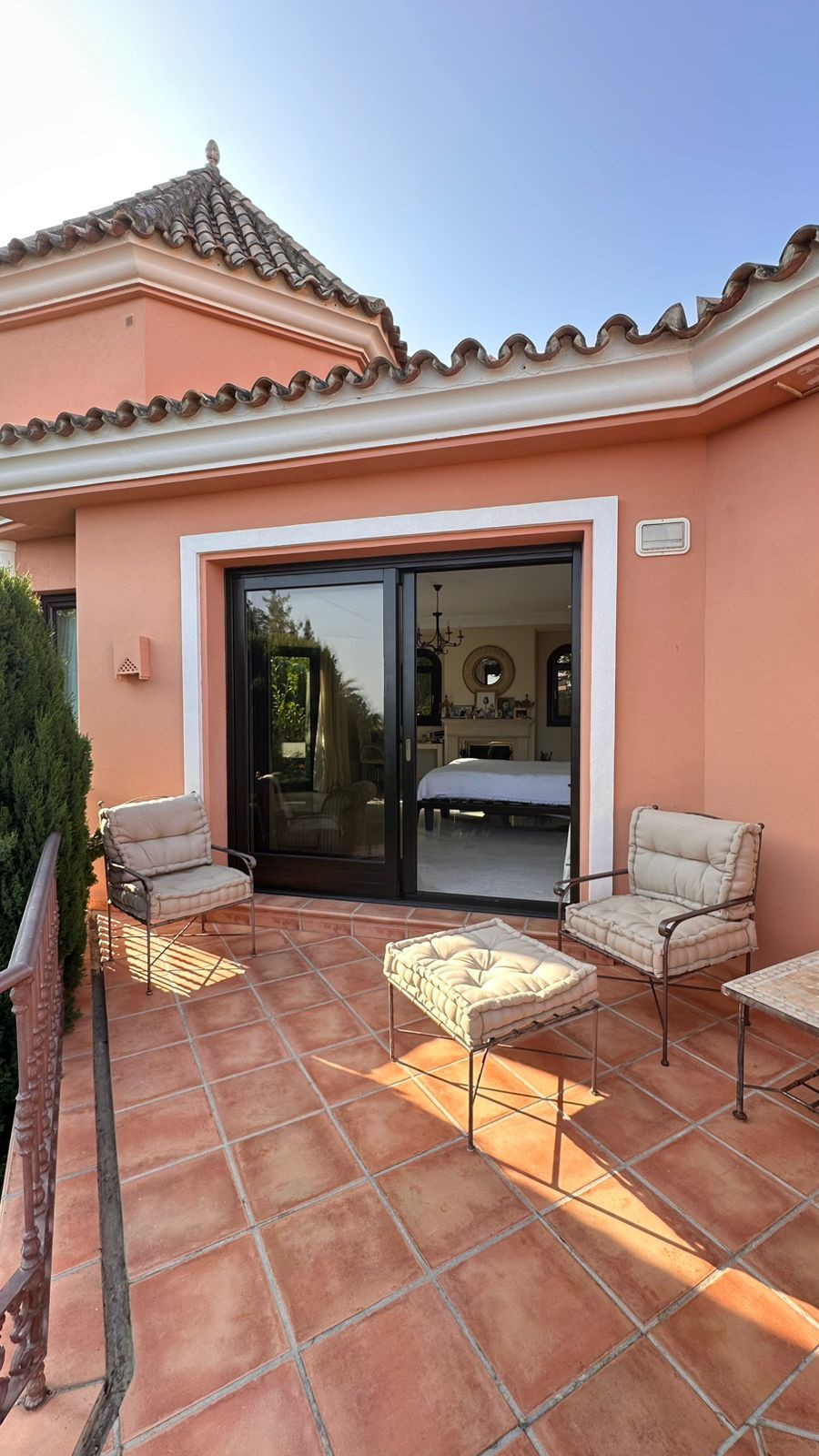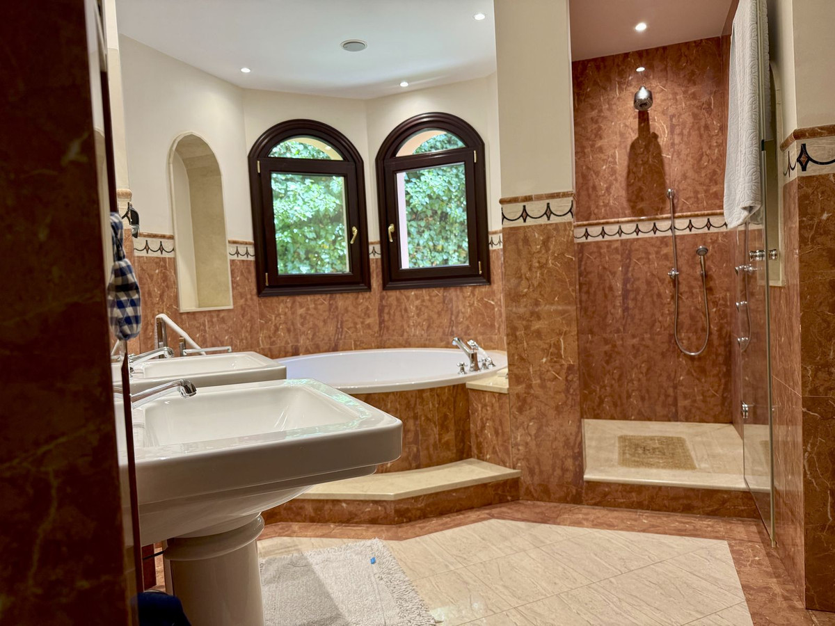 Exquisite Andalusian-Style Family Villa in Prestigious Sierra Blanca, Marbella Nestled in the heart of the exclusive gated community of Urbanización Marbella Sierra Blanca, this elegant Andalusian-style villa embodies refined living in one of Marbella’s most distinguished addresses. Set on a generous 1,342 sqm plot with a beautifully landscaped garden, the residence spans 562 sqm of built area, gracefully blending timeless Andalusian charm with modern sophistication. The architecture reflects the essence of tradition with its graceful arches, terracotta tiles, and serene ambiance. From the upper floor, the villa offers breathtaking sea views and hosts the magnificent master suite, a fully equipped kitchen. The main level features two spacious en-suite bedrooms, while the lower level offers an additional en-suite guest bedroom—perfect for visitors or extended family. A private LIFT connects all floors of the villa, offering seamless movement between living spaces and enhancing the home’s sense of comfort and accessibility. This modern convenience, paired with a discreet professional sound system installed throughout the property, creates an atmosphere of effortless luxury. Outdoors, the Mediterranean lifestyle can be savored around the saltwater swimming pool, sun-drenched terraces, and tranquil garden retreats. The property further benefits from private parking for four cars and an enclosed garage space. A rare opportunity to acquire a timeless Andalusian retreat just minutes from Marbella’s Golden Mile, international schools, golf courses, and pristine beaches.