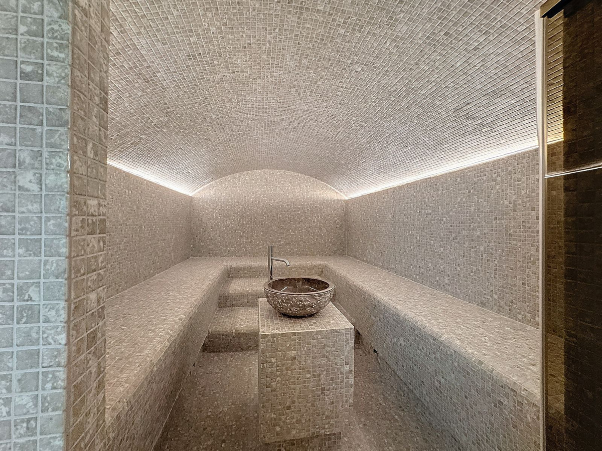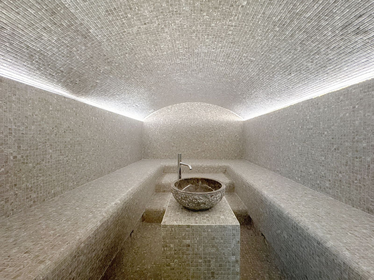 Private spa with sauna, hammam, massage room and sensory showers.
