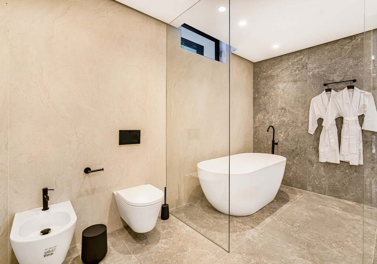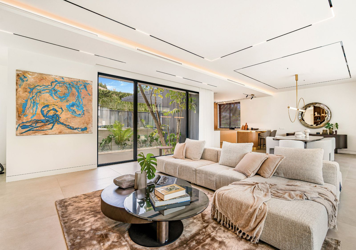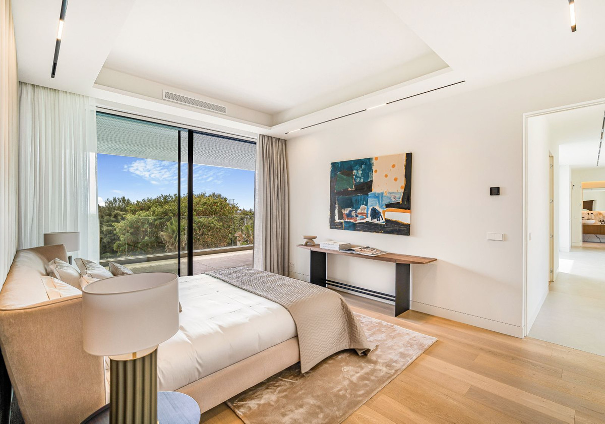 Strategically positioned on an elevated site facing south, the villa boasts spectacular views of the Mediterranean Sea and the iconic La Concha mountain, filling the interiors with natural light throughout the day.