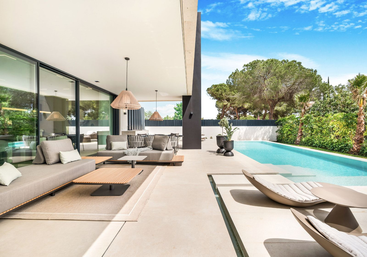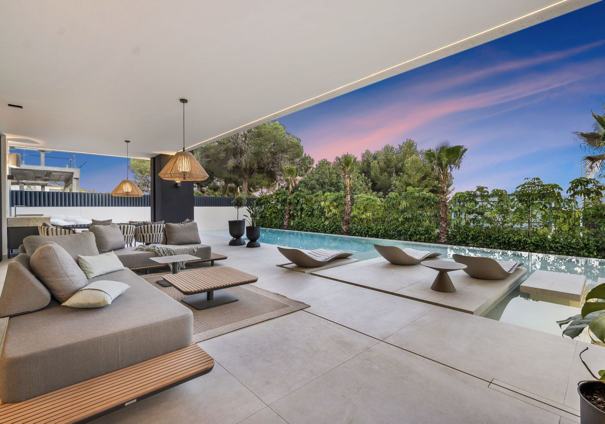 Welcome to this stunning brand new 5-bedroom luxury villa in the heart of Marbella's coveted Golden Mile, specifically in Rocío de Nagüeles. This exclusive property seamlessly blends elegant design with modern amenities, offering unparalleled luxury living in a prime location.