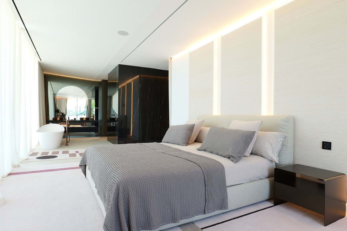 Experience the height of luxury in this newly built villa on Marbella’s prestigious Golden Mile. This modern masterpiece combines contemporary architecture, avant-garde design, and timeless elegance. With 1,038 m² of built space and 350 m² of terraces, it offers an exceptional setting for the Mediterranean lifestyle. The villa features five spacious bedrooms, each with an en-suite bathroom and private terrace. The primary suite stands out as a true sanctuary with a walk-in closet and abundant natural light.