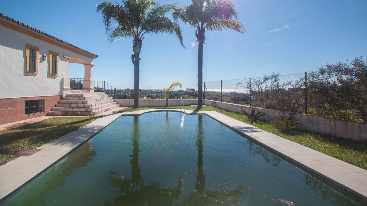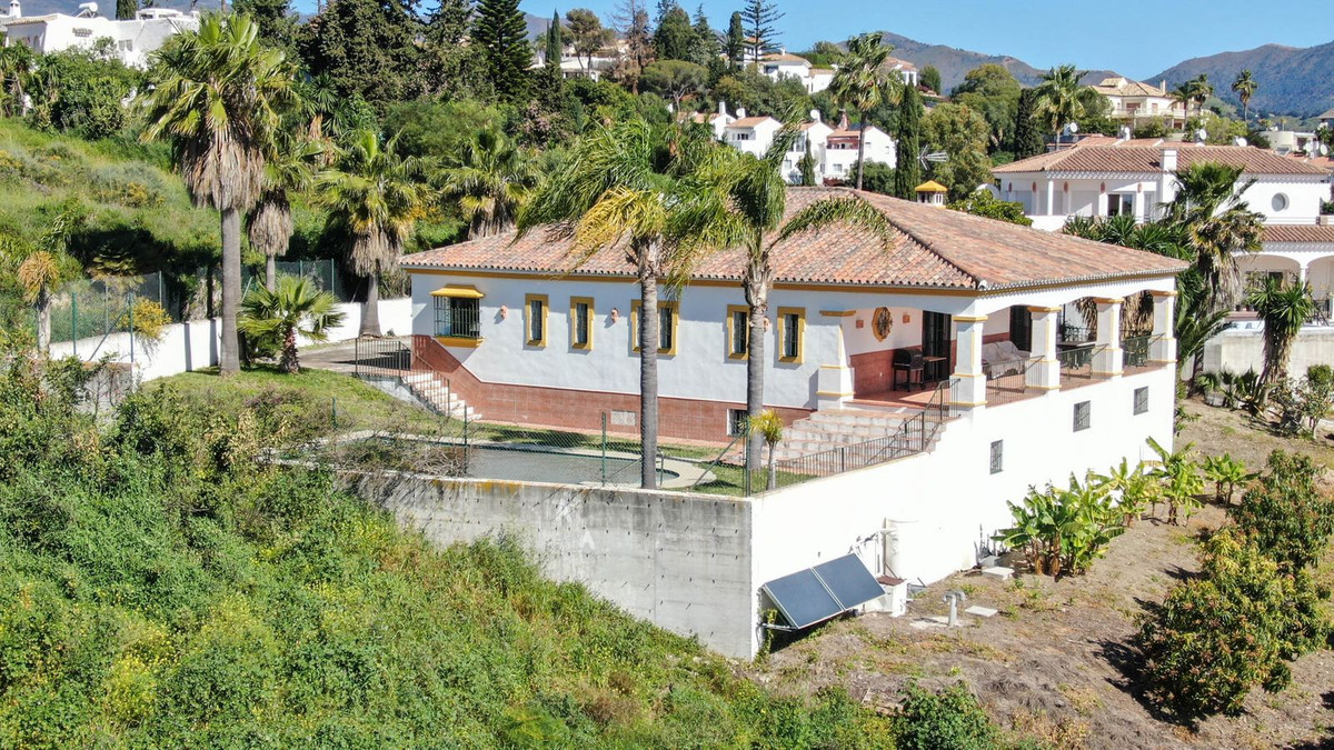 Country estate for sale in Padrón Estepona with sea and mountain views, located just a 5 minute drive from the beach in Andalusia, Estepona, Costa del Sol, near Marbella and Puerto Banús. Located in the exclusive area of El Padrón, Estepona, on the Costa del Sol, this spectacular country estate offers the best of rural living while still being close to all services. Just 5 minutes by car from the beach, and a short drive to Marbella and Puerto Banús, it is a unique opportunity to enjoy the tranquility of the countryside with easy access to the best of the coast. Property Description: The estate sits on a 5,830 m² plot, with a 441 m² constructed home that has been thoughtfully designed for comfort and functionality. Upon entry, you are welcomed by an elegant hallway that leads into a spacious living-dining room, beautifully lit and featuring a cozy fireplace. From the living room, you can step out onto a covered porch, perfect for enjoying panoramic views of both the sea and the surrounding mountains. The kitchen is independent, fully equipped, and includes a breakfast area and a large pantry. The main floor also features the master bedroom with an en-suite bathroom and a spacious walk-in closet. Additionally, there are two generous-sized bedrooms that share a full bathroom. The property is fitted with air conditioning throughout, ensuring comfort year-round. Garage Area and Additional Space: On the lower floor, there is a large garage area that could easily be converted into a gym, game room, or even more bedrooms, as it is a completely open and versatile space. Exteriors: The estate is accessed through an electric gate that leads to an outdoor parking area. Outdoors, there is a magnificent swimming pool surrounded by a barbecue area, perfect for enjoying sunny days. The plot is mostly flat and partially planted with fruit trees, adding both natural beauty and productivity to the property. It also has both well water and municipal water, providing an efficient and cost-effective irrigation system. Location: Despite its tranquil location, the estate is just a few minutes from the coast and close to all essential services, such as supermarkets, restaurants, and schools. The vibrant town of Estepona is only a short drive away, and the proximity to Marbella and Puerto Banús ensures an excellent selection of entertainment, luxury dining, and sports activities. If you want to live in the countryside without giving up the proximity to the beach and all the services of the Costa del Sol, this estate is the perfect opportunity. Don't hesitate to contact us for more information and to arrange a visit to this impressive property!