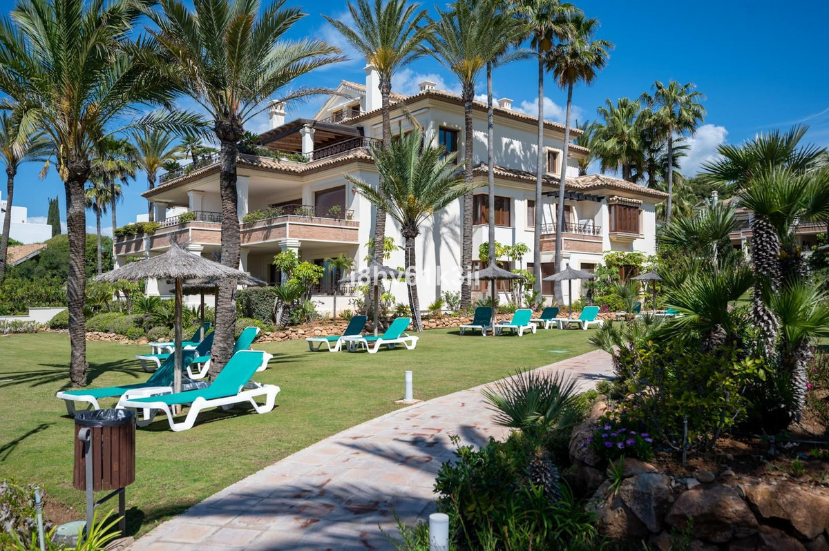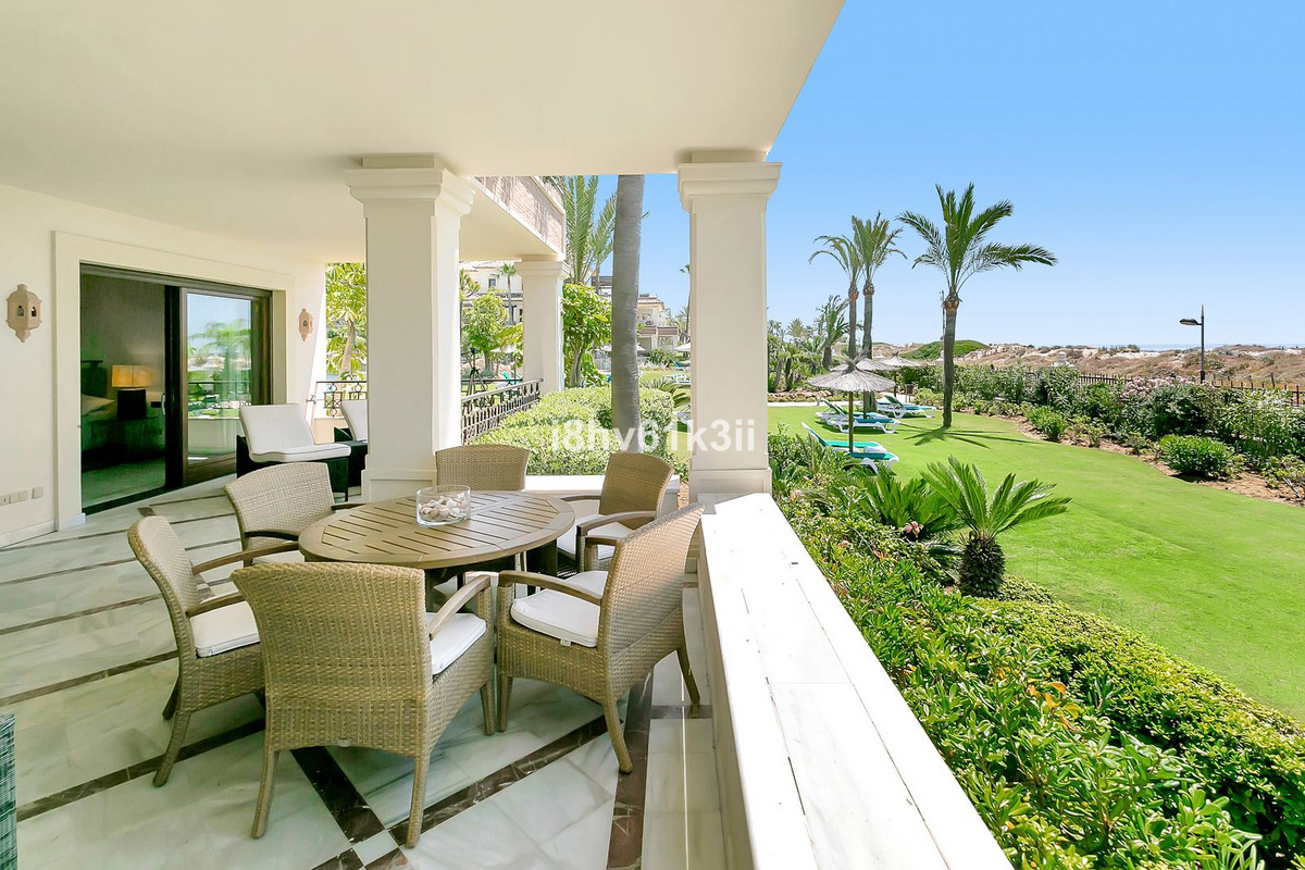 The luxurious three-bedroom ground-floor apartment, front line beach in Los Monteros Playa, is finished to the highest of standards and taste. The property has just been beautifully refurbished including a brand new high-tech kitchen.