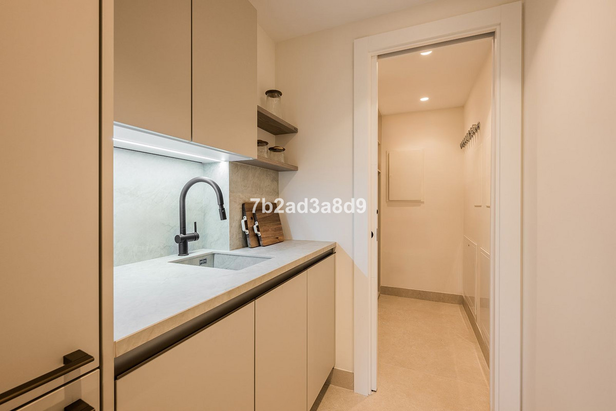 This is a fully renovated, southwest-facing beachfront apartment in the prestigious Los Granados del Mar, offering a rare blend of refined elegance, cutting-edge design and lifestyle-enhancing features. Situated on the New Golden Mile between Marbella and Estepona, this exceptional residence enjoys panoramic Mediterranean Sea views from an expansive 87 m² terrace, complete with a private swimming pool and serene private garden – ideal for al fresco dining, entertaining or simply unwinding in total privacy.