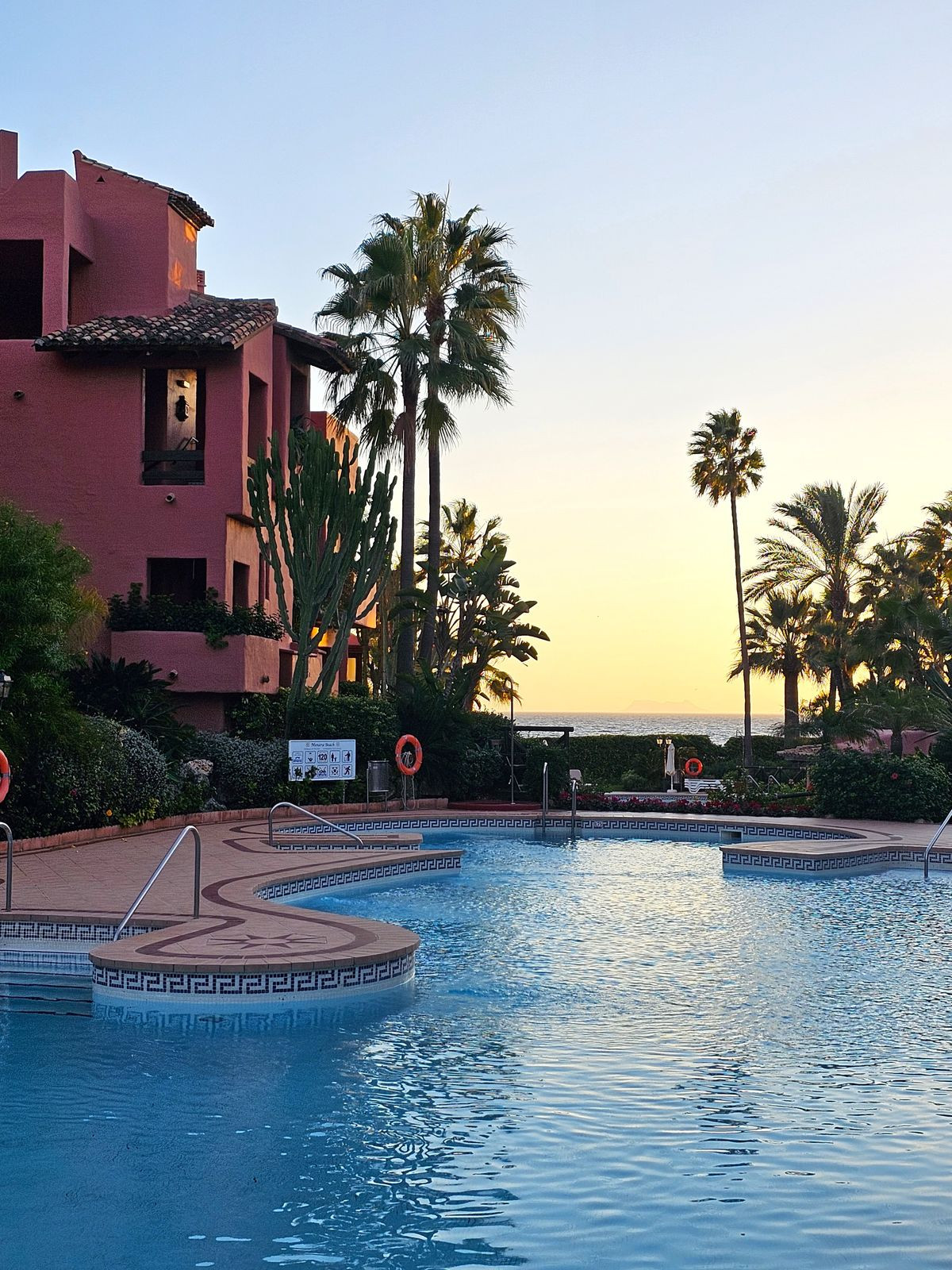 Menara Beach is a secure, gated community with beautifully kept gardens and direct access to the beach. You’ll have use of two outdoor swimming pools surrounded by palms, plus an indoor heated pool, a gym, and a sauna. The vibe is peaceful and friendly, with a real sense of community among the residents.