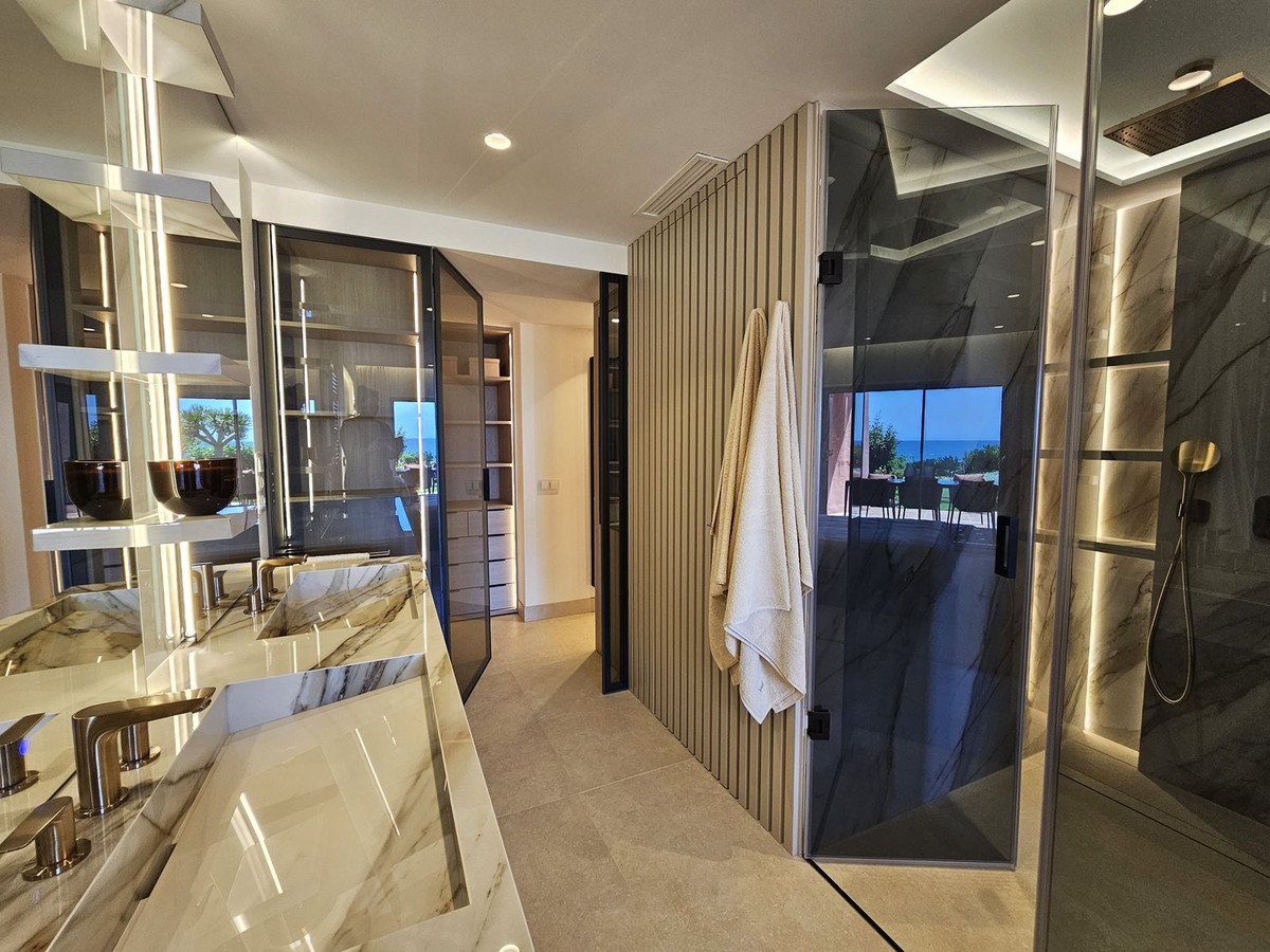 Walking in, you are met with stunning sea views stretching out to the horizon. The living space opens straight onto a large private terrace, making it easy to enjoy that indoor-outdoor lifestyle, whether you're winding down or hosting friends. The sound of the waves in the background just adds to the calm.