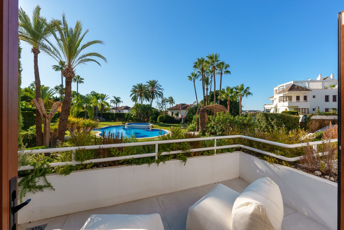 Welcome to this newly renovated duplex ground floor apartment in the heart of Nueva Andalucia, Marbella. This property is very unique because of its spacious rooms , terraces , private garden and direct access to the pool . Moreover it has its underground garage with the direct access from the apartment. On the first floor you will find an open space living room together with custom made bespoke kitchen. Guest bedroom with the direct access to the garden and the terrace as well as guest bathroom. On the second floor there are 3 bedrooms and all with en suite bathrooms where master bedroom also has its own walk-in closet and private terrace overlooking the pool area. As an added value this apartment also has a laundry room that leads directly to the garage. The property is located in a very sought after double gated community called Alcores del Golf. It has security 24/7 , well maintained gardens, two communal pools as well as walking distance to Los Naranjos Golf Club . The nearest school is just 5 min drive and Puerto Banus is just 10 min away by car.