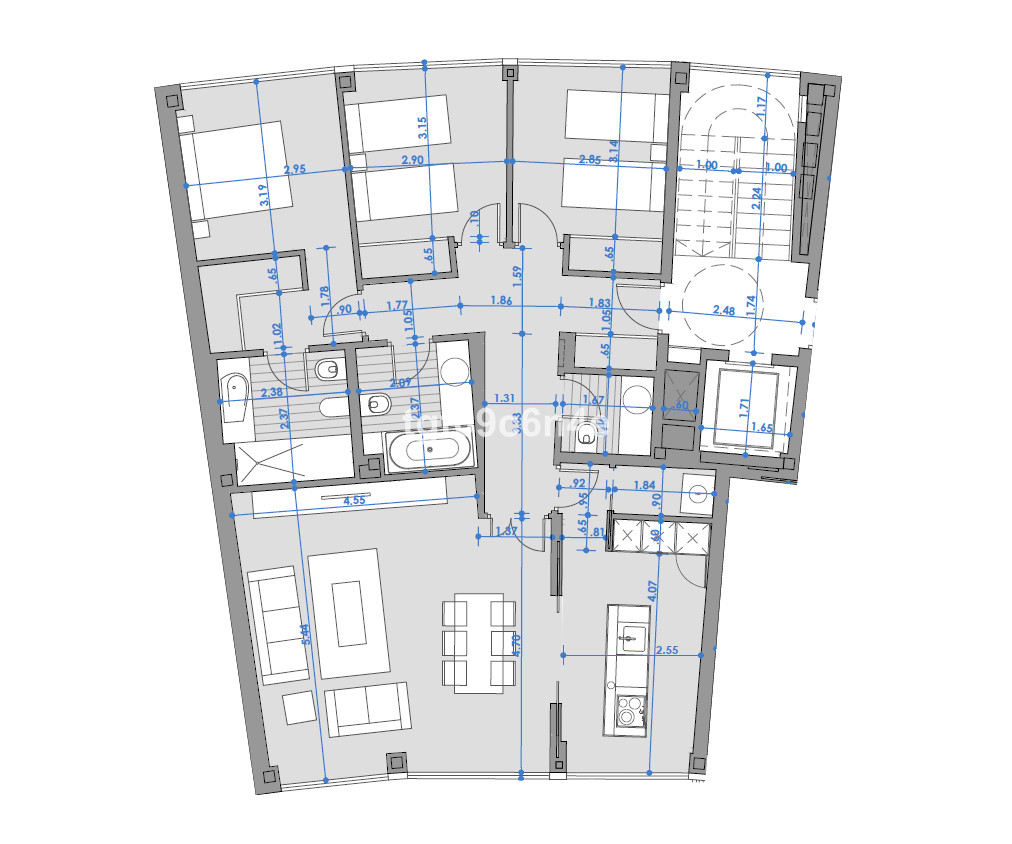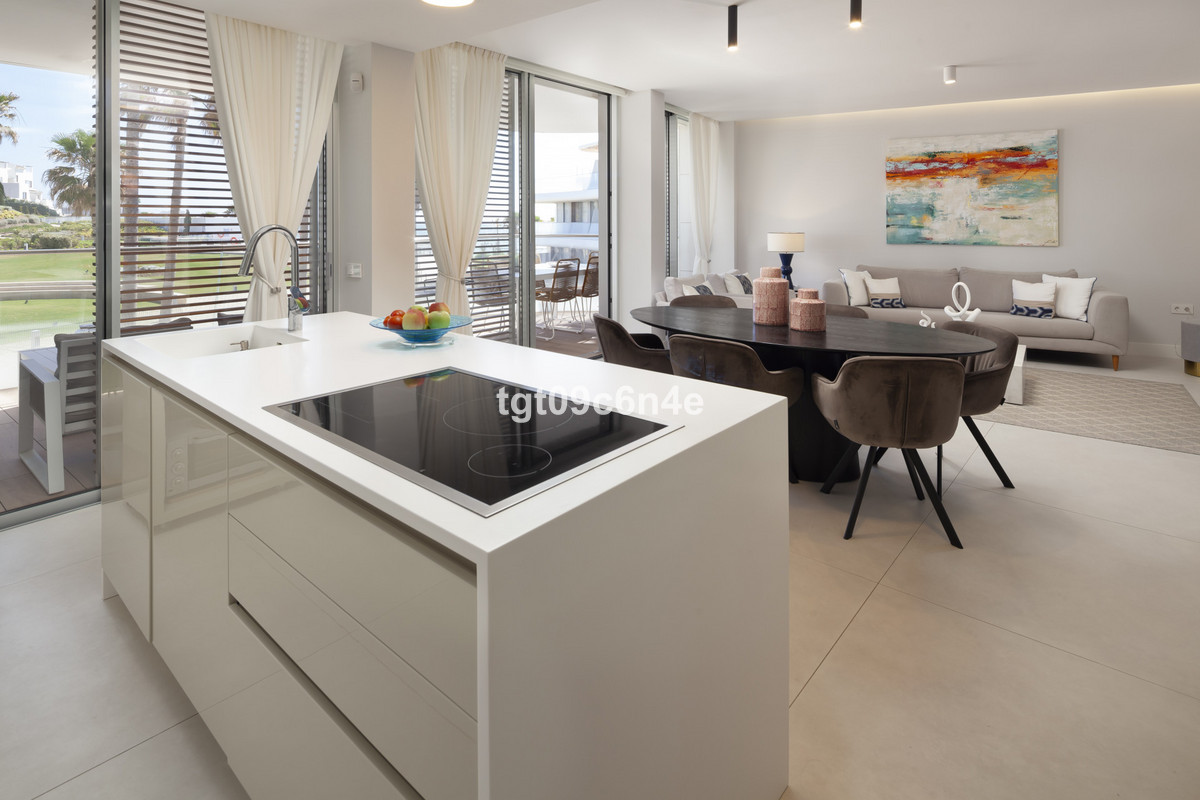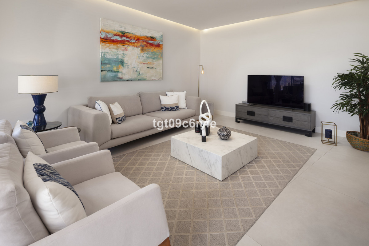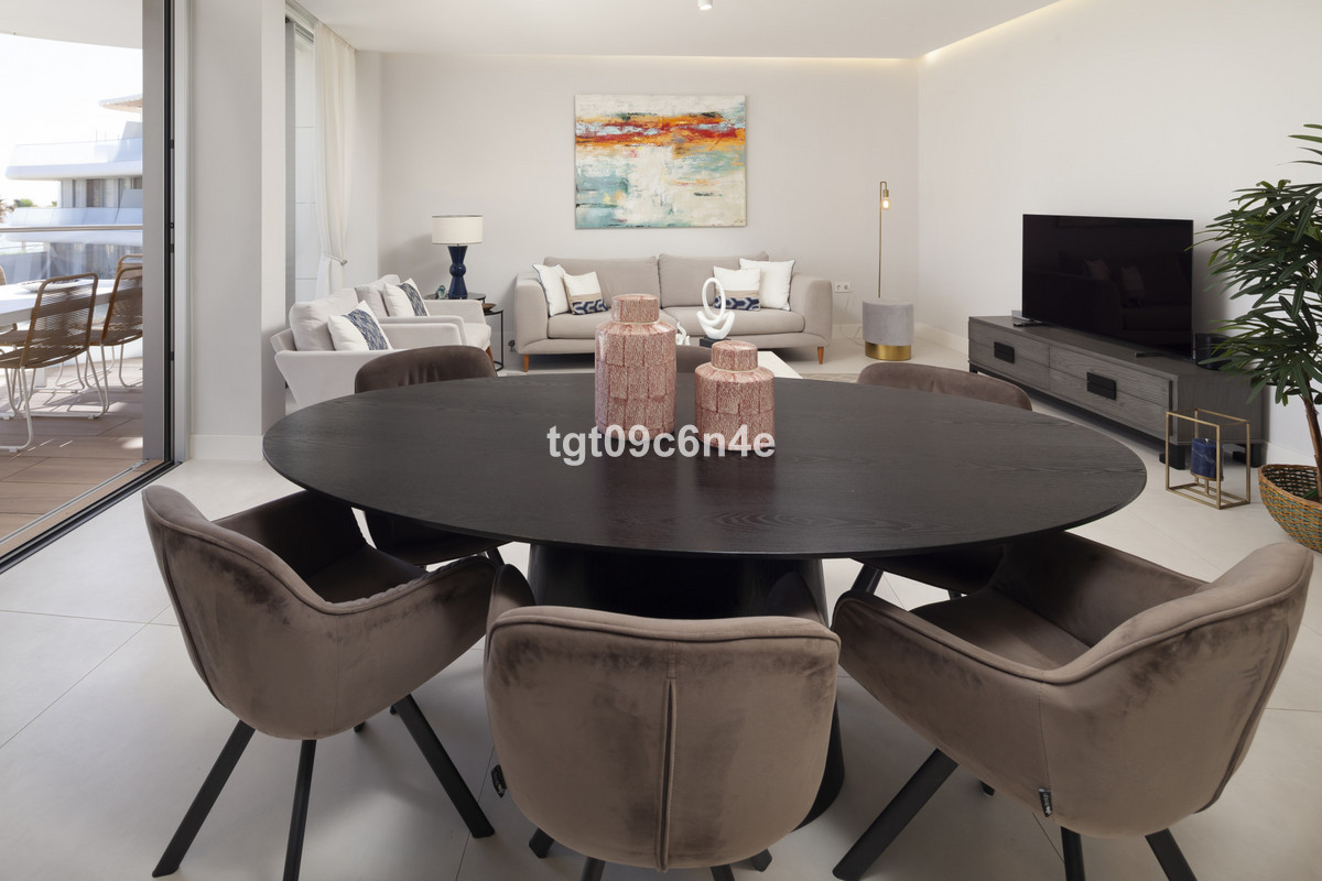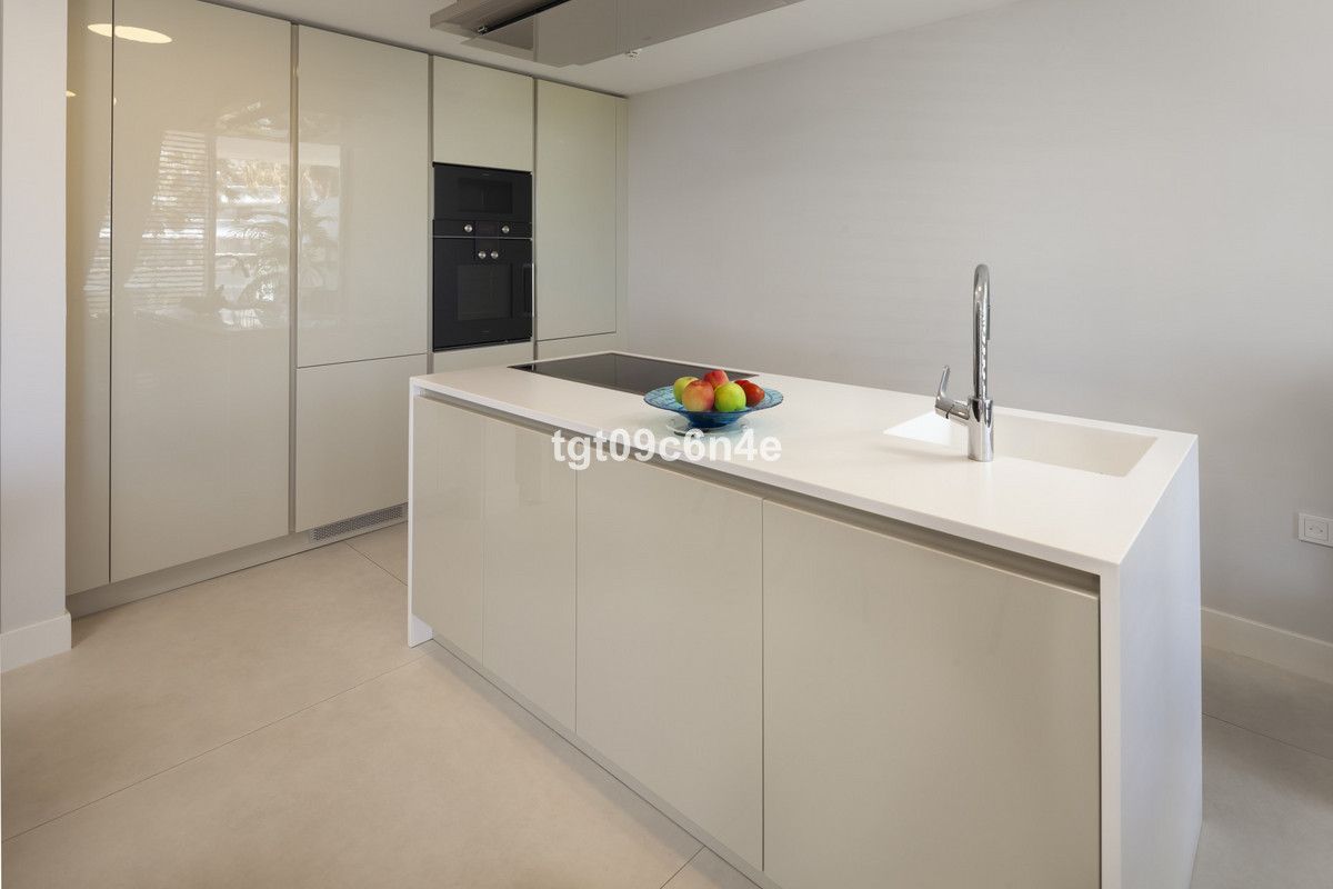 The apartment is divided into: a spacious open-plan living area and kitchen, fully furnished and equipped with high-end Gaggenau brand appliances; from here we access the main terrace with views of the sea, the ideal place to enjoy meals outdoors or simply the wonderful climate of Estepona; 1 master bedroom en-suite; 2 double bedrooms, with a shared bathroom. The 3 bedrooms have access to a second terrace, with sea views.