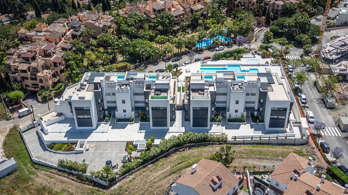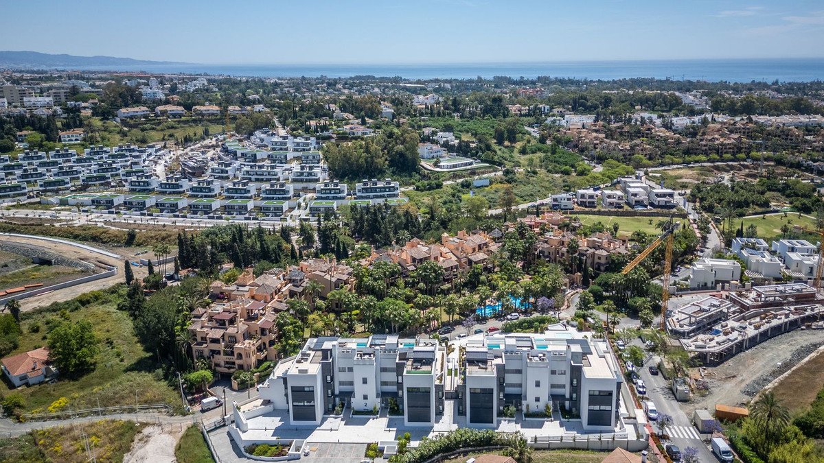 The apartment boasts to a wide hall entrance that leads you to an open-plan living area, with open plan kitchen with luxury appliances.This unique aparment, has 5 bedrooms , four of them with en-suite bathrooms. Next to the living room has a play room for kids that you can convert in an office or extra room. Two of the rooms has direct acces to the big terrace where you can enjoy the private planch pool and the open views. Amenities include communal pools, a gym, and a spa with Turkish baths.