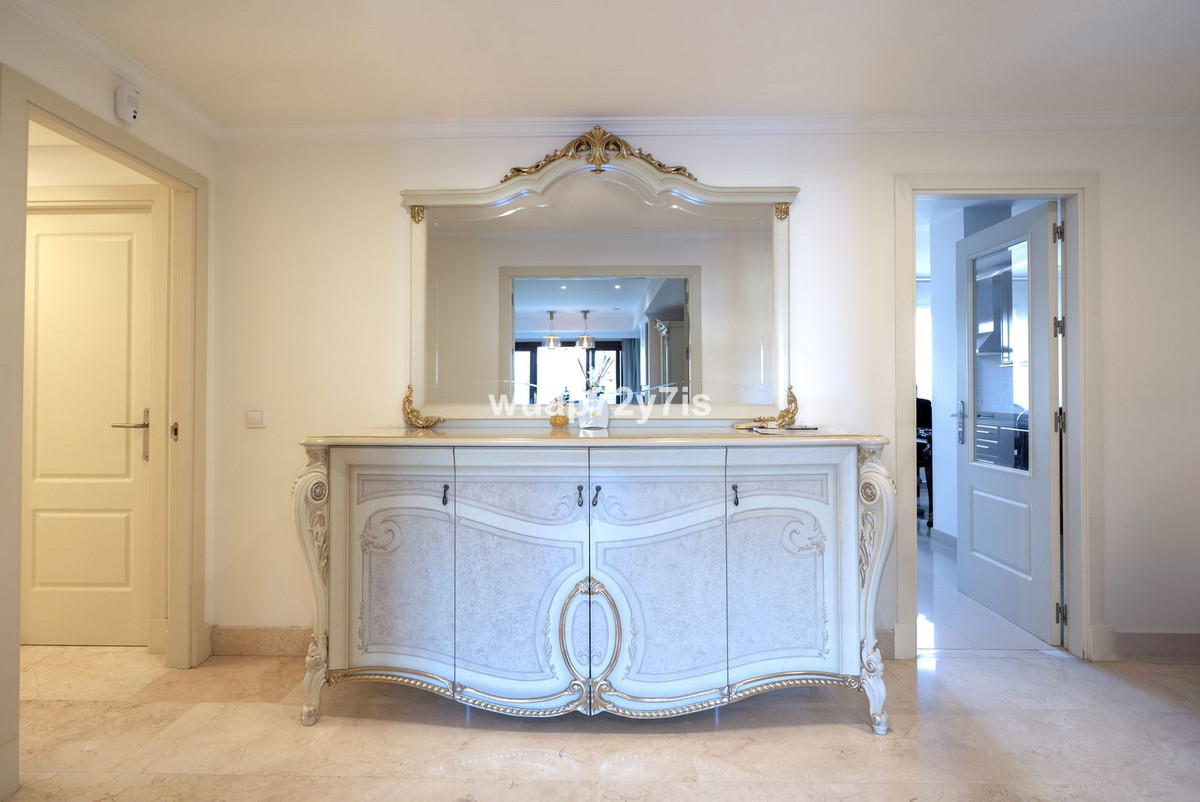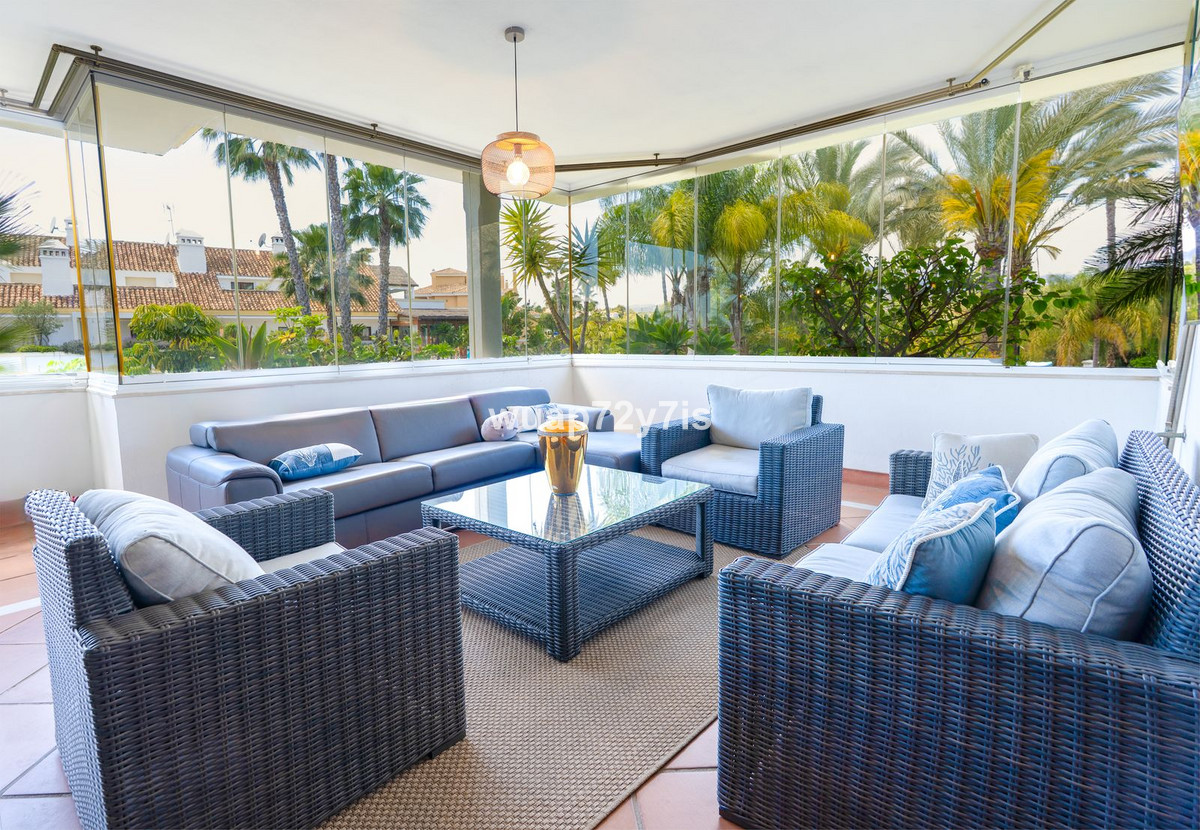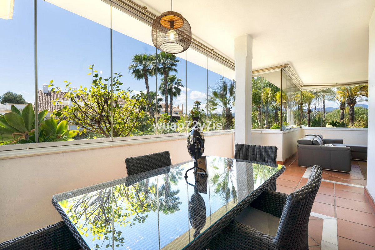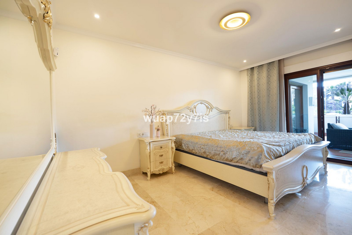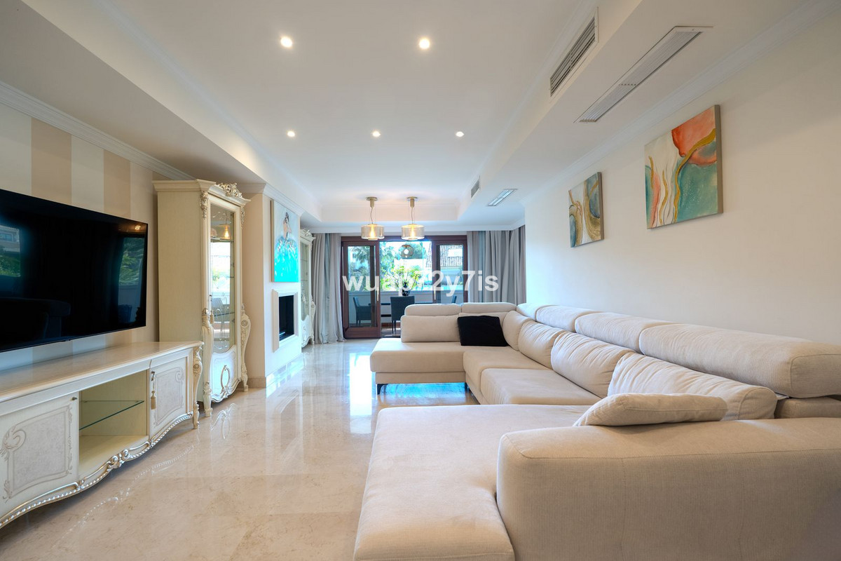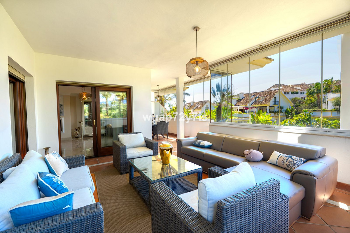 This elegant and spacious first-floor apartment is situated within a prestigious gated community on Marbella’s coveted Golden Mile in urbanization Lomas del Rey. Renowned for its impeccably maintained botanical gardens, the development boasts multiple outdoor swimming pools—one of which is heated year-round—alongside two children’s pools and a small playground. Ideally located just a 10-minute stroll from the beach and near the iconic Puente Romano resort, the property has been built to the highest standards. It welcomes you with a refined entrance hall, a guest WC, and a generous open-plan living and dining area that flows seamlessly onto a large, sun-drenched corner terrace. The fully fitted kitchen is equipped with premium appliances and includes a charming breakfast area. The apartment offers three spacious en-suite bedrooms, including a master suite with direct access to the terrace. Additional highlights include underfloor heating, a west-facing orientation with breathtaking views of La Concha mountain, two underground parking spaces, and a private storage room. This is a rare opportunity to enjoy luxurious coastal living within walking distance of the beach and the finest amenities the Golden Mile has to offer.