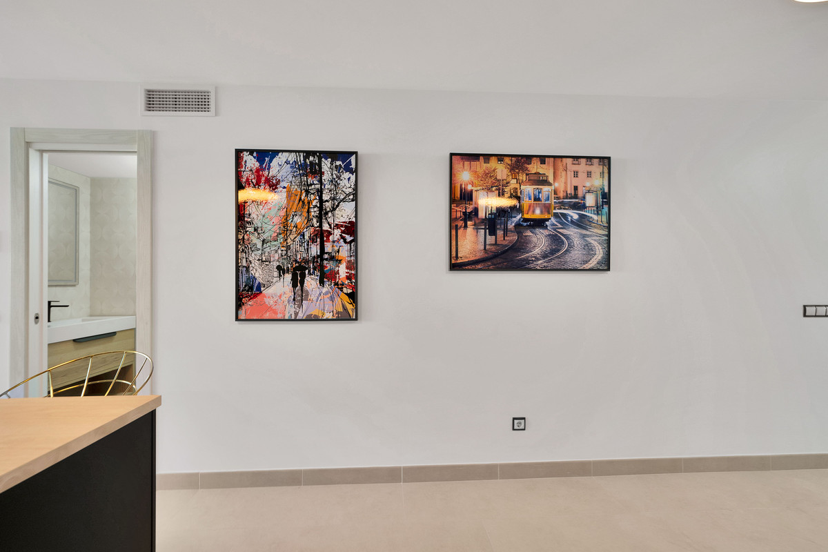 Living Room: From the living room, you can enjoy impressive views of the Mediterranean Sea, the Alameda Park, and the city of Marbella, providing a perfect setting for relaxation and appreciating the beauty of the surroundings.