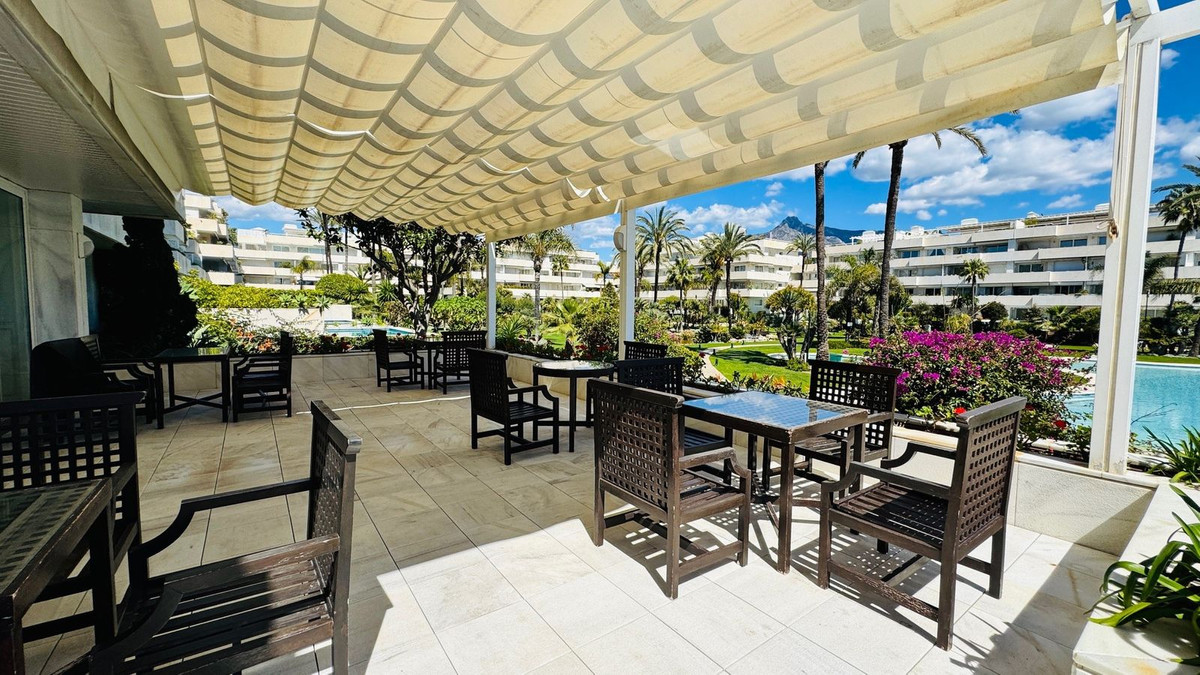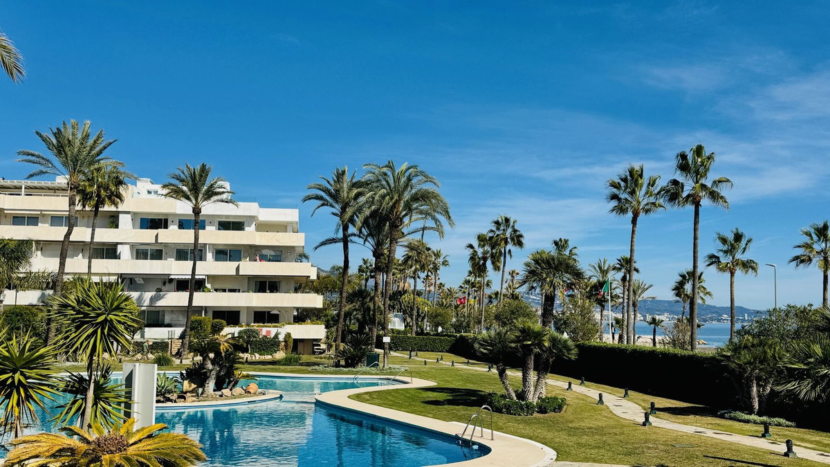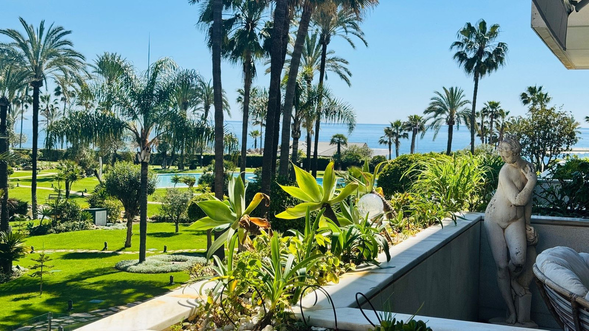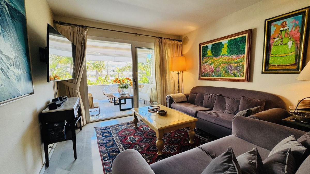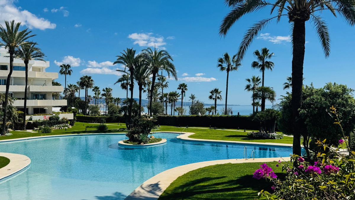 Frontline beach 3 bedroom apartment for sale in Granados Banus near Marbella, Spain. Rare opportunity! Stunning apartment located in one of the most sought after luxury community in Puerto Banus, near Marbella. The famous residential luxury community enjoys direct access to the promenade of Puerto Banus and the beach,and its multitude of beach restaurants. The community is gated with 24/24 security and boasts a beautiful indoor pool and spa with a fully equipped state of the art gym, a social club with a bar for the residents, as well as a popular restaurant opened from April to October. The residents and their children have access to a games room fitted with ping pong tables, billiard table and kids games for the little ones. A Sauna, Hamman and a jacuzzi are available in the spa area to the residents only. All is presented in a beautiful smart comfortable style and relaxed atmosphere found only in 5 stars luxury Hotels! The apartment has a large living area leading to the covered terrace looking out to the sea and to the beautiful gardens and extra large lake like pool. The property needs renovating and is a perfect investment for someone who is looking for prime location. These apartments are rare to come by. Sold unfurnished with a parking space and a storage space included in the price. Located frontline beach Puerto Banus, only minutes to Marbella Center by car or on foot, and walking distance to all amenities of the famous Port of Puerto Banus and its night life as well as El Corte Ingles the number one luxury Spanish department store. No need for a car for those who want to relax in peace and security. Location, location, location! Here you have it!