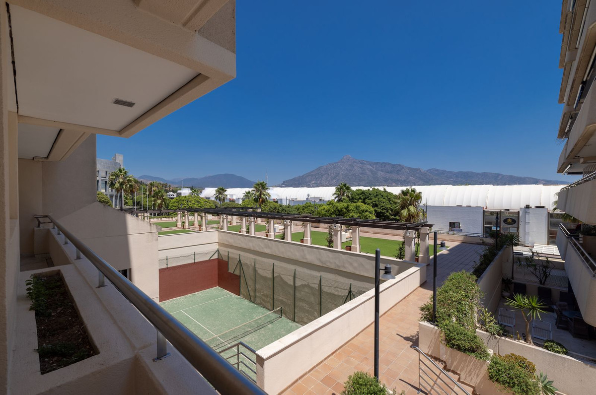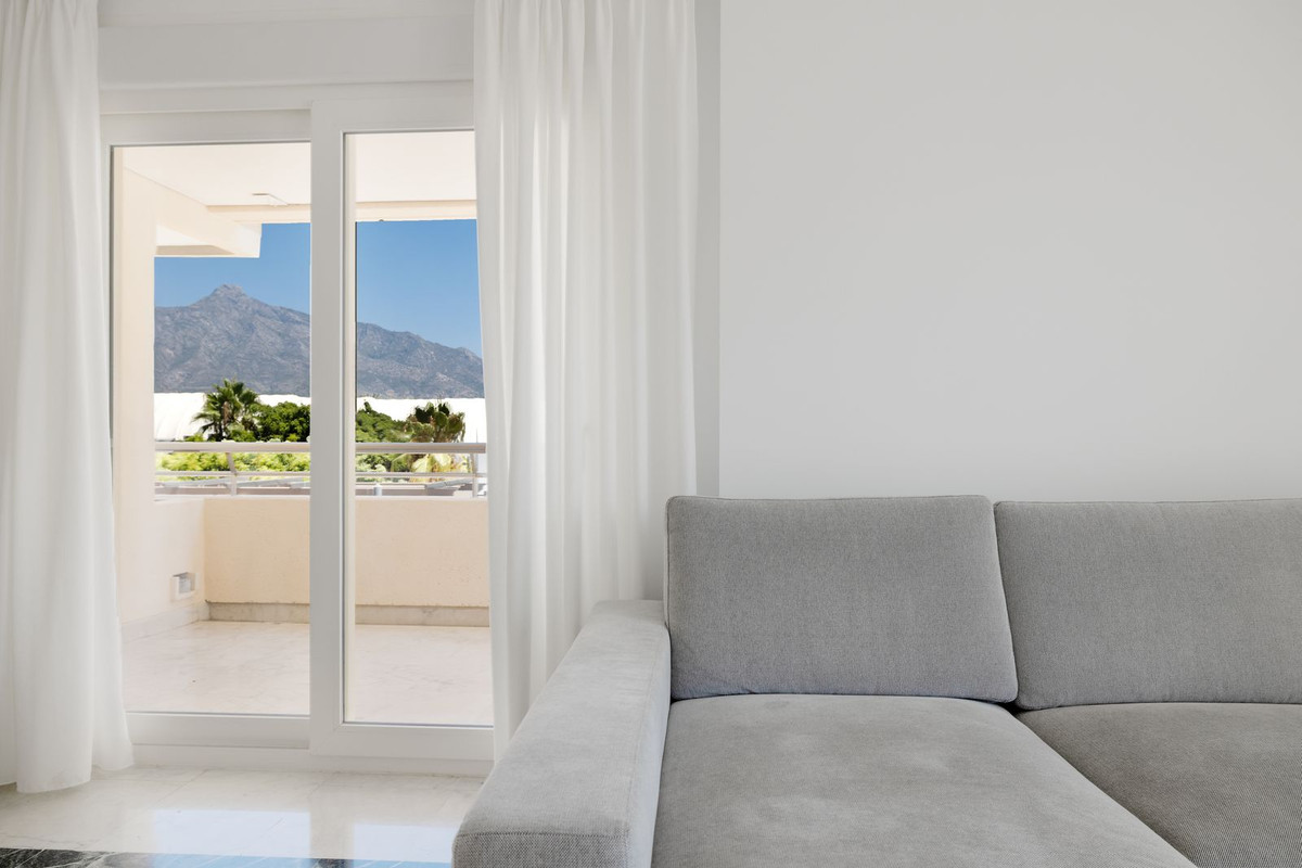 In the heart of Puerto Banús, within an exclusive residential complex, lies this elegant 161 m² apartment, fully renovated with high-end finishes. It offers 3 spacious bedrooms, 2 modern bathrooms, and a spectacular 40 m² terrace with breathtaking views of the Mediterranean Sea and La Concha mountain. Its southeast orientation guarantees exceptional natural light throughout the day. The property also includes a parking space, while its interior location within the building ensures privacy and tranquility.
